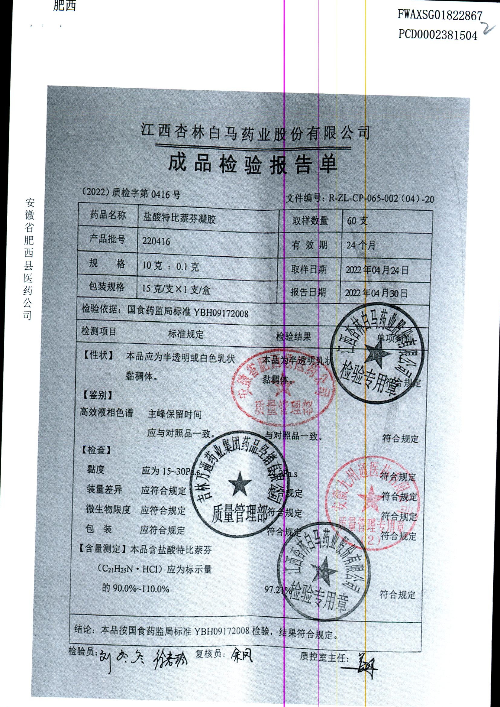| 盐酸特比萘芬凝胶 | 15g( 10克:0.1克 ) | 220416 | 查看详情 |