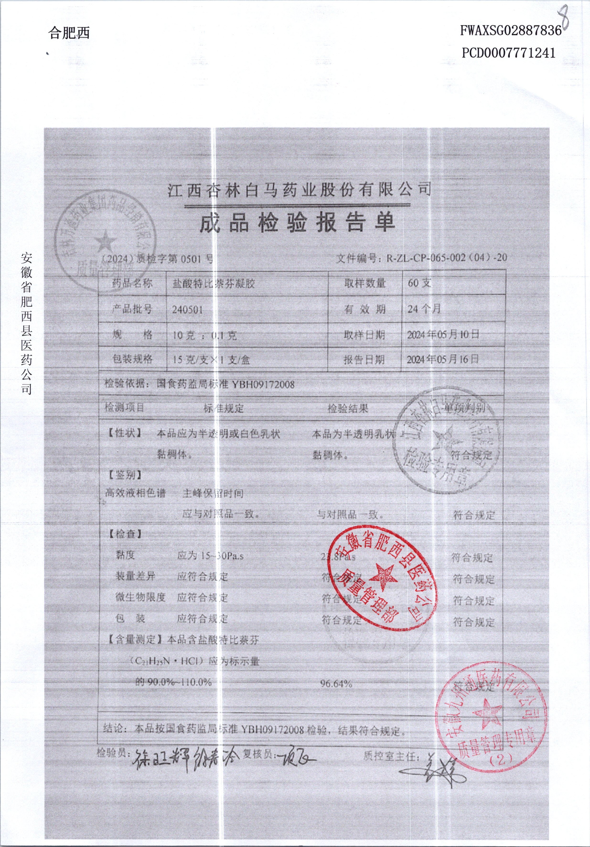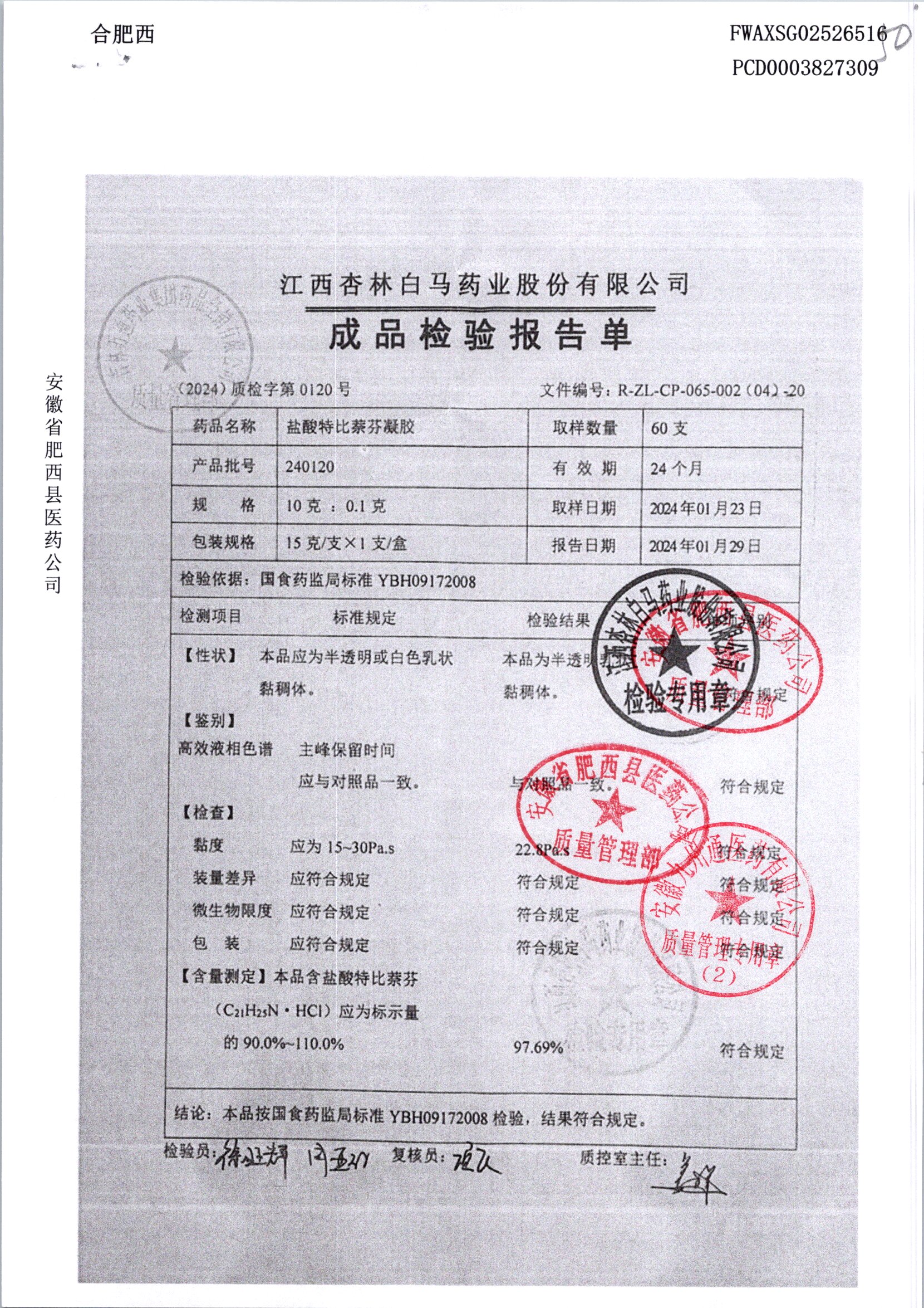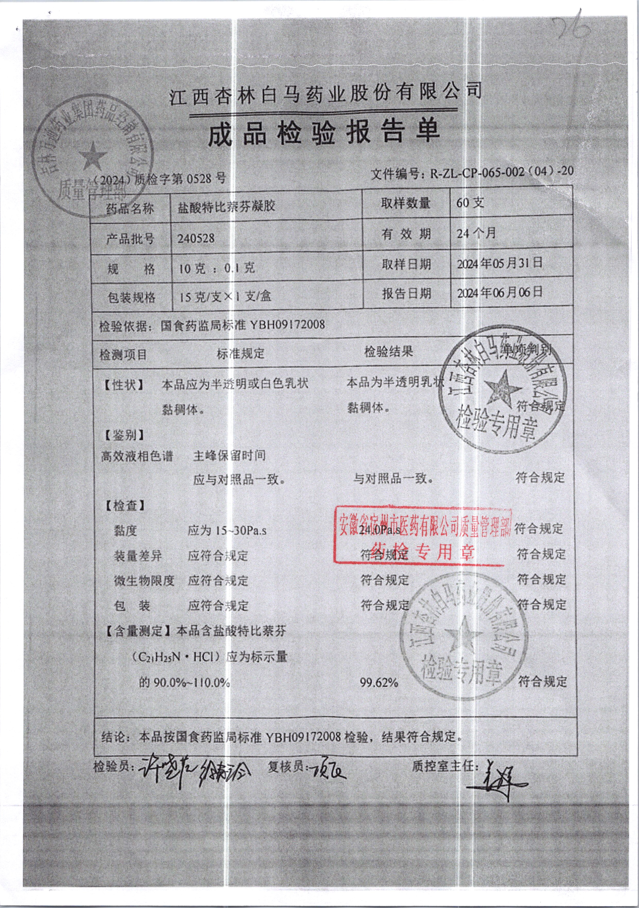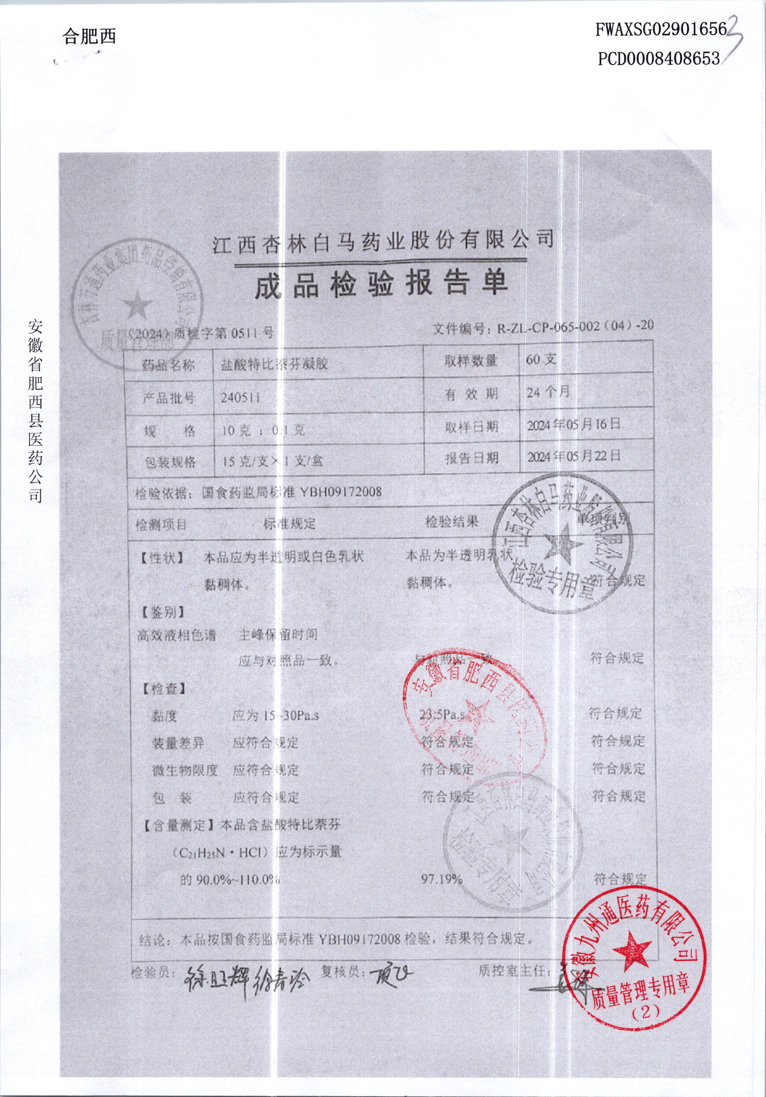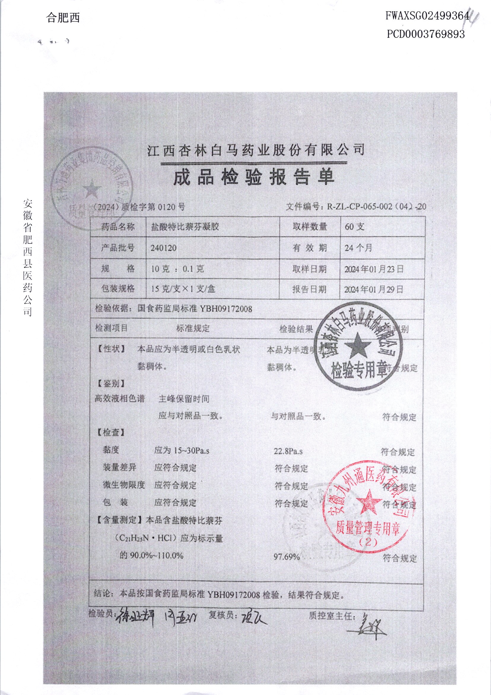 | 盐酸特比萘芬凝胶 | 15g( 10克:0.1克 ) | 240304 | 查看详情 |