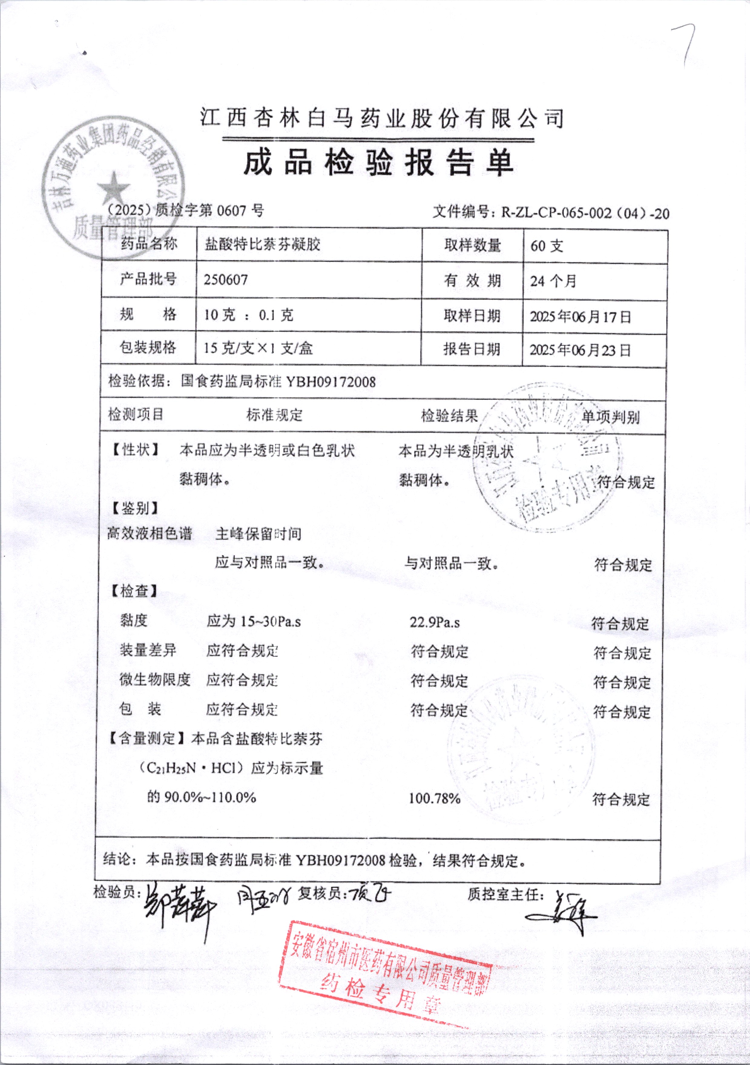 | 盐酸特比萘芬凝胶 | 15g( 10克:0.1克 ) | 210705 | 查看详情 |