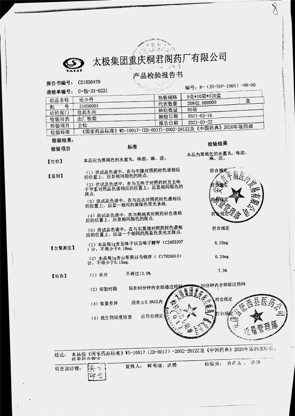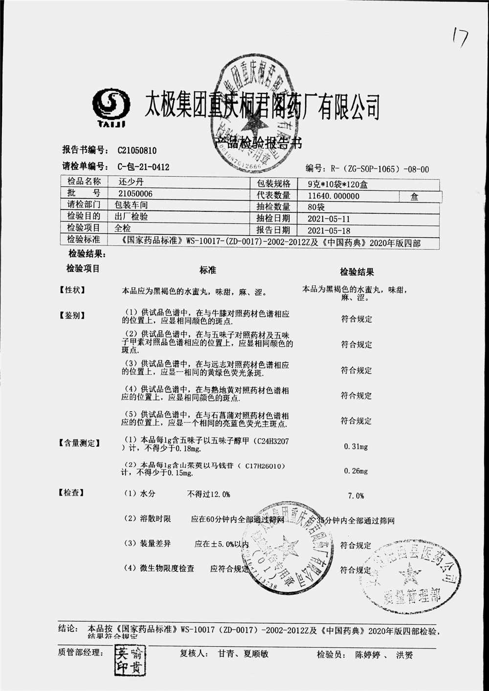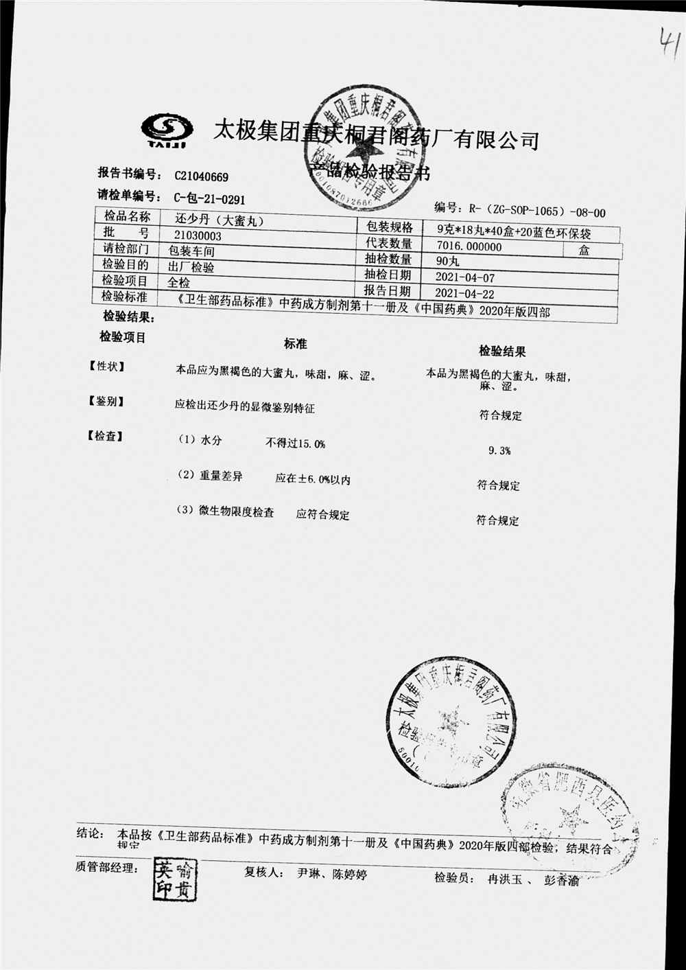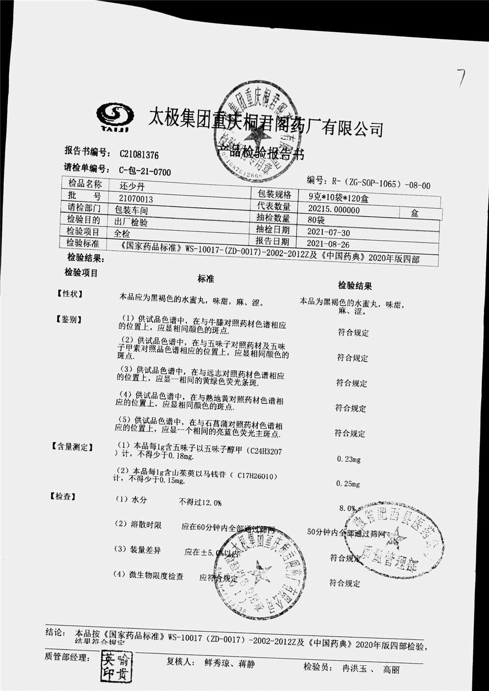 | 还少丹 | 9克/袋*10袋(每20丸重1g) | 21030001 | 查看详情 |