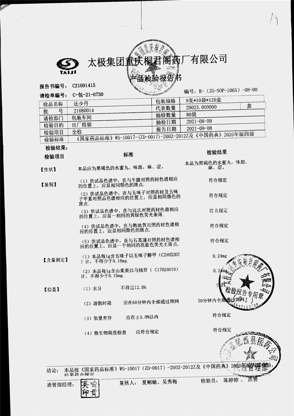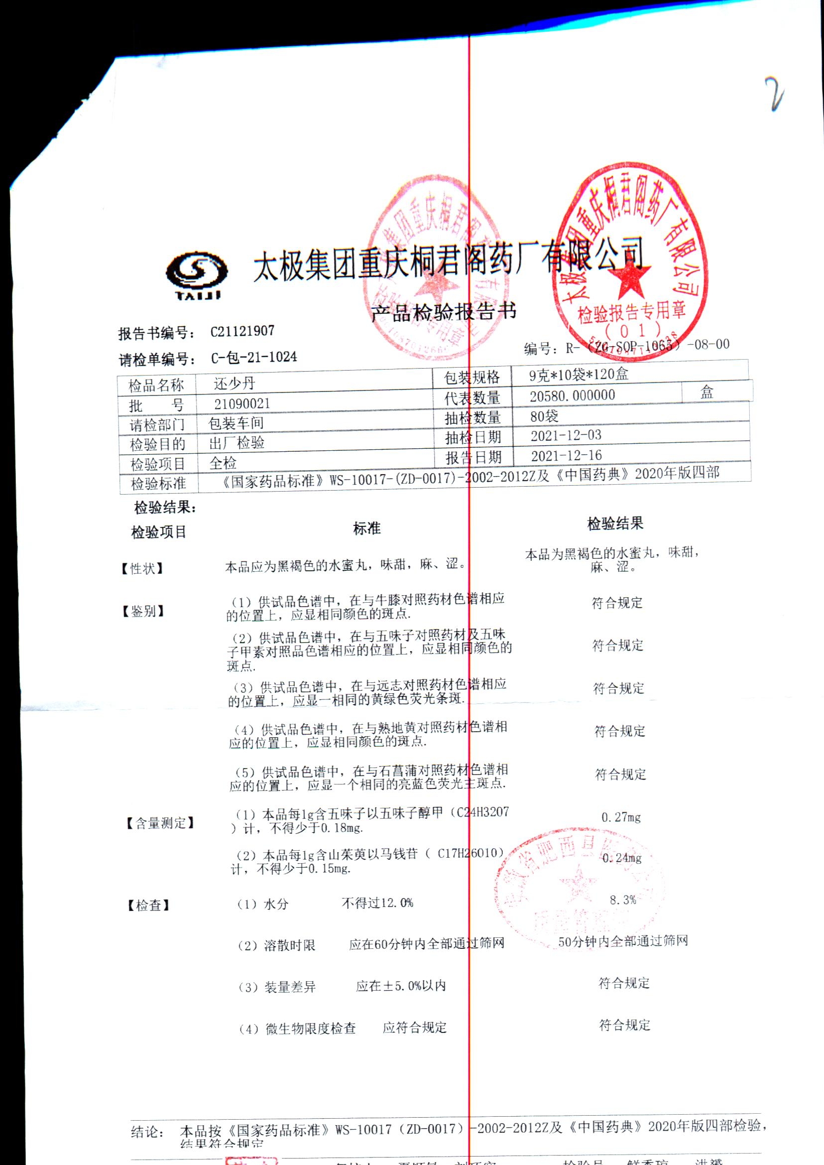 | 还少丹 | 9克/袋*10袋(每20丸重1g) | 21080014 | 查看详情 |