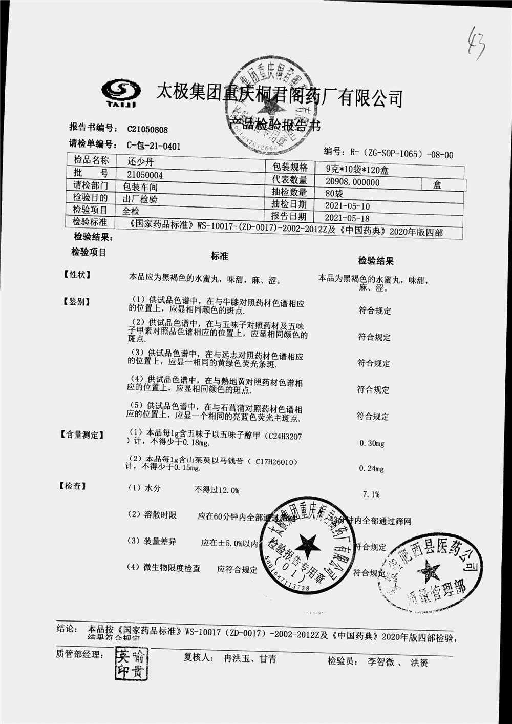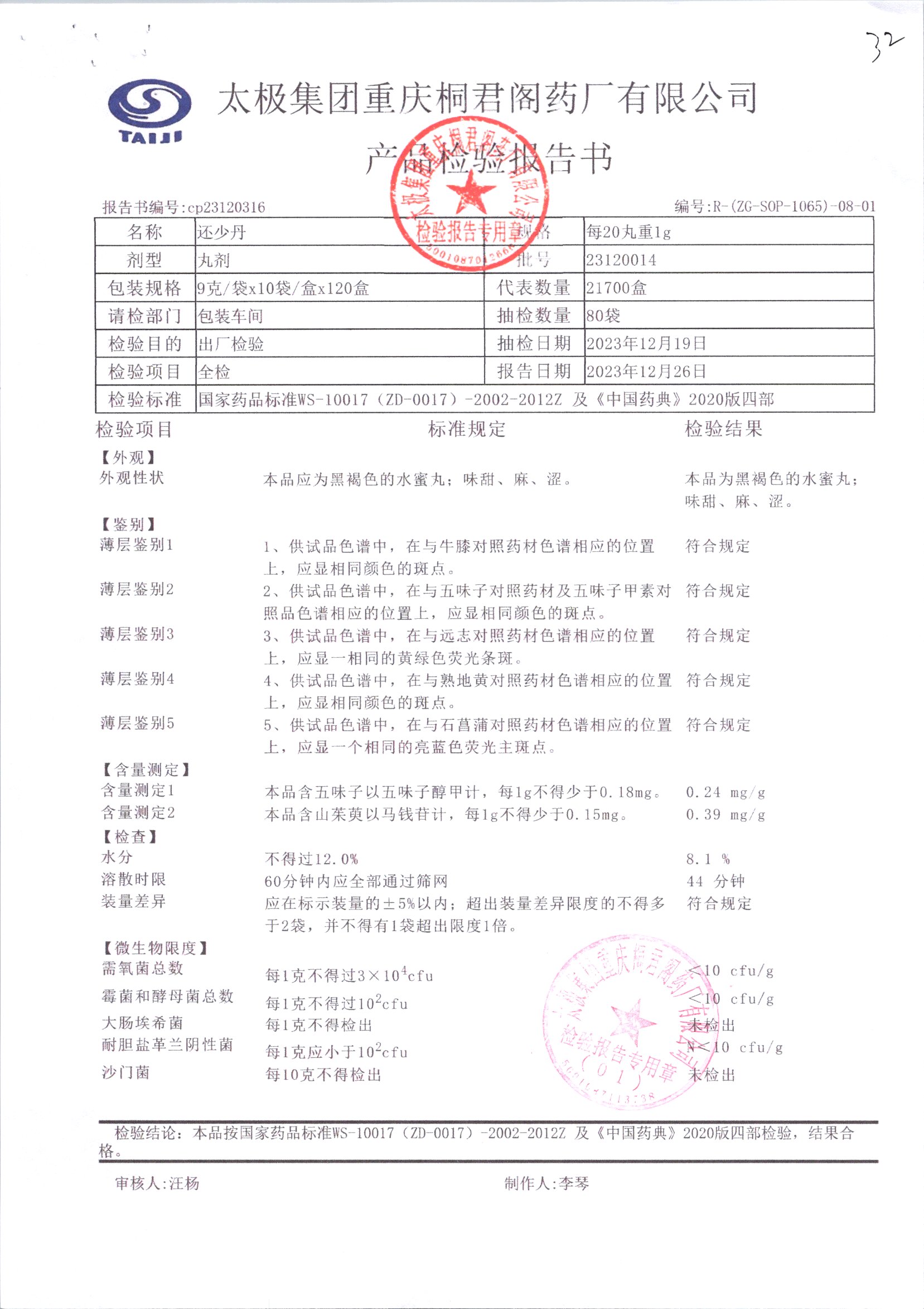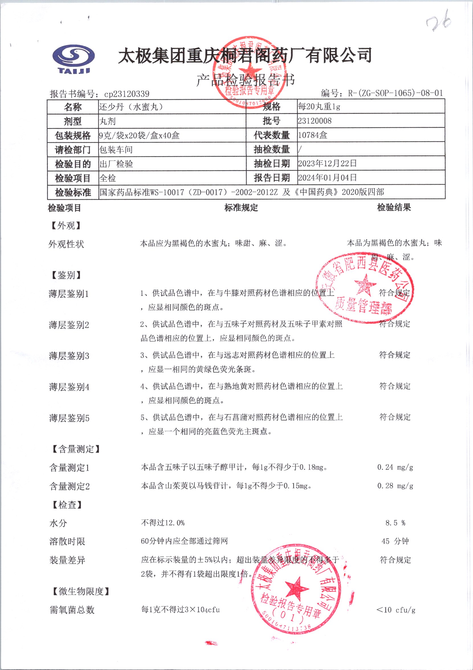 | 还少丹 | 9克/袋*10袋(每20丸重1g) | 23120008/2 | 查看详情 |
