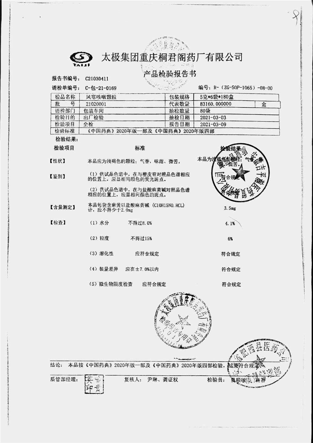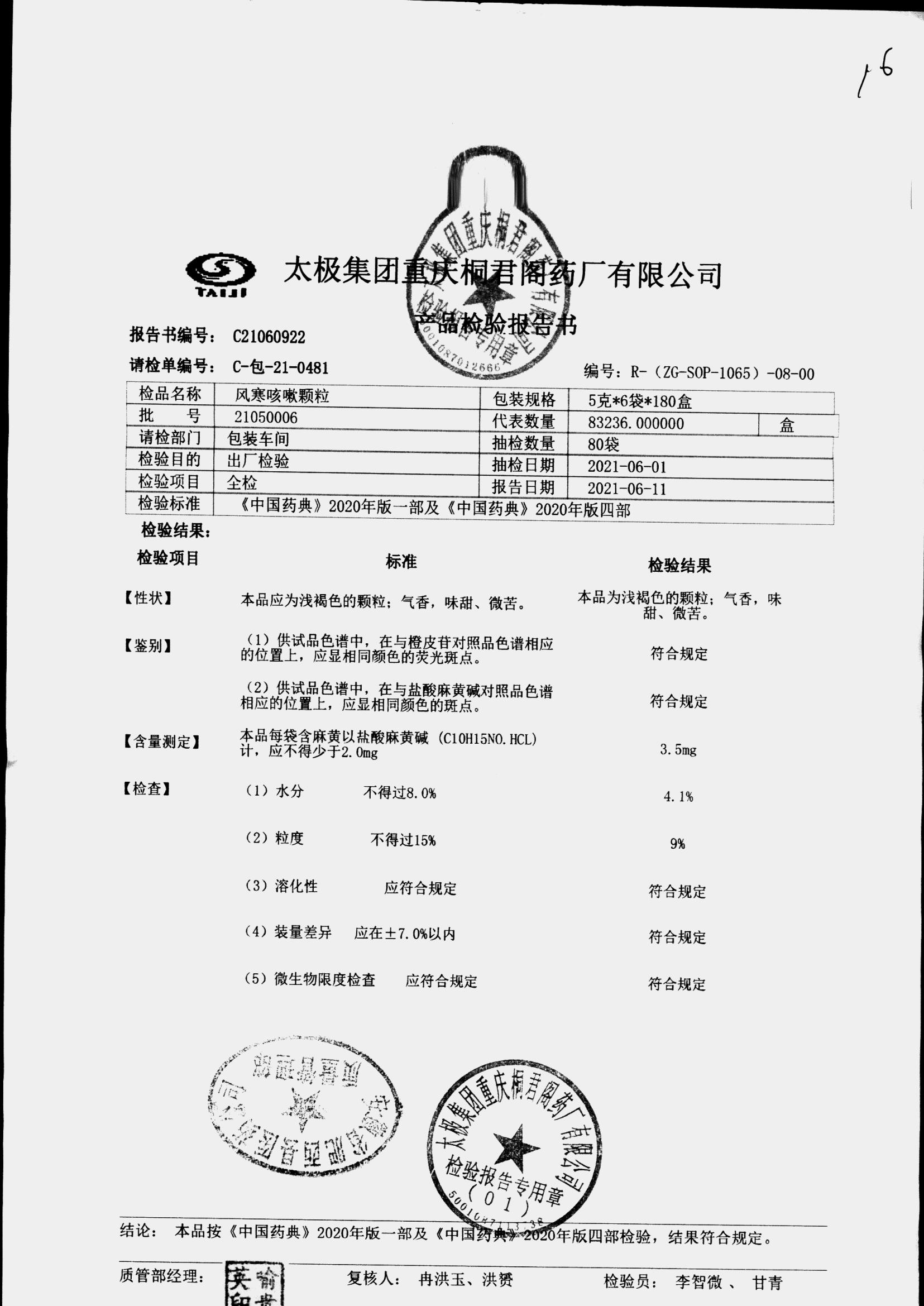 | 风寒咳嗽颗粒 | 5g/袋*6袋 | 21020001 | 查看详情 |