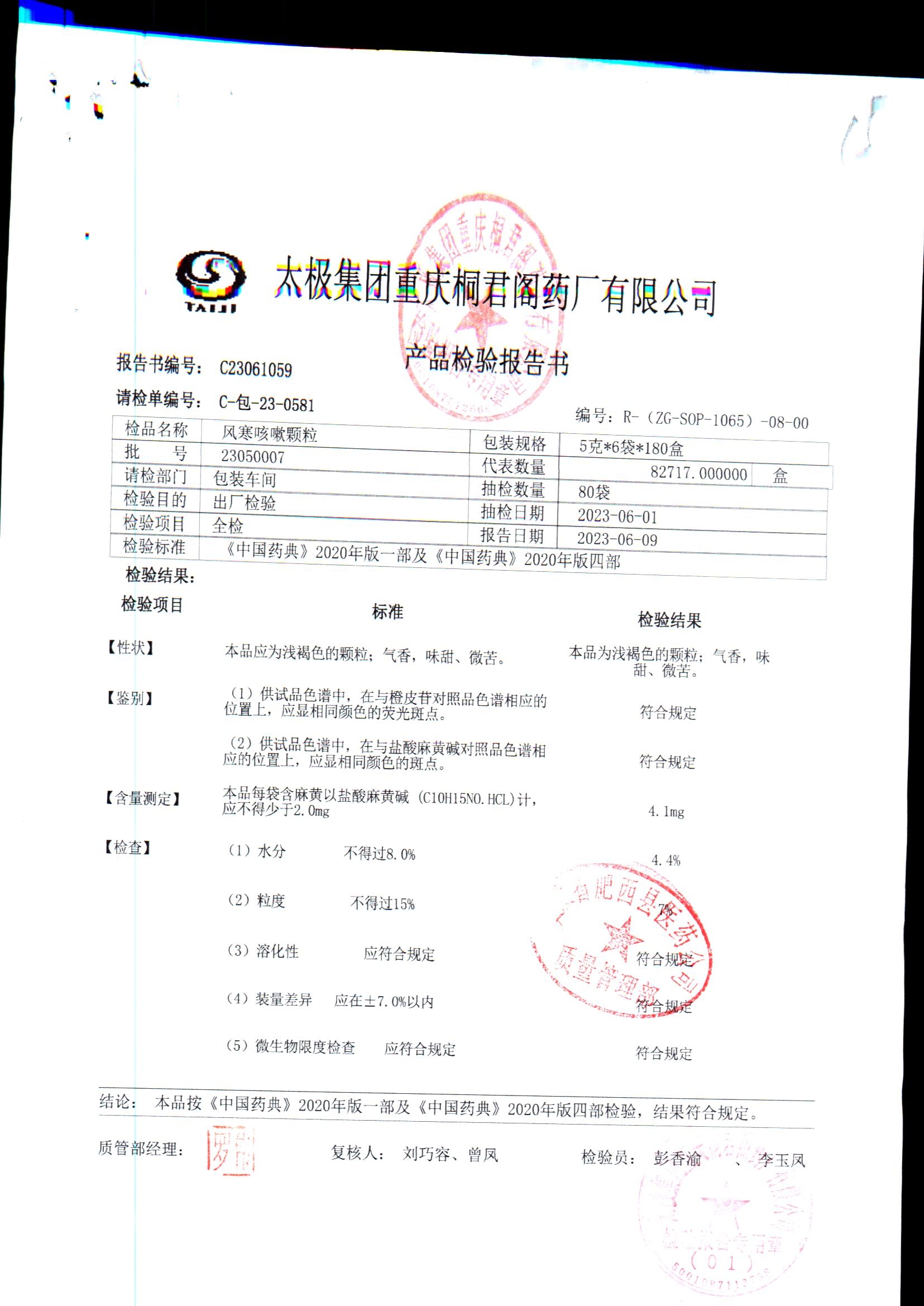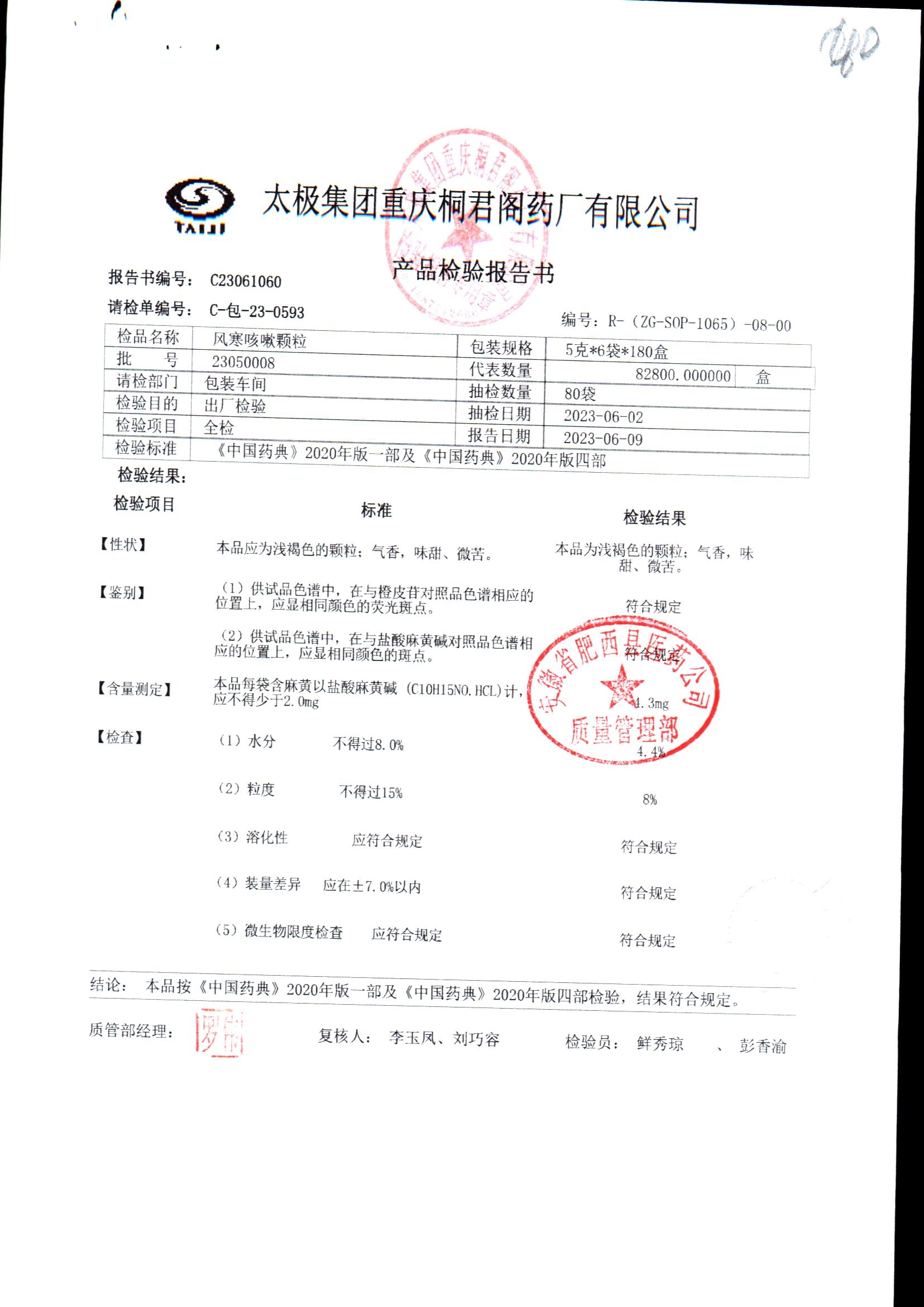 | 风寒咳嗽颗粒 | 5g/袋*6袋 | 23050007 | 查看详情 |
