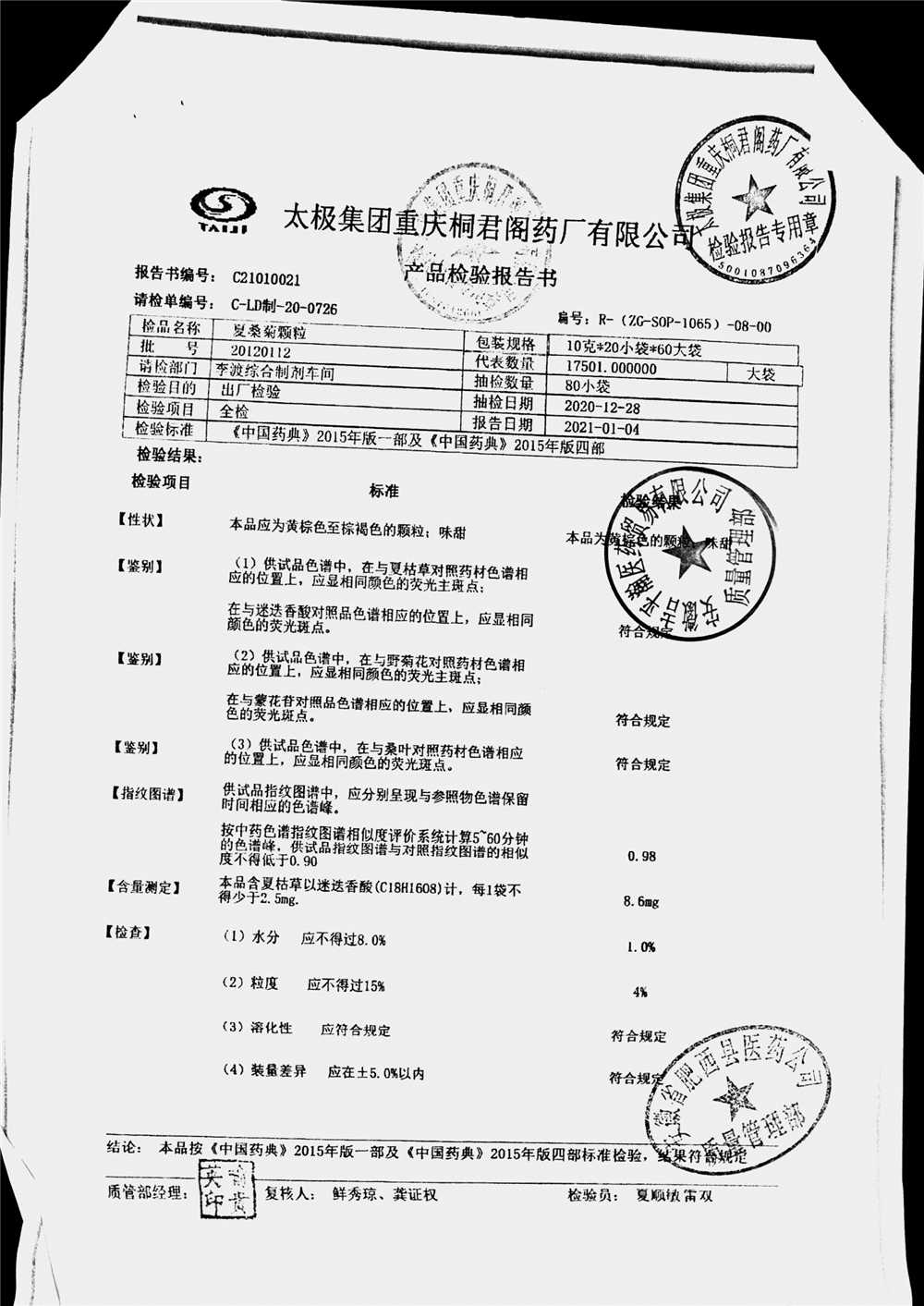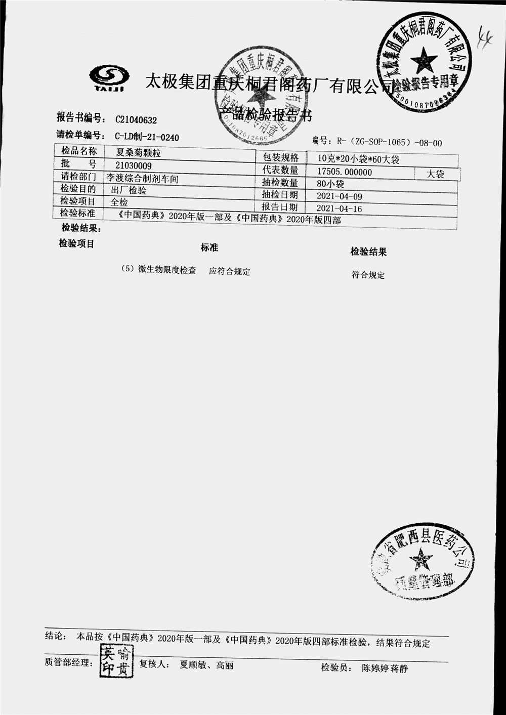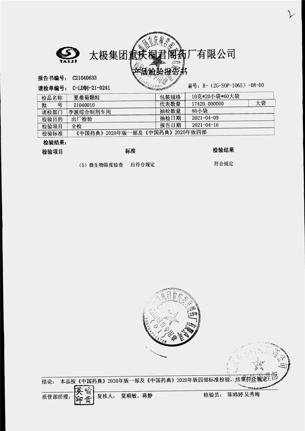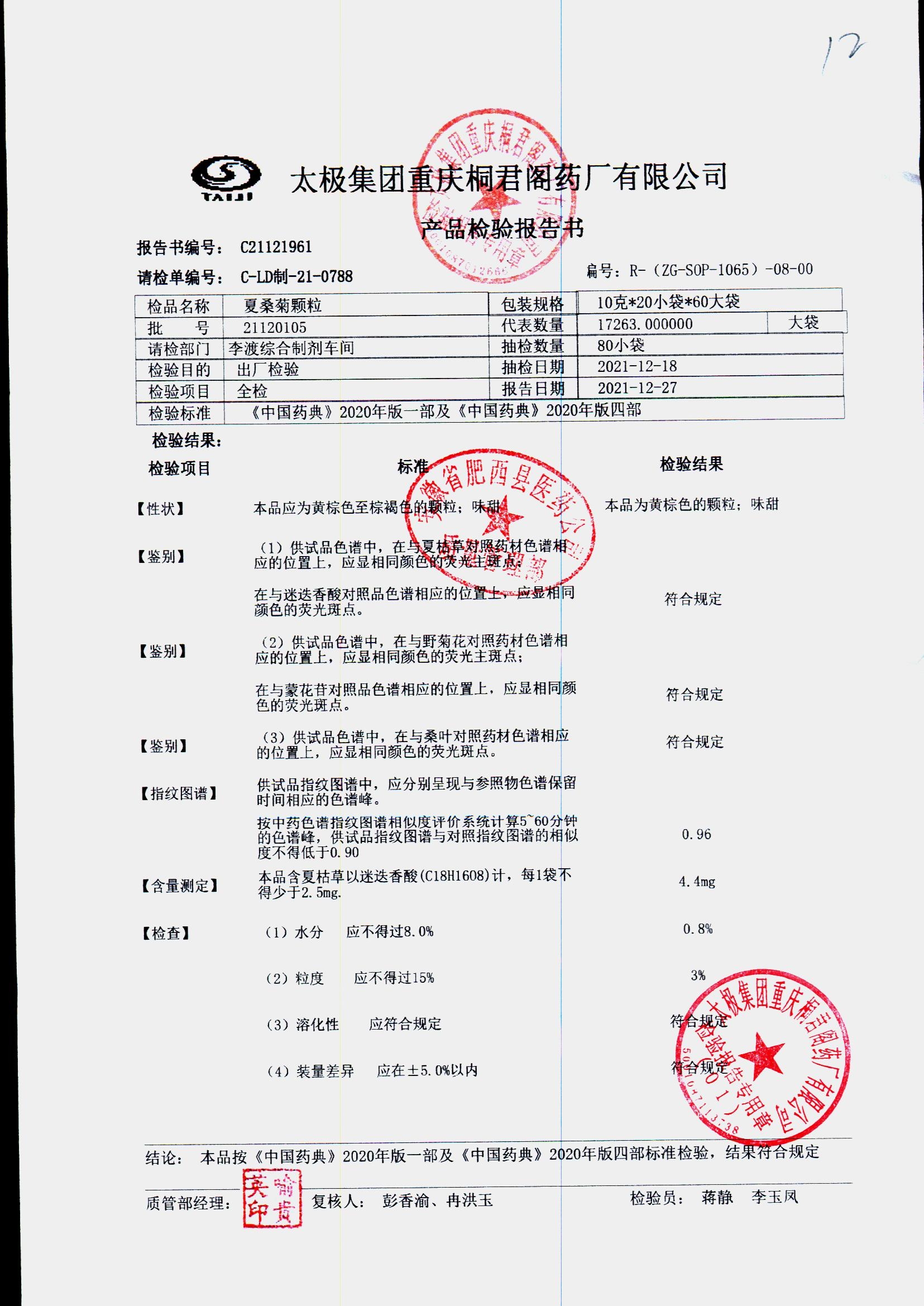 | 夏桑菊颗粒 | 10克/袋*20袋 | 21120105/1 | 查看详情 |