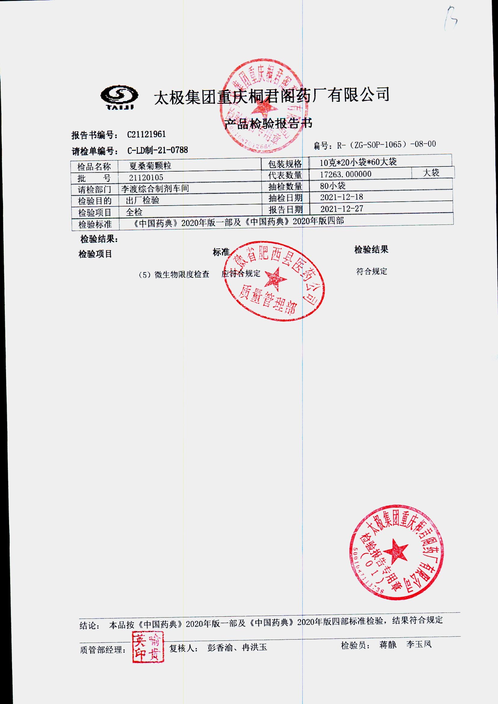 | 夏桑菊颗粒 | 10克/袋*20袋 | 21120105/2 | 查看详情 |