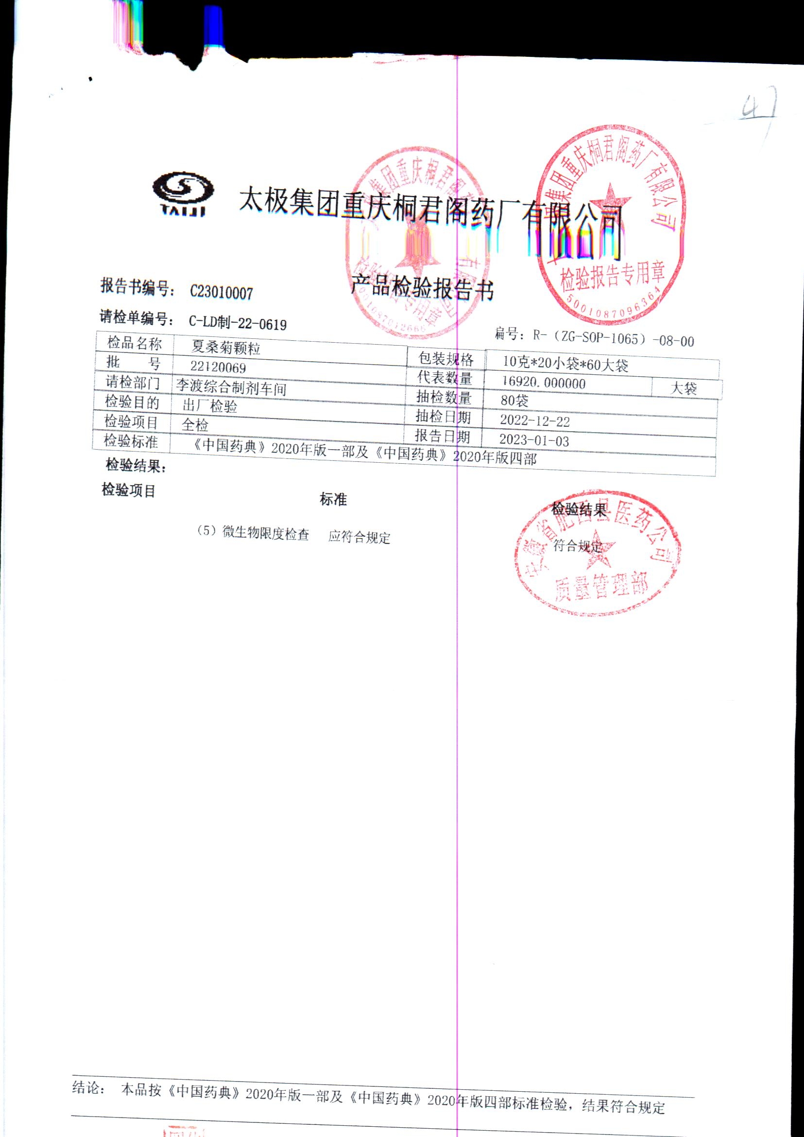 | 夏桑菊颗粒 | 10克/袋*20袋 | 22120069/2 | 查看详情 |
