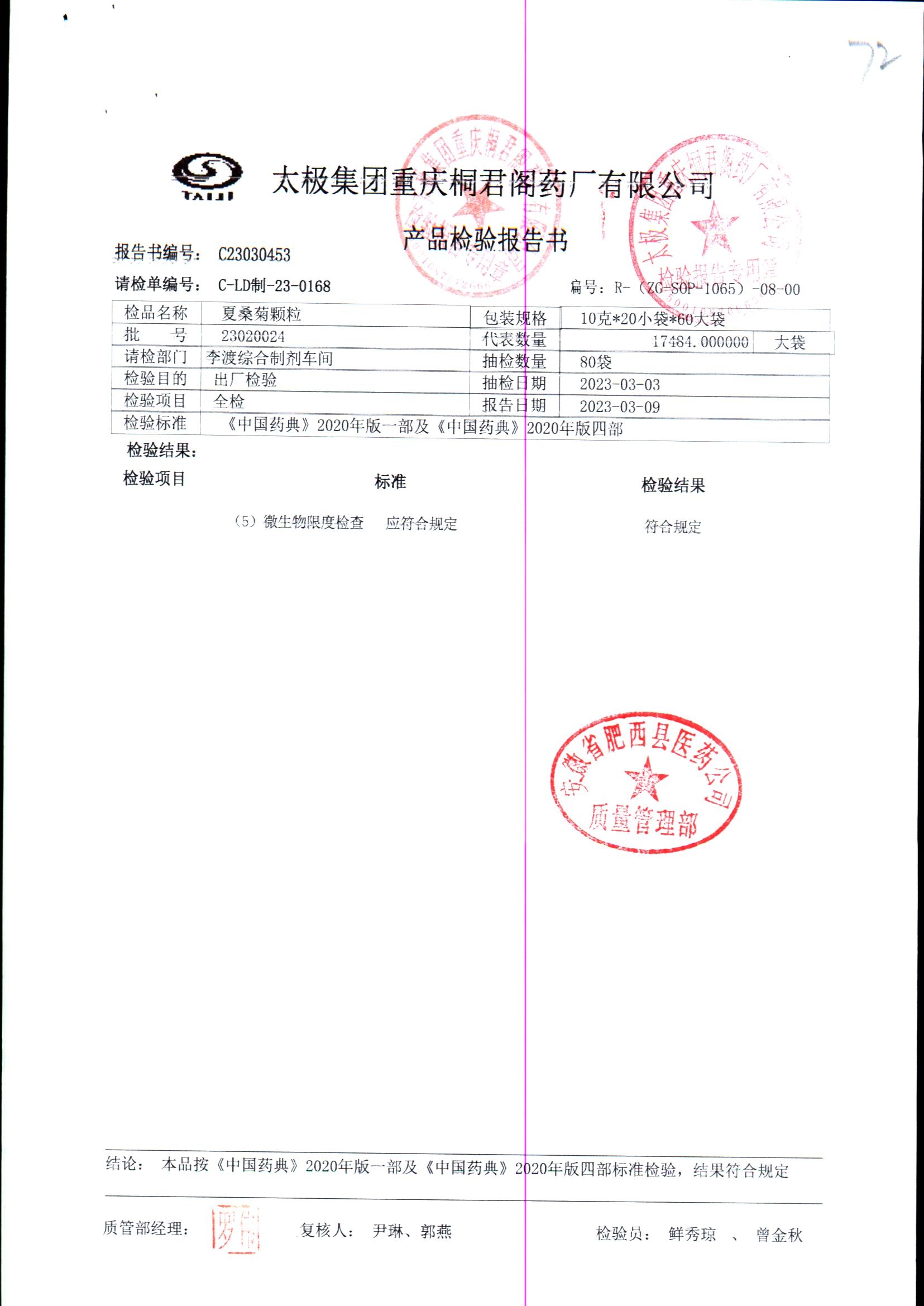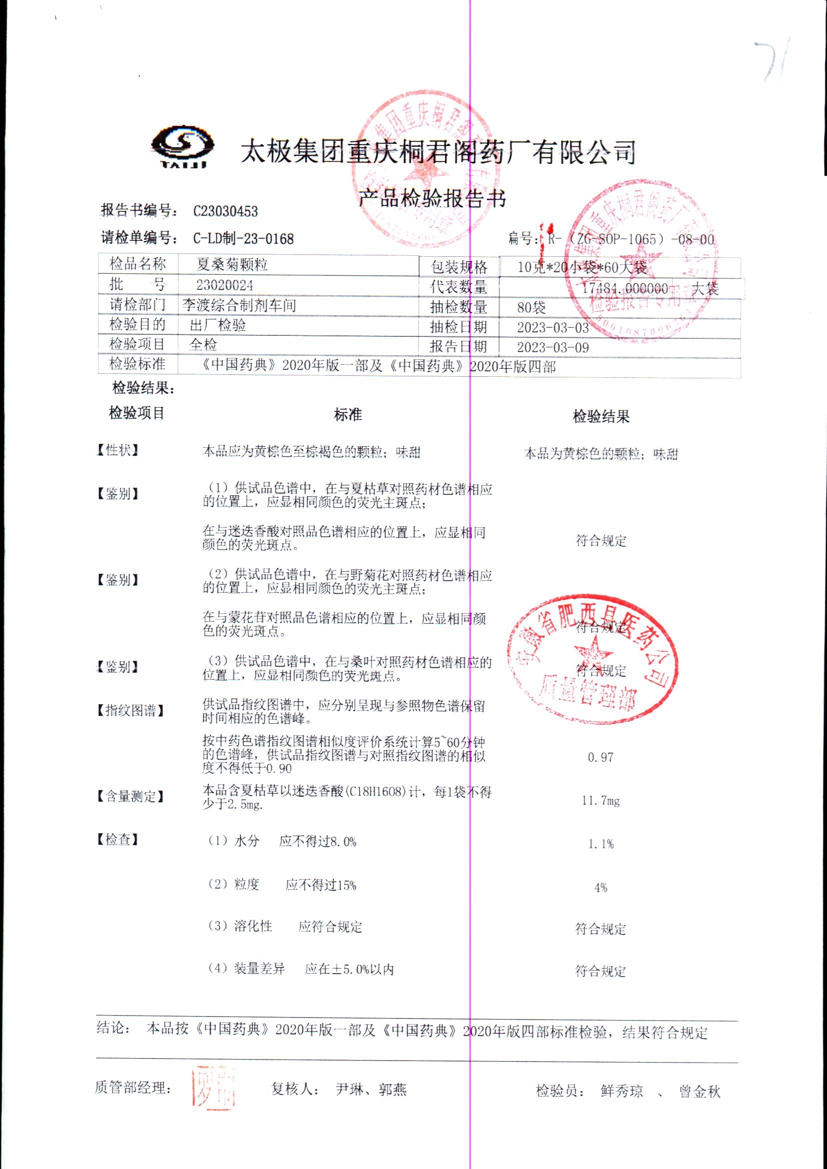 | 夏桑菊颗粒 | 10克/袋*20袋 | 23020024/1 | 查看详情 |