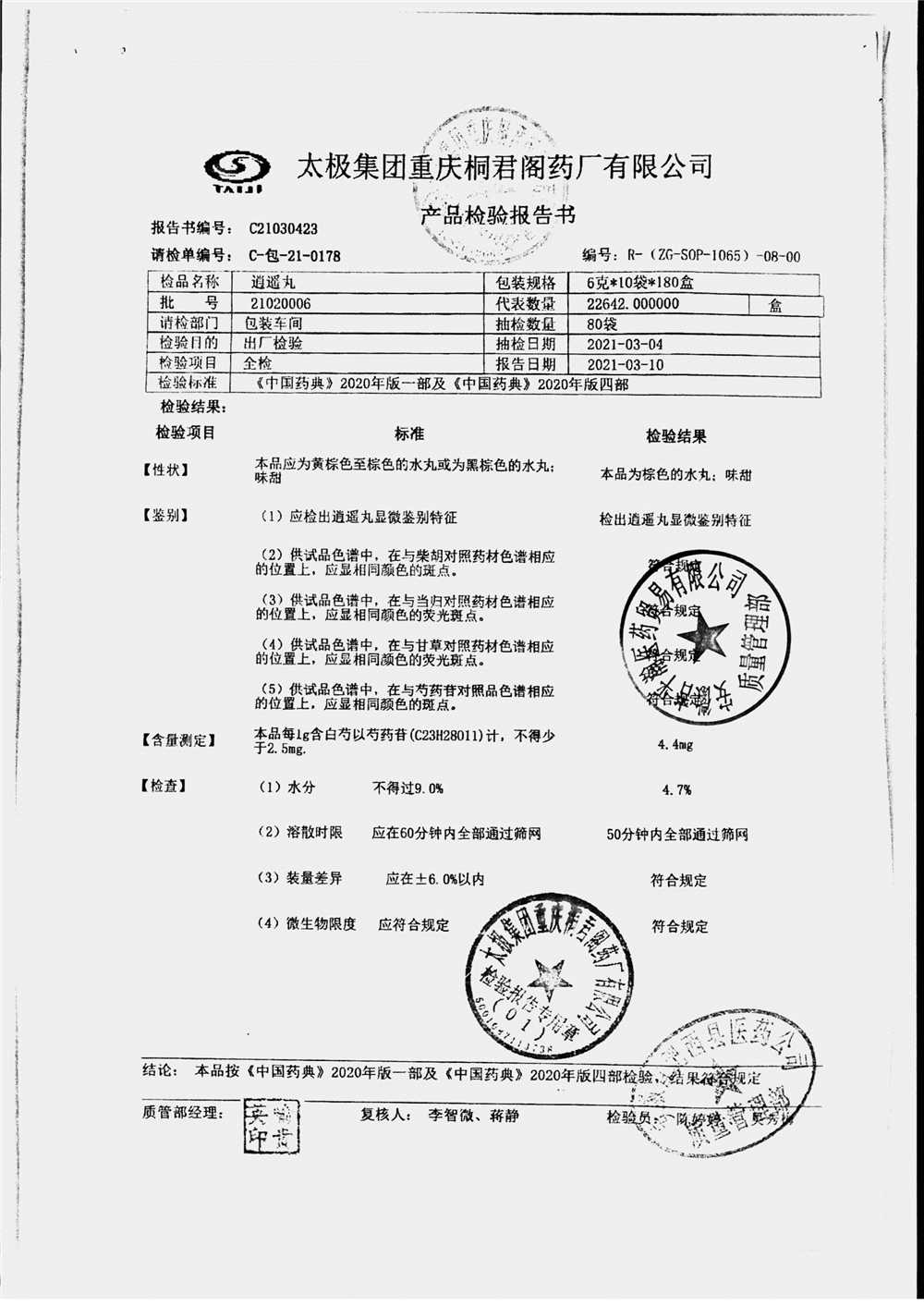 药检报告