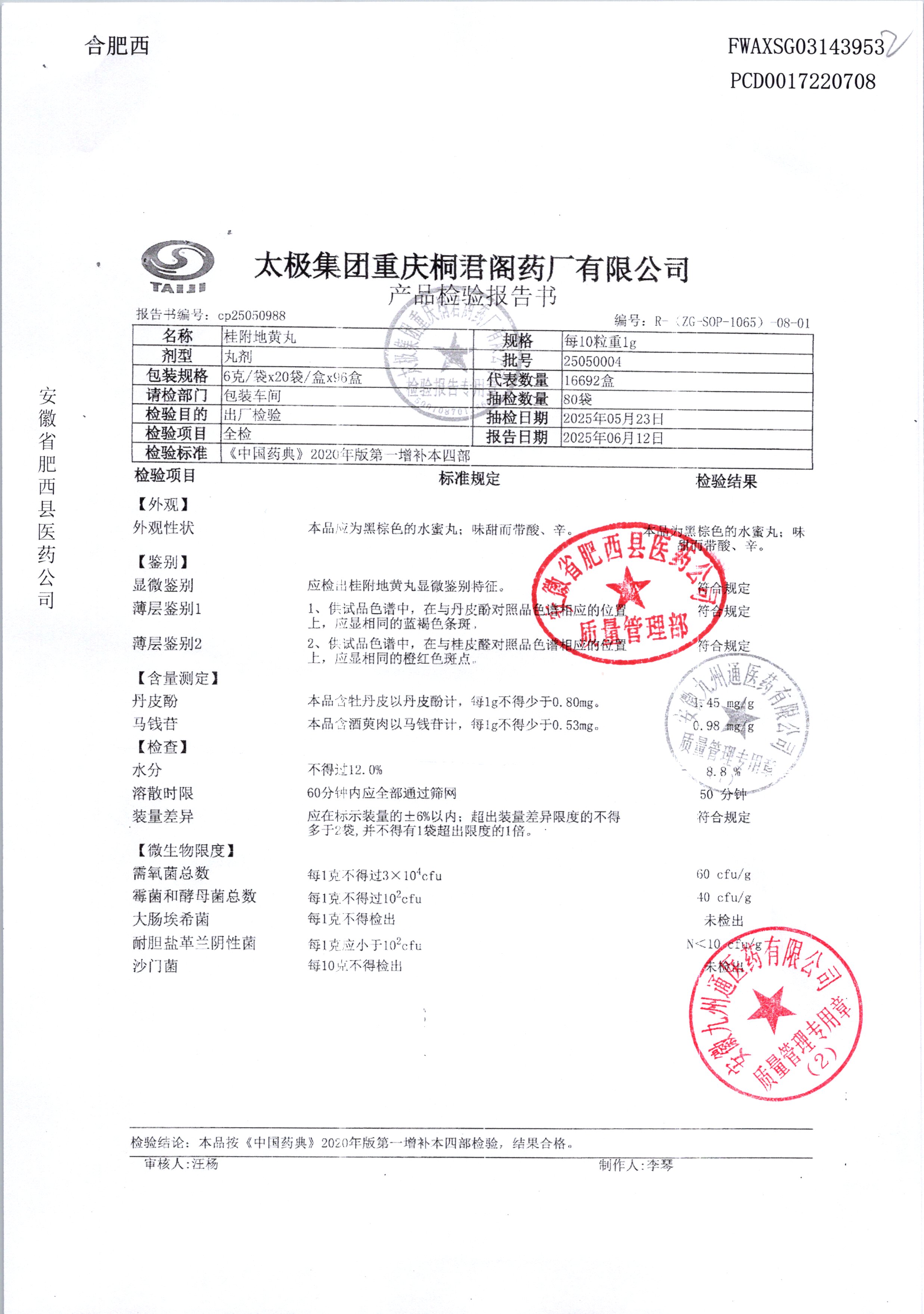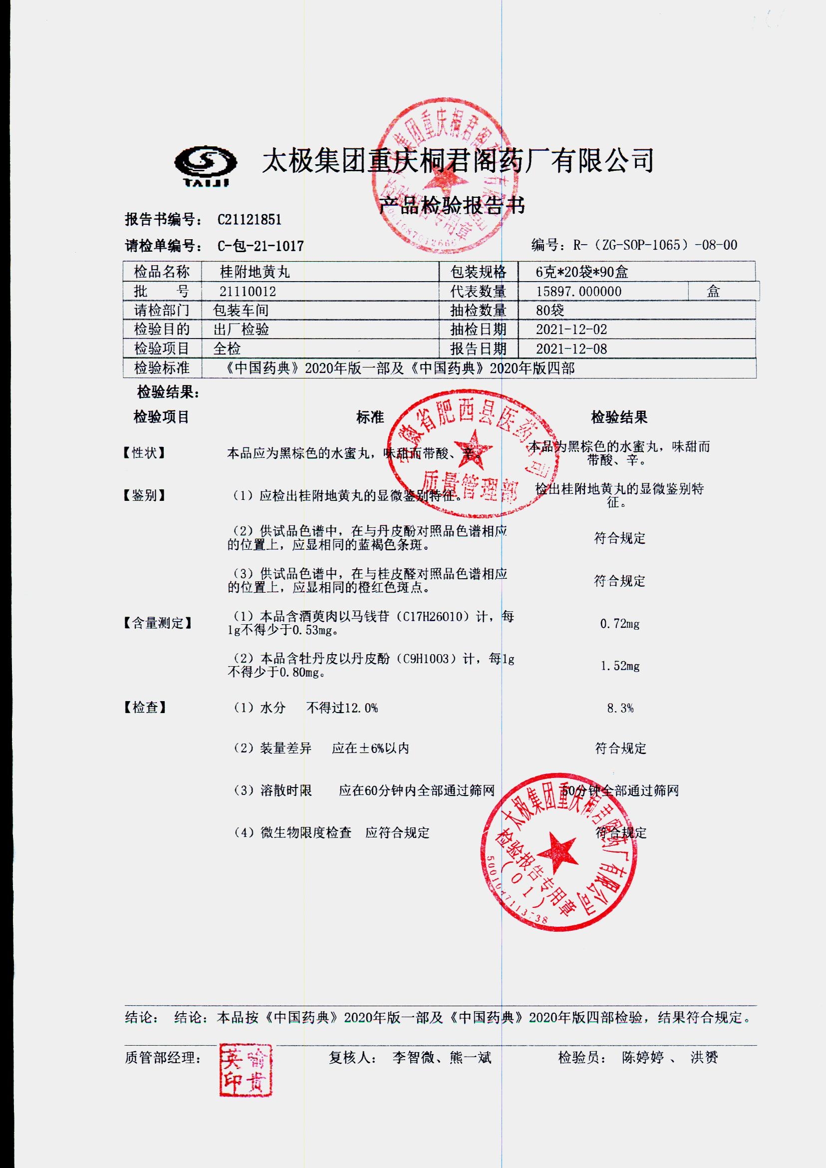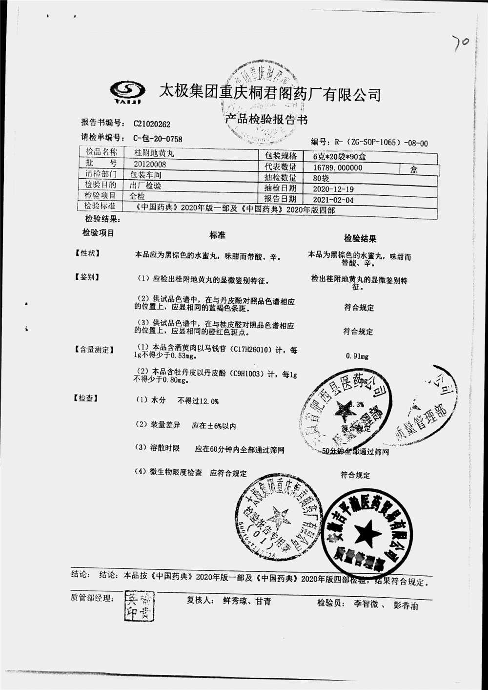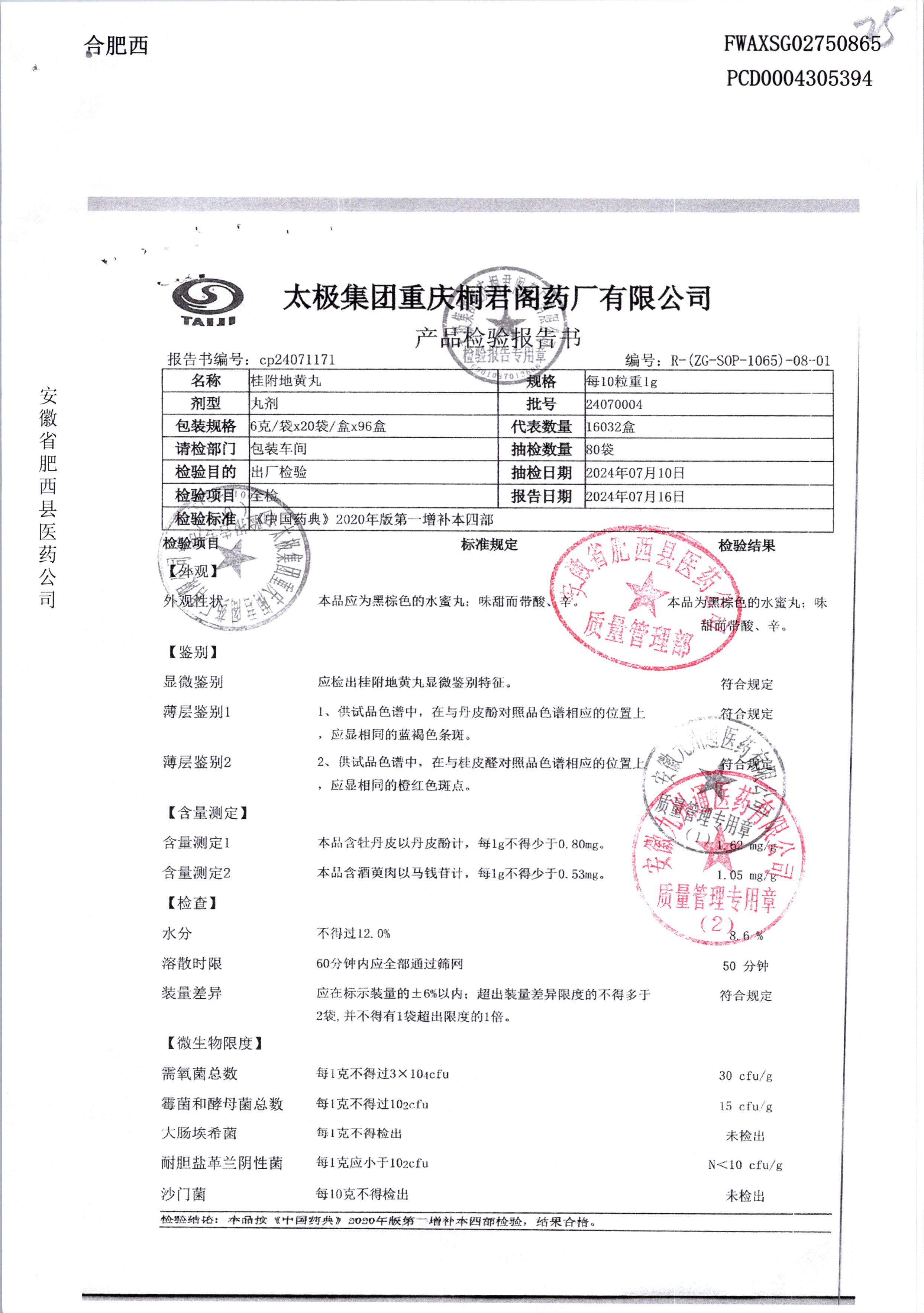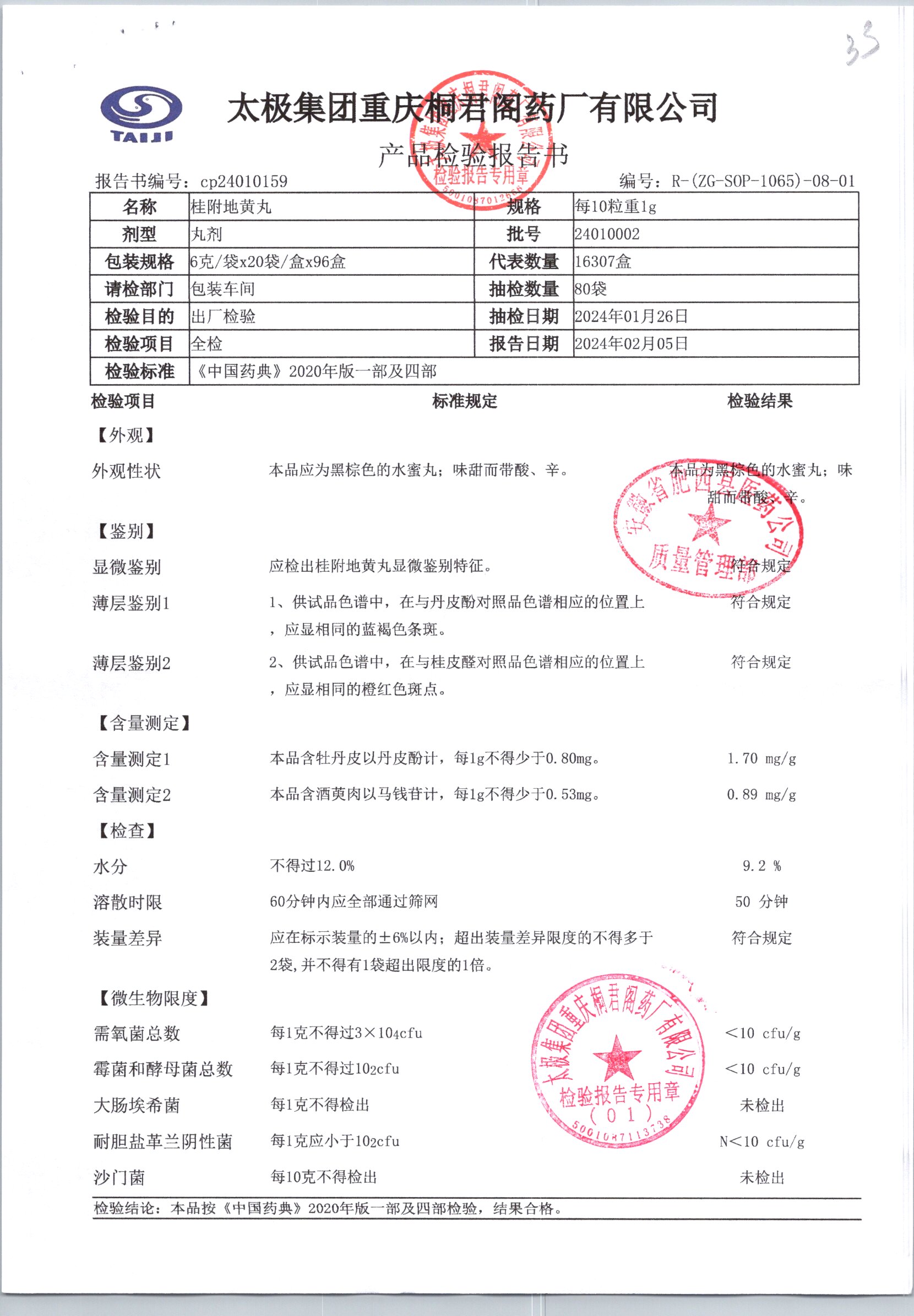 | 桂附地黄丸 | 6g*20袋 | 24070004/2 | 查看详情 |