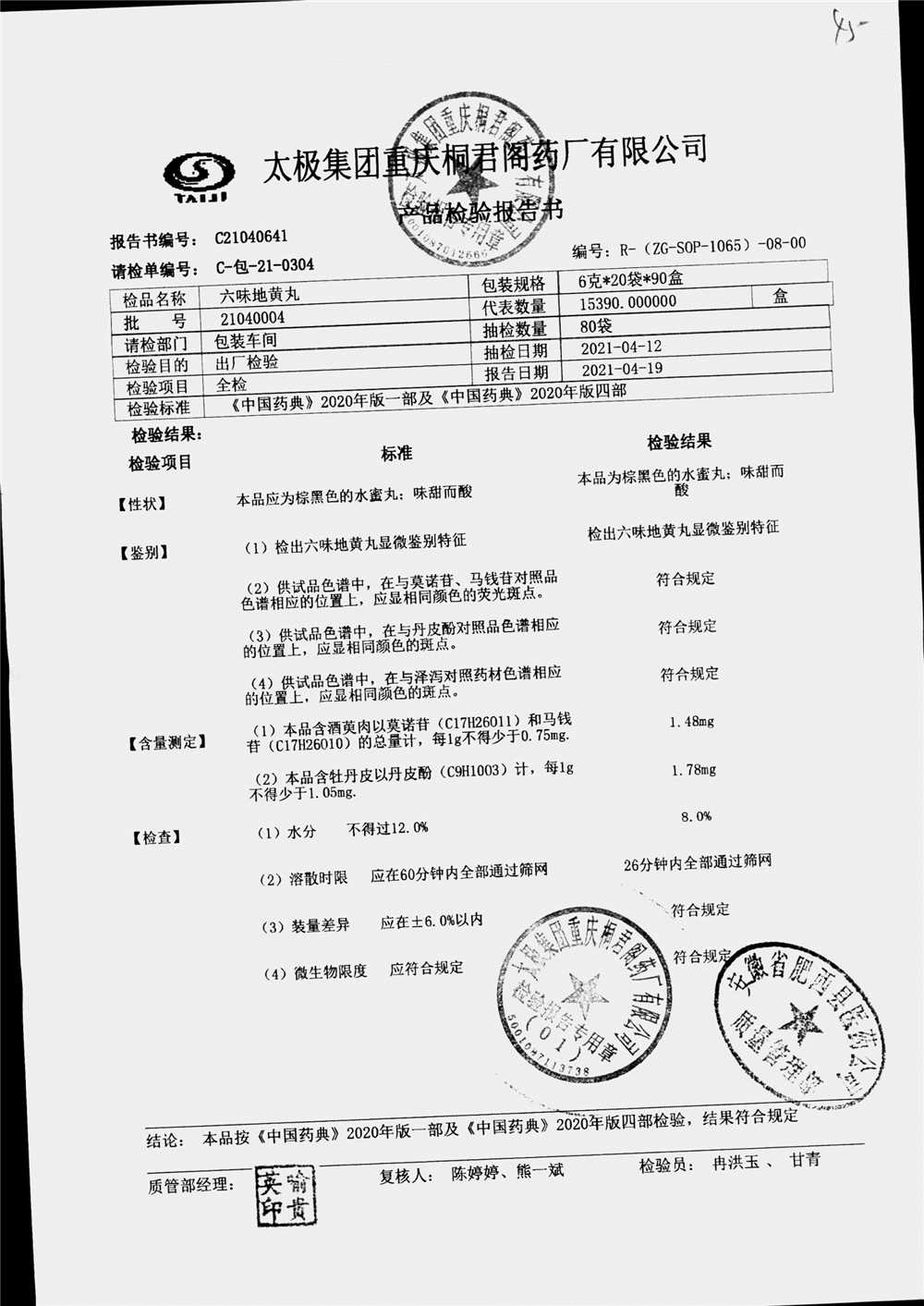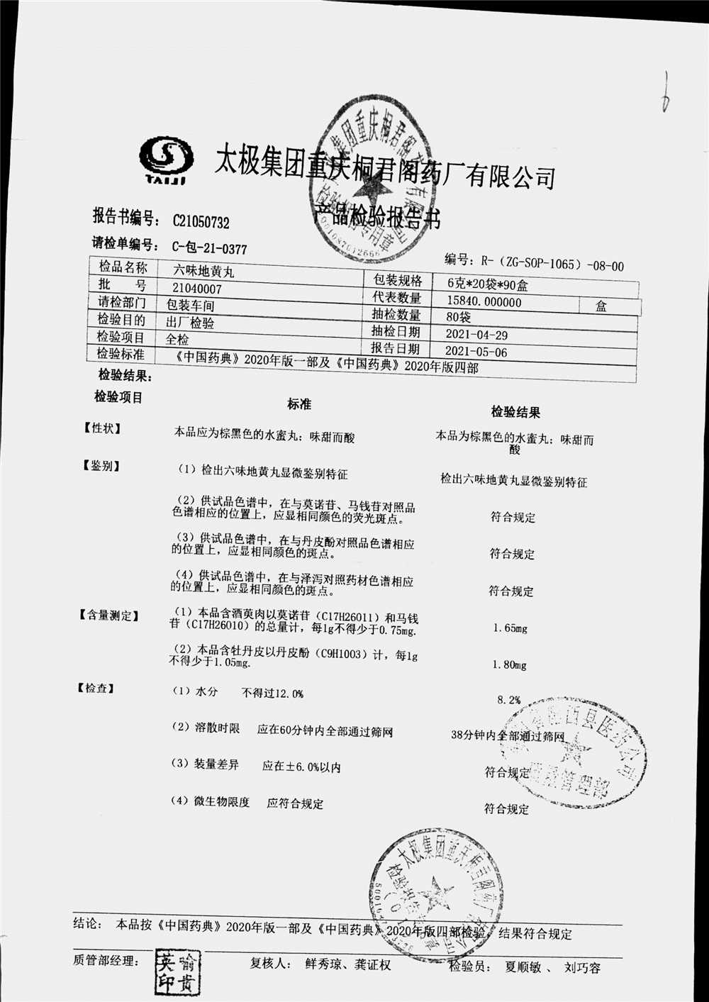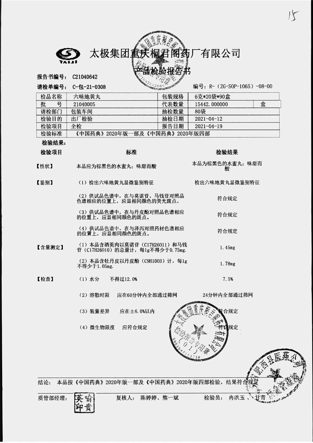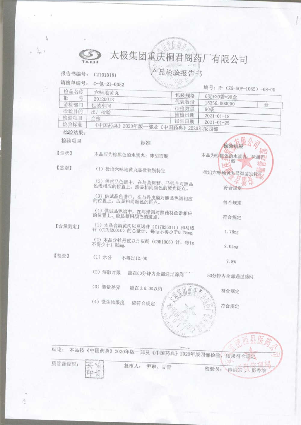 | 六味地黄丸 | 6克/袋20袋(每20粒重1g) | 21040004 | 查看详情 |