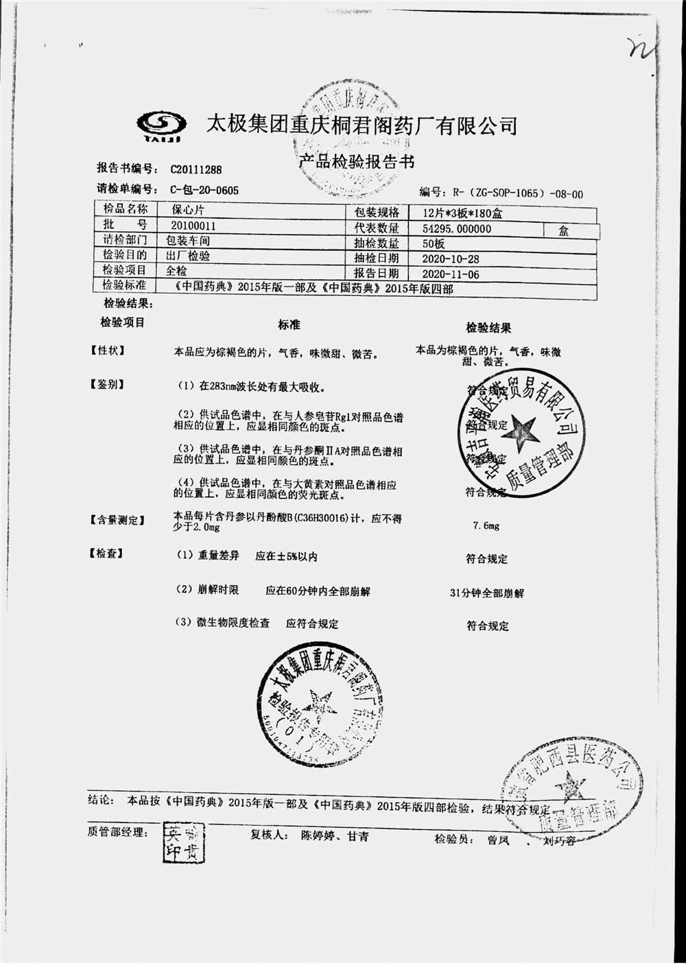 | 保心片 | 0.52g*12片*3板 | 20100011 | 查看详情 |