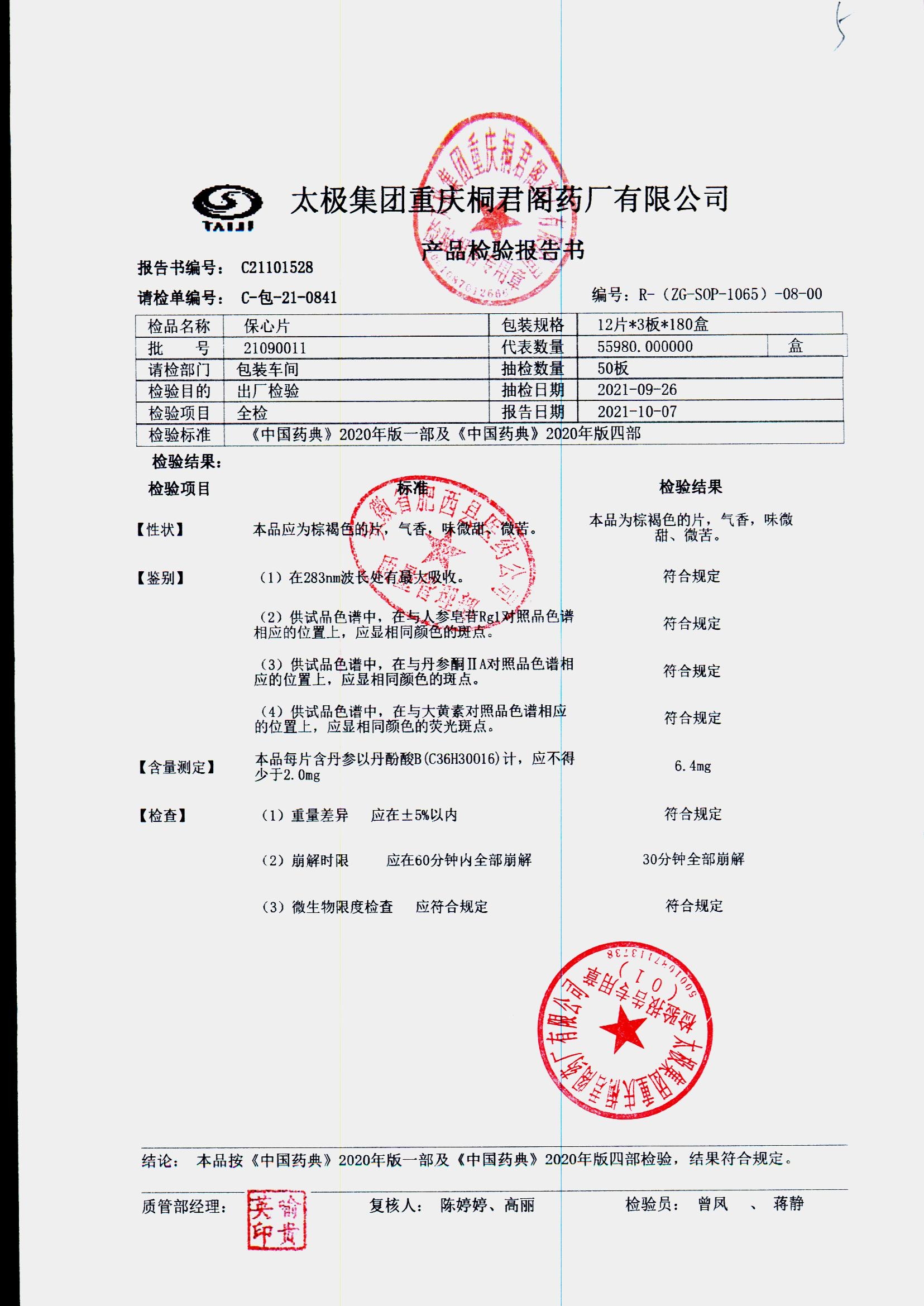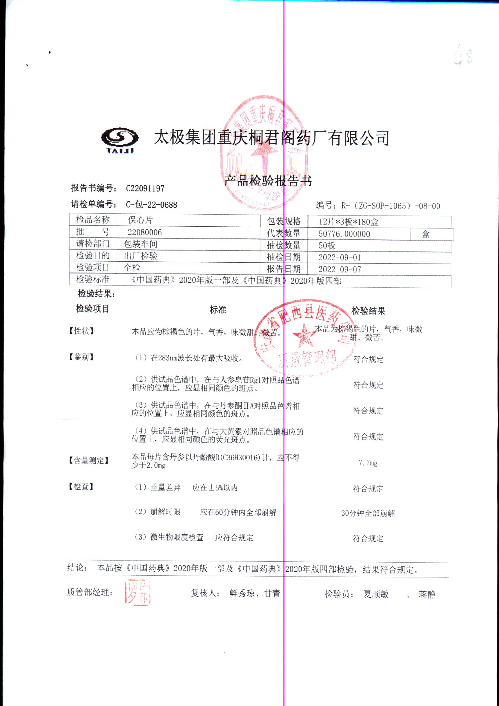 | 保心片 | 0.52g*12片*3板 | 22080006 | 查看详情 |