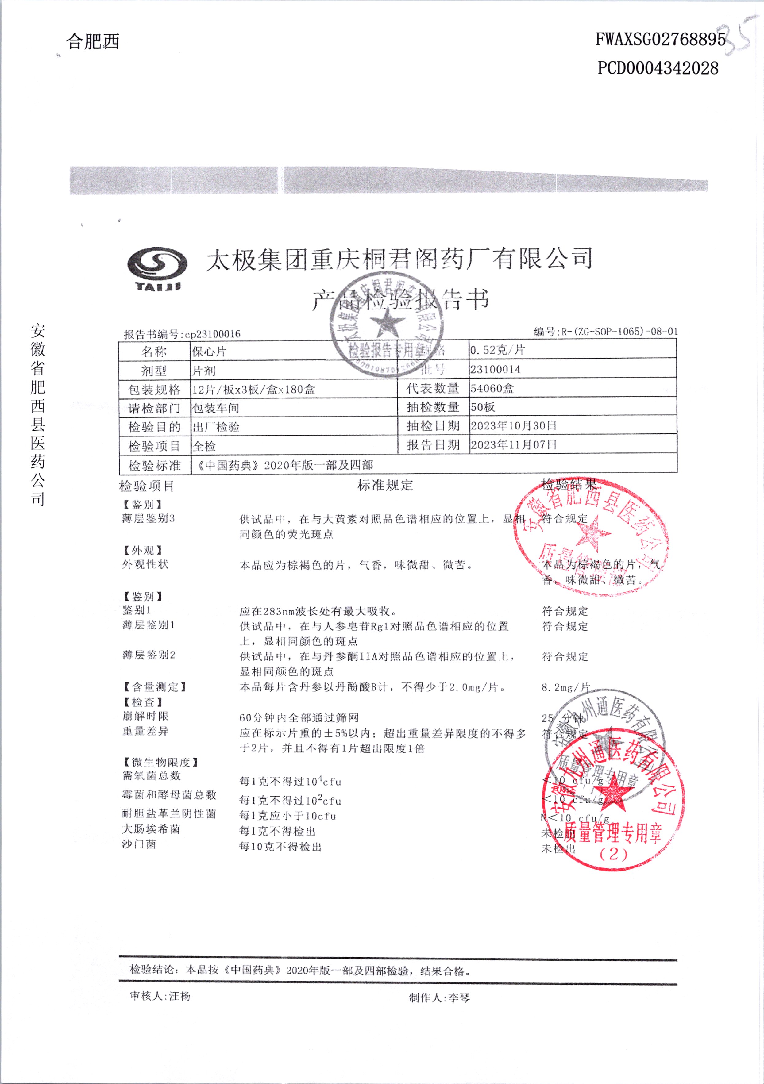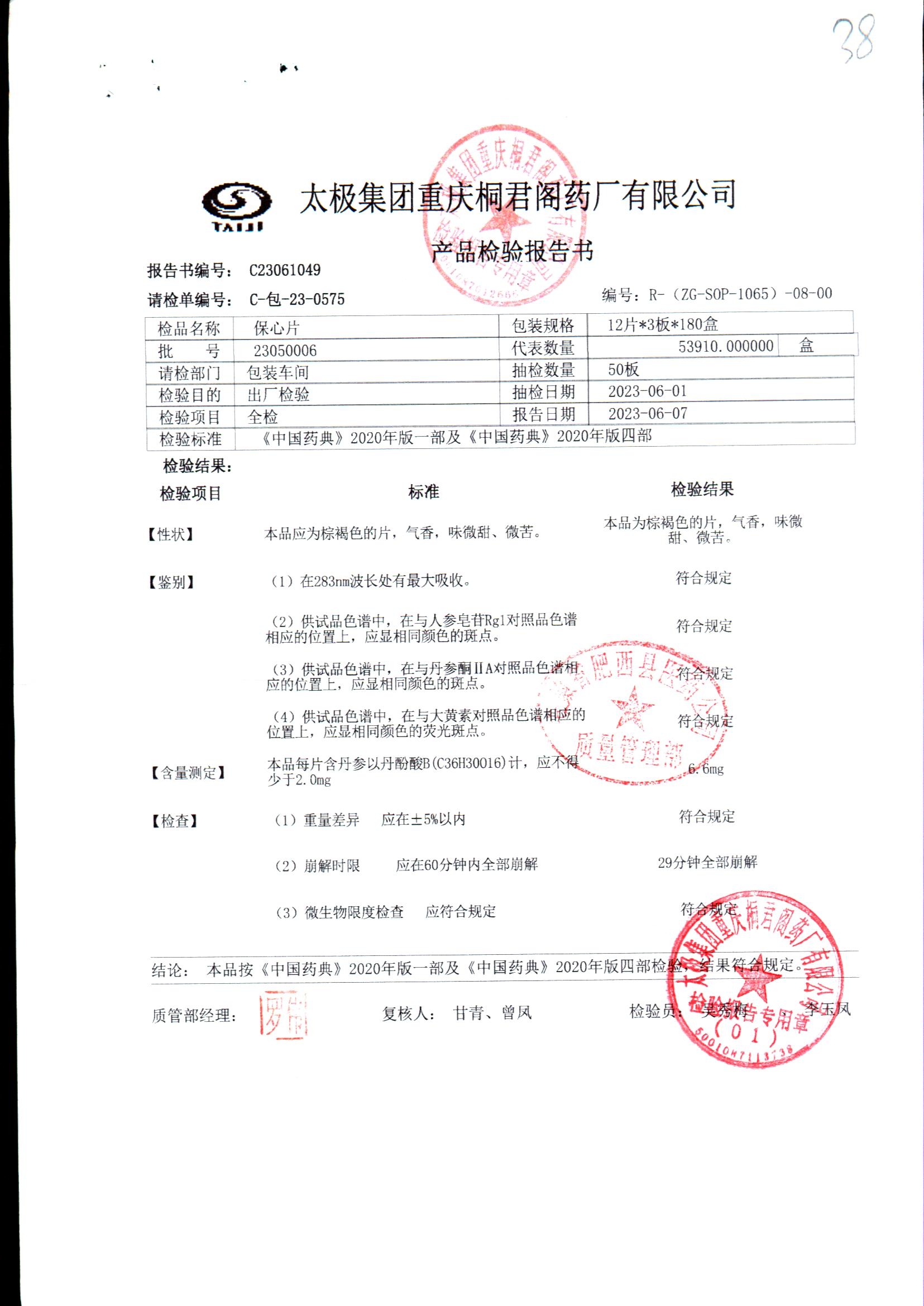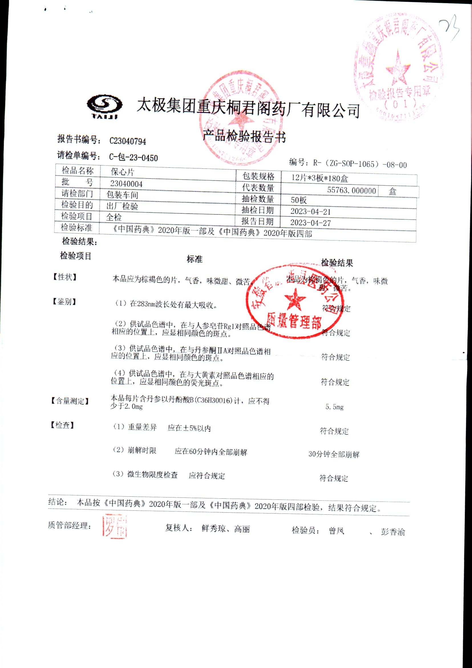 | 保心片 | 0.52g*12片*3板 | 23040004 | 查看详情 |
