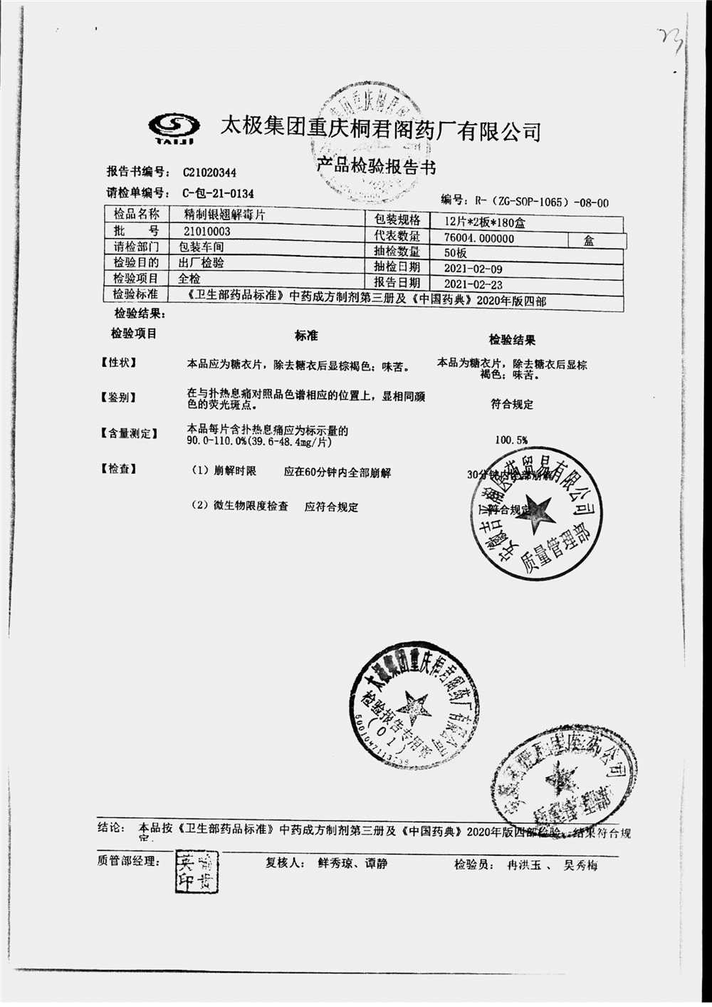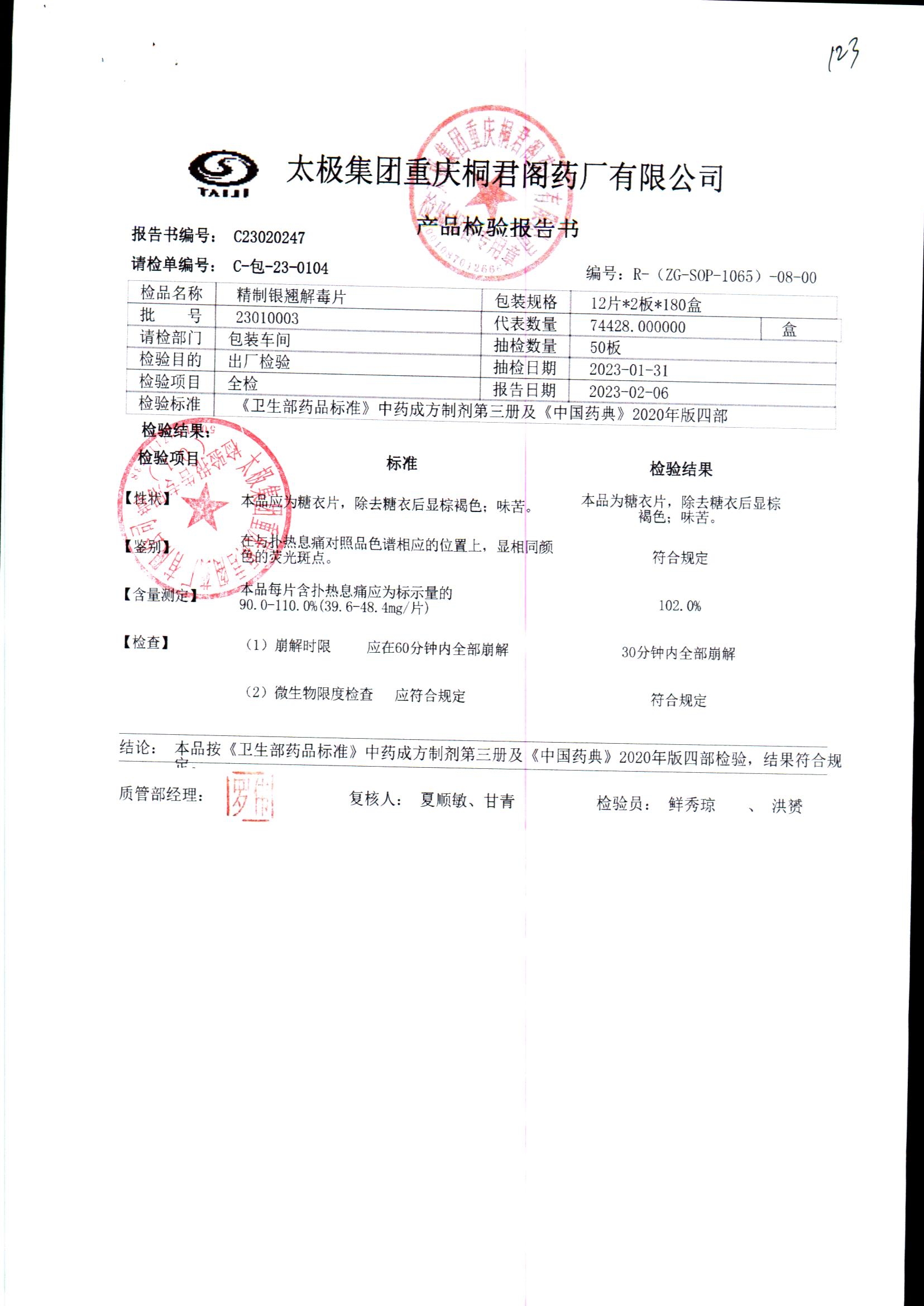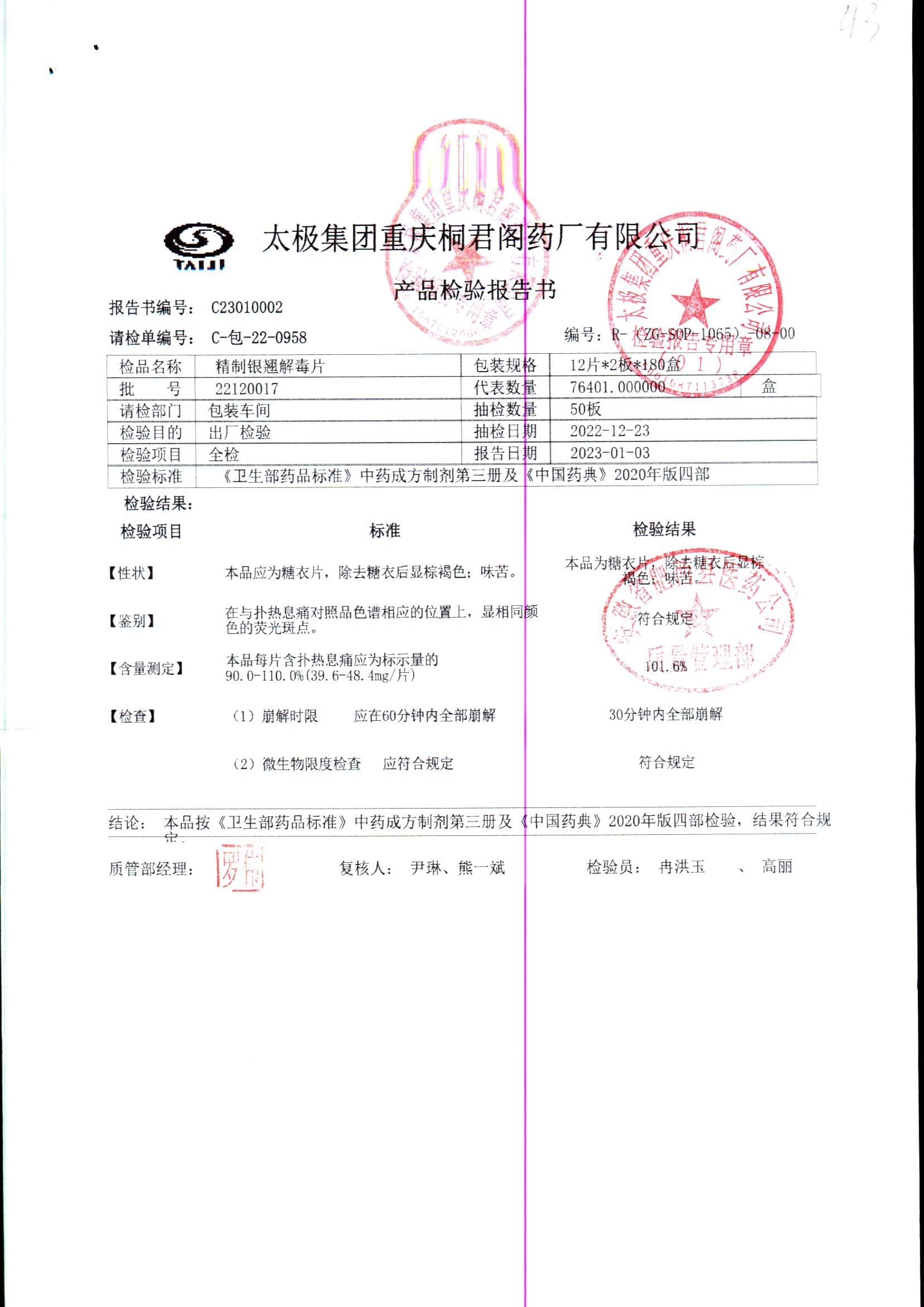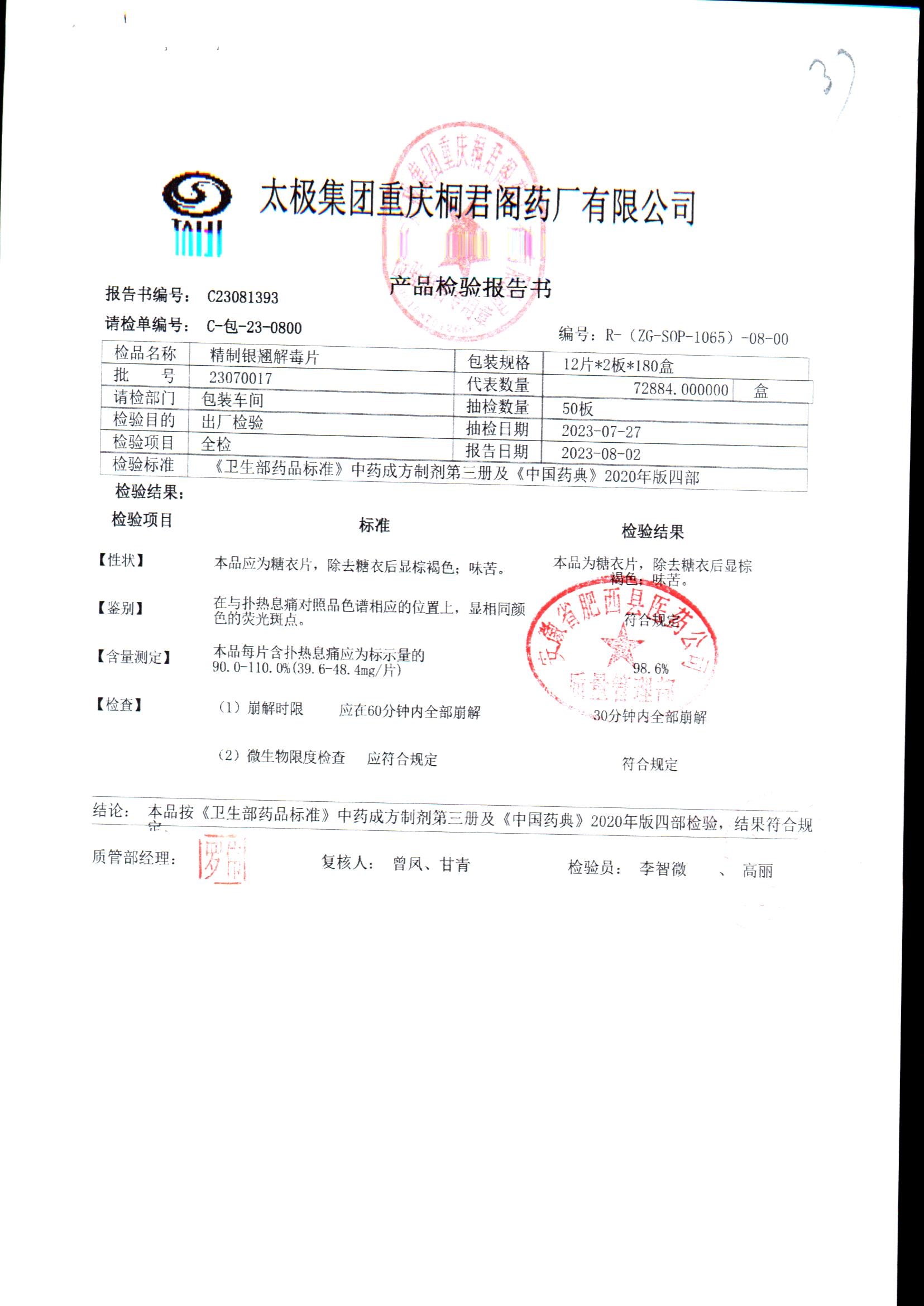 | 精制银翘解毒片 | 12片/板*2板(每片含扑热息痛44mg) | 23010003 | 查看详情 |
