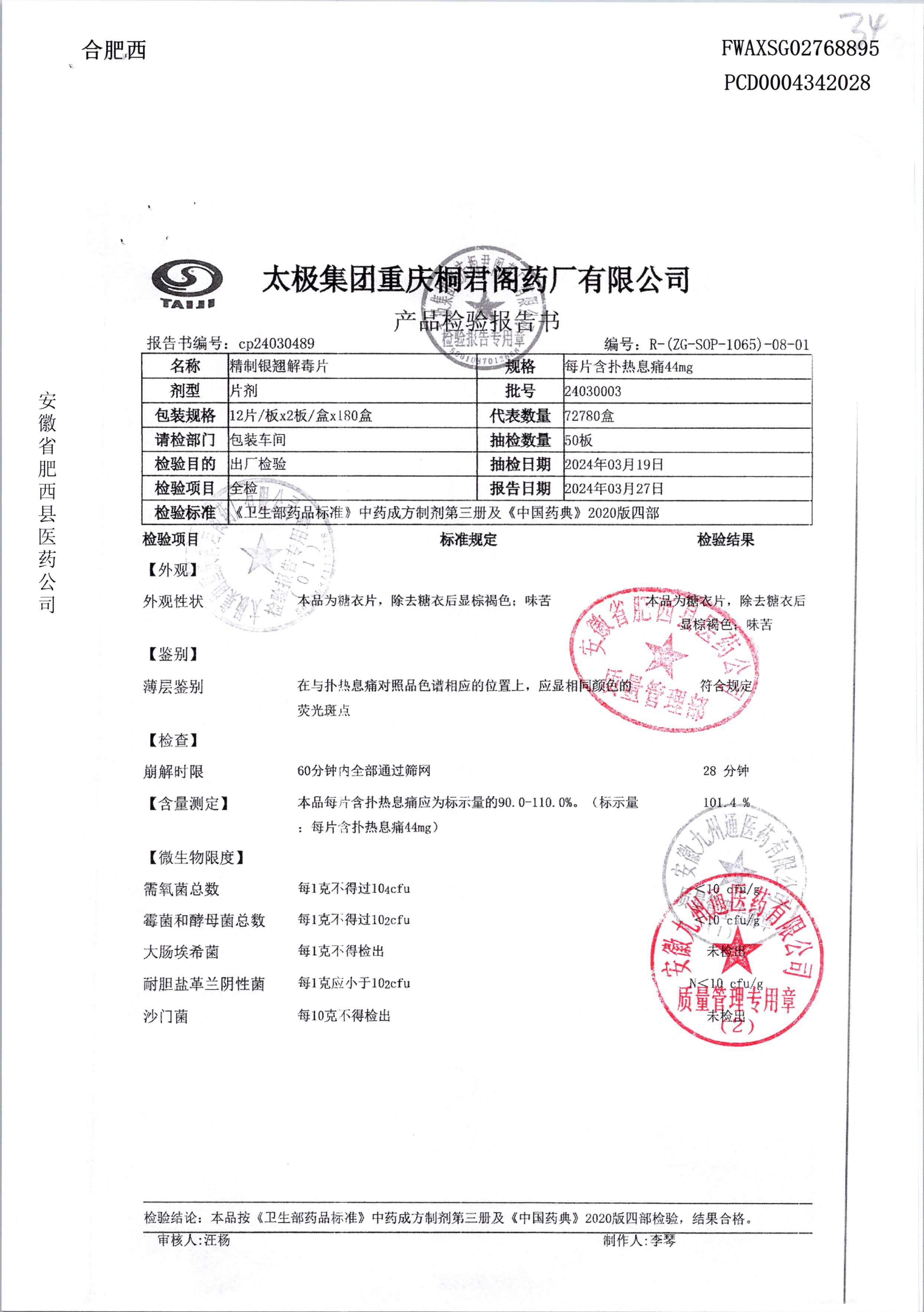 | 精制银翘解毒片 | 12片/板*2板(每片含扑热息痛44mg) | 24030003 | 查看详情 |