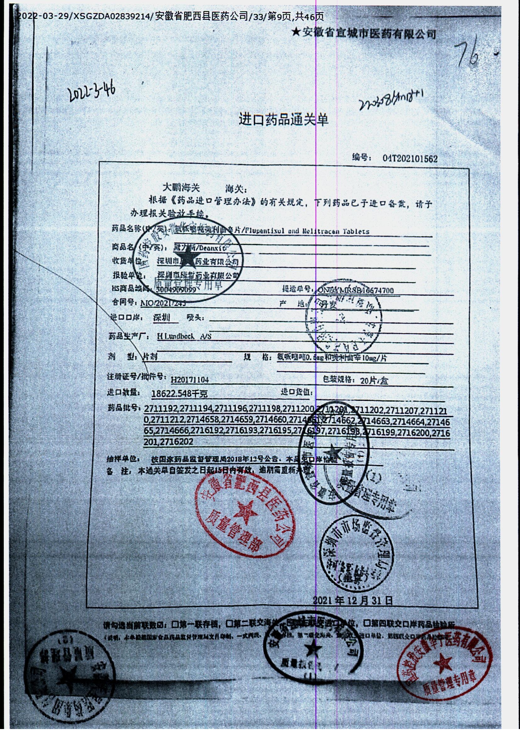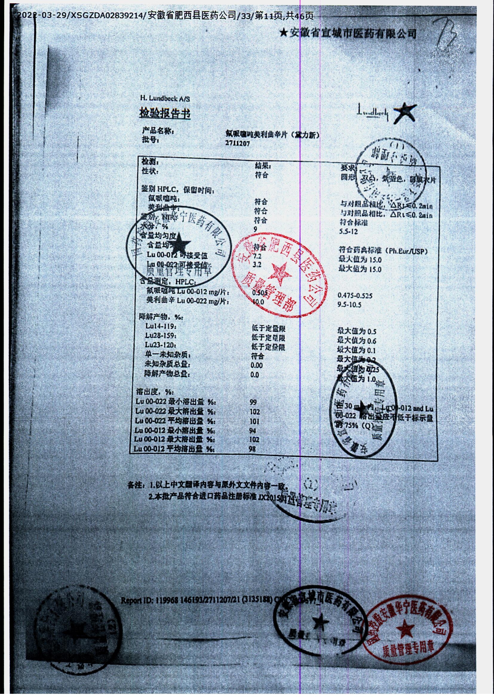 | 氟哌噻吨美利曲辛片/黛力新 | 20s | 2711168/2 | 查看详情 |