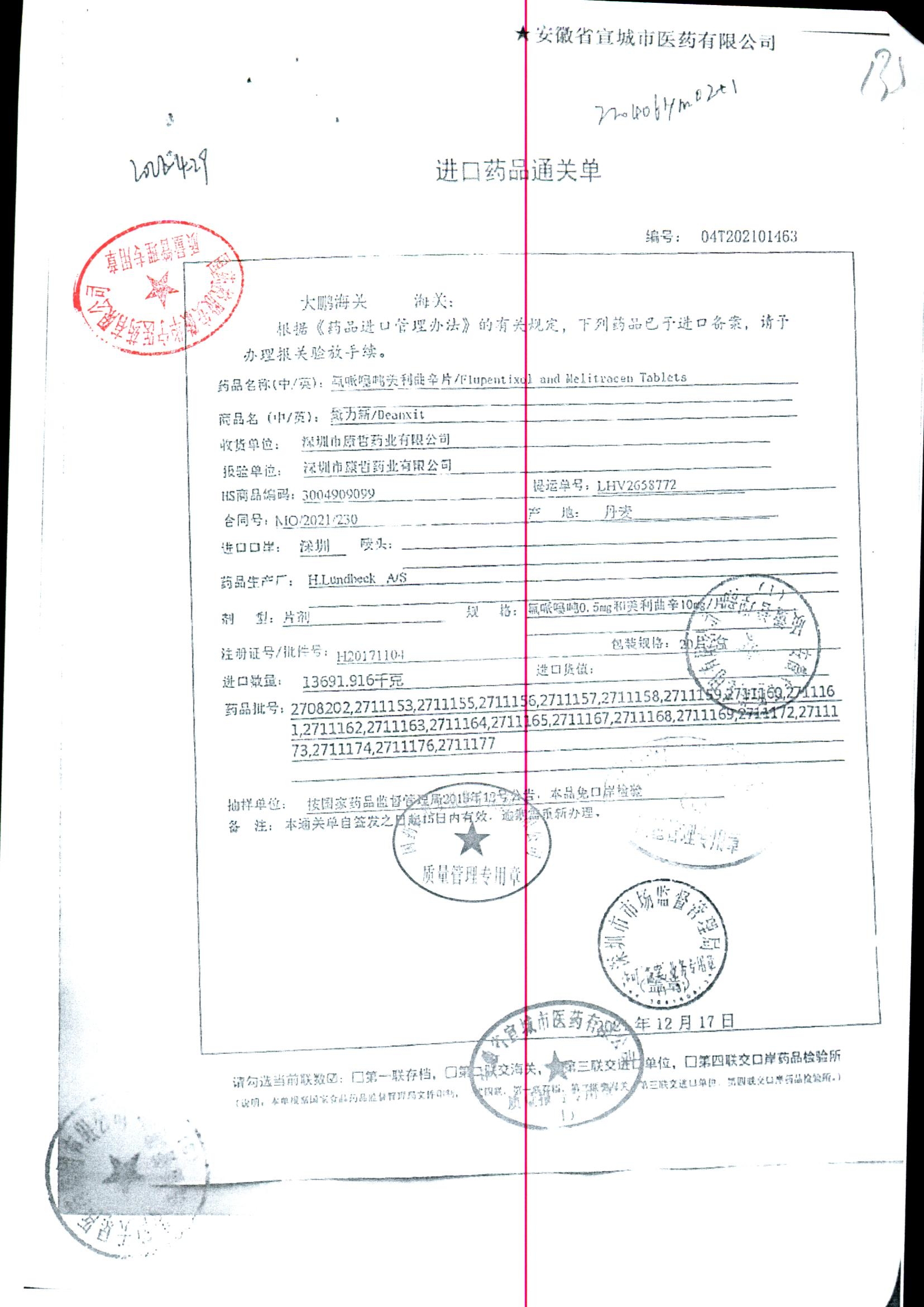 | 氟哌噻吨美利曲辛片/黛力新 | 20s | 2711168/1 | 查看详情 |