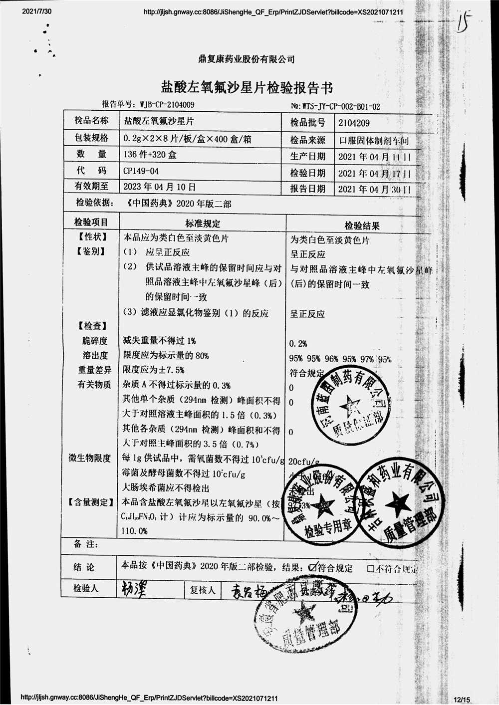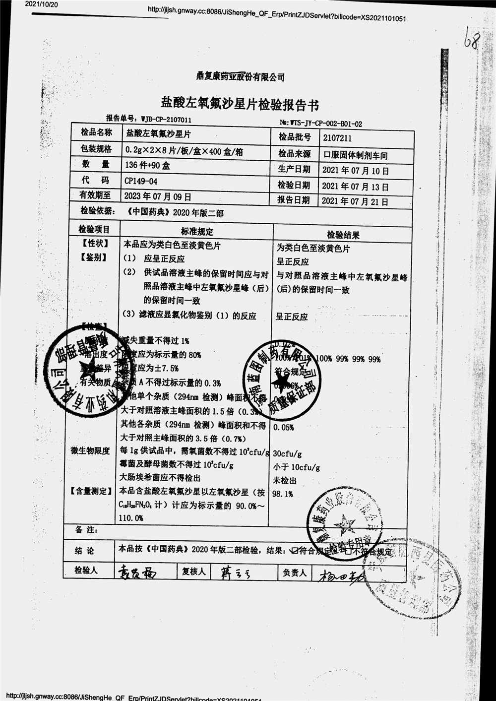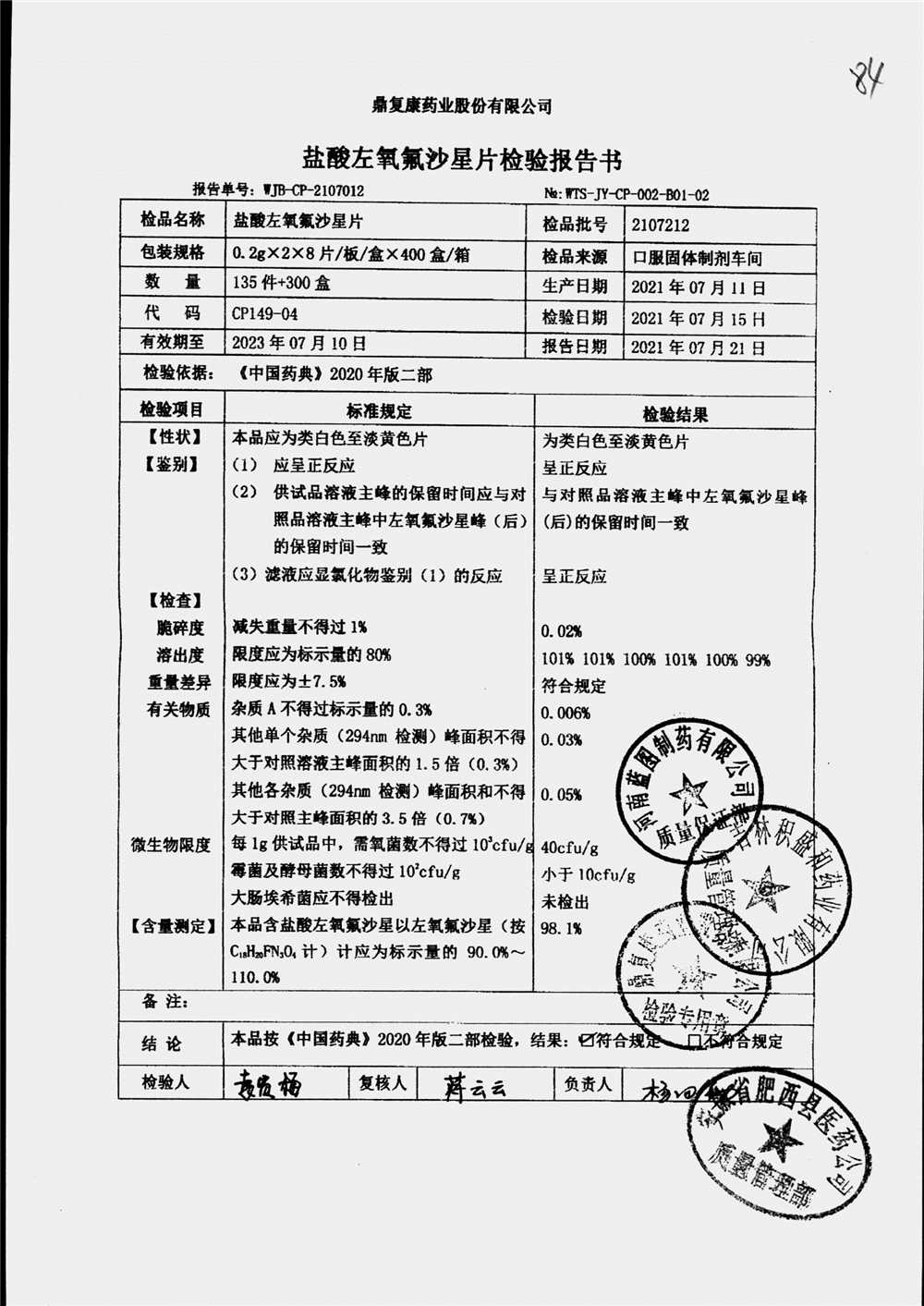 | 盐酸左氧氟沙星片 | 0.2g | 2107211 | 查看详情 |