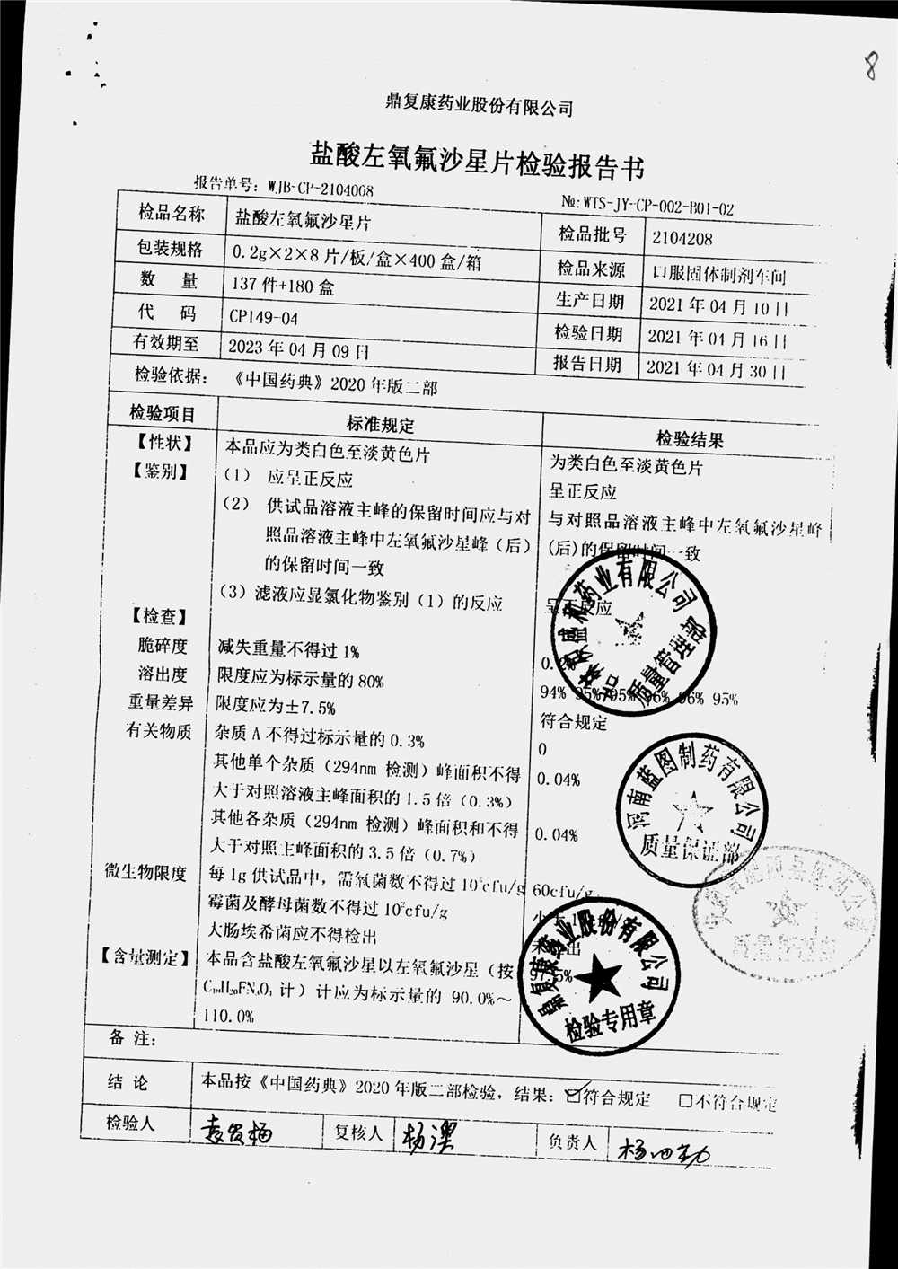 | 盐酸左氧氟沙星片 | 0.2g | 2104208 | 查看详情 |