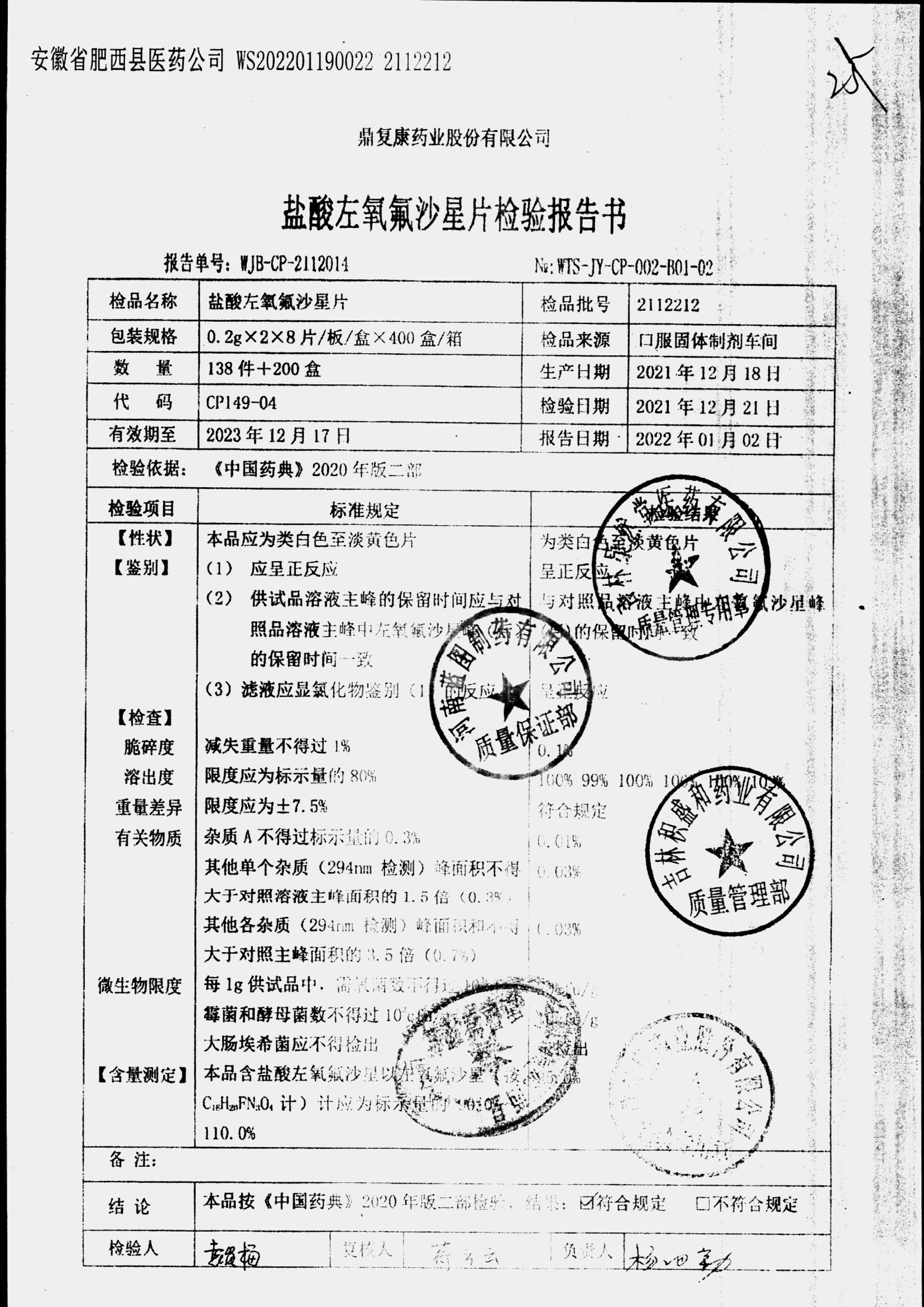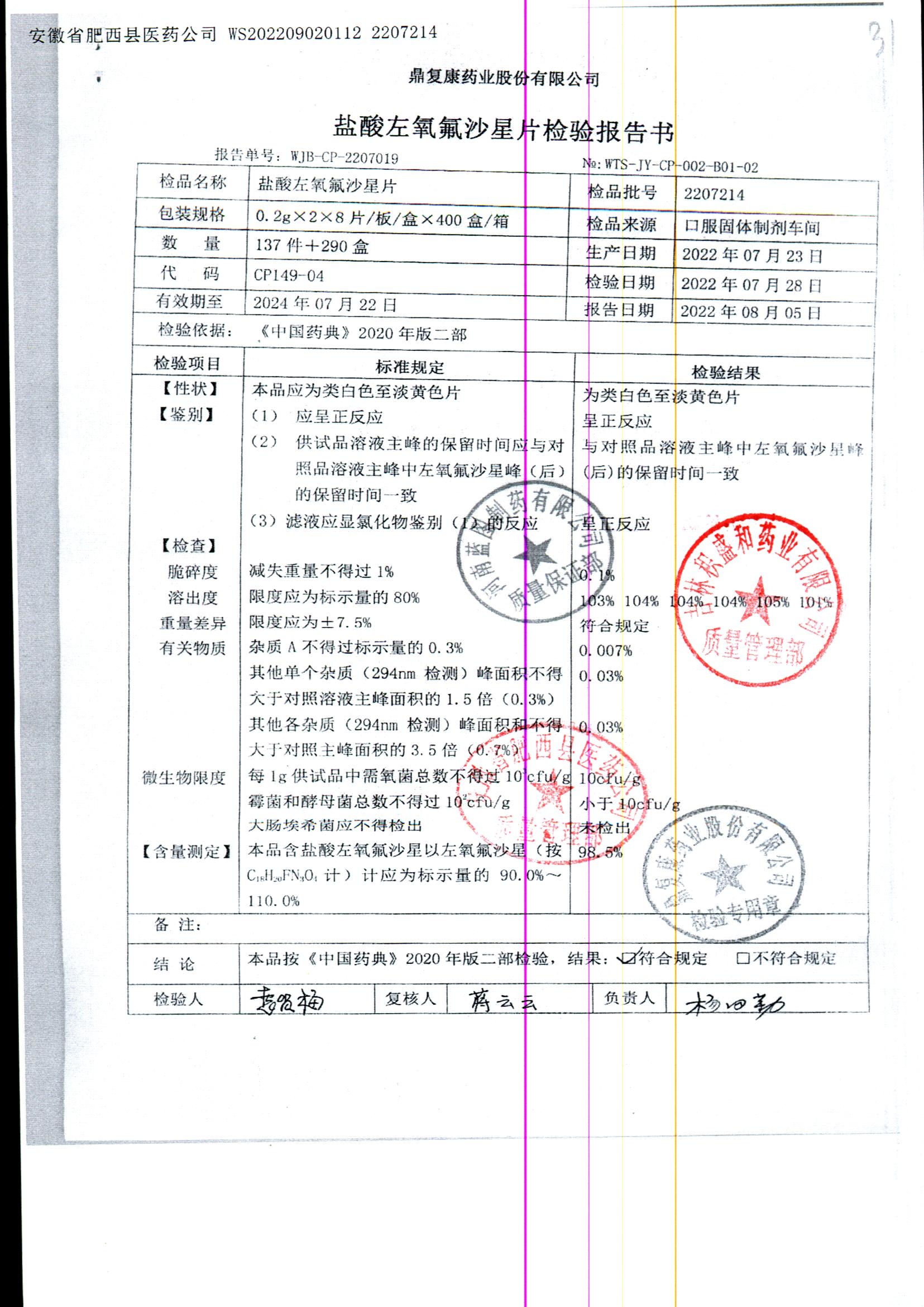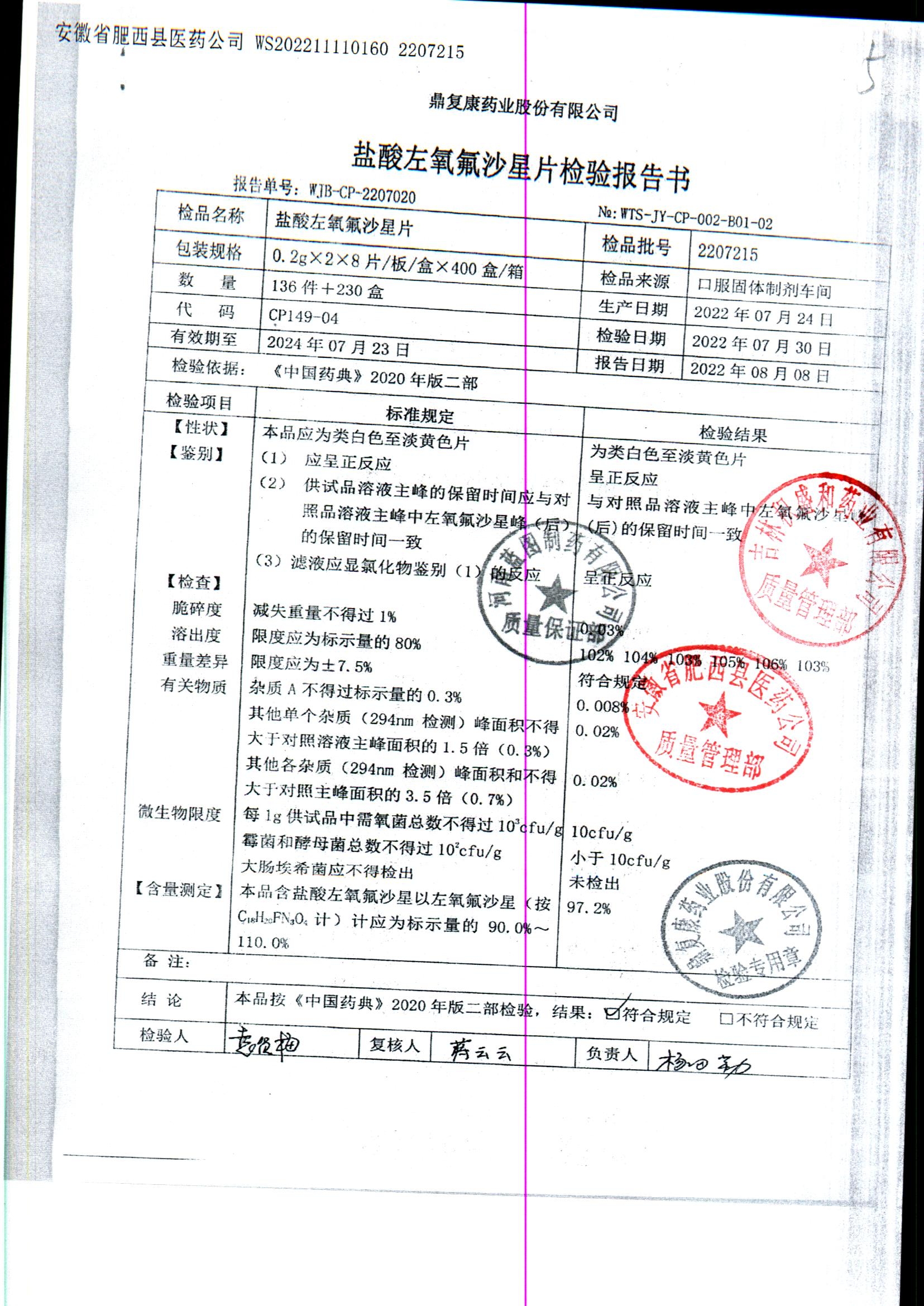 | 盐酸左氧氟沙星片 | 0.2g | 2112212 | 查看详情 |