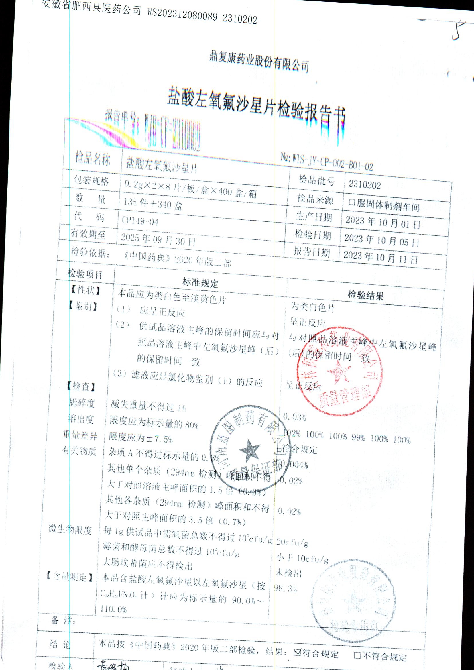 | 盐酸左氧氟沙星片 | 0.2g | 2310202 | 查看详情 |