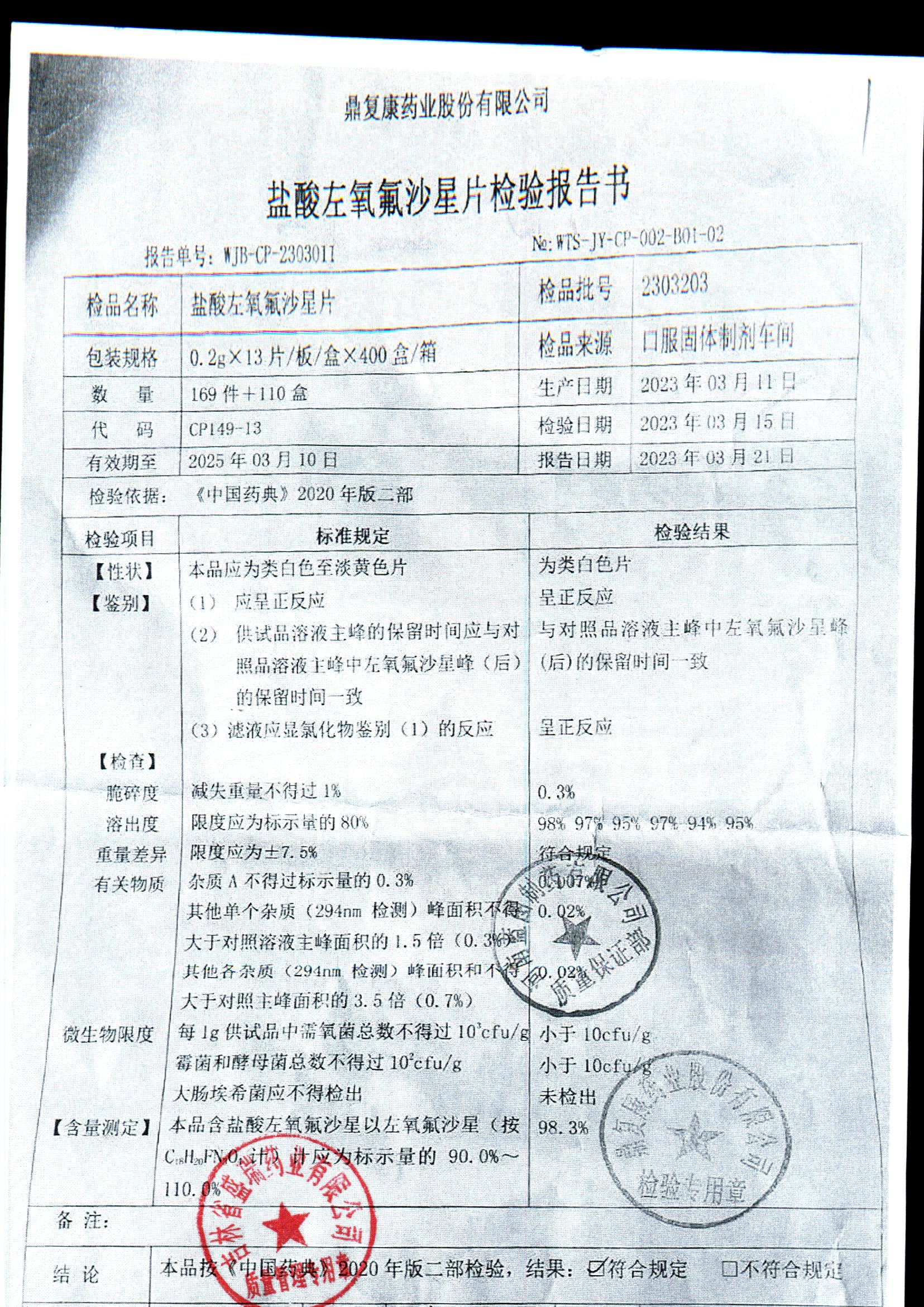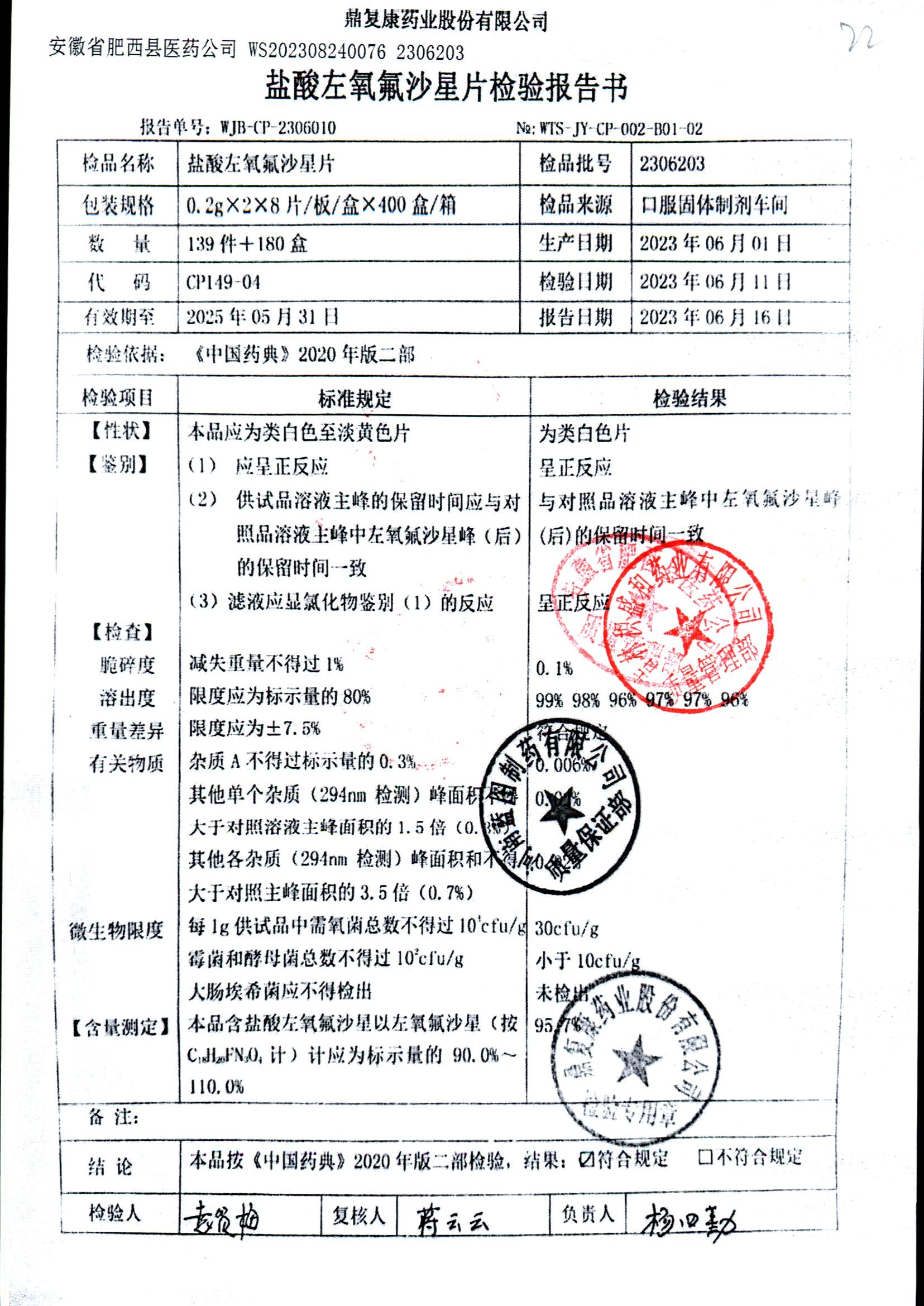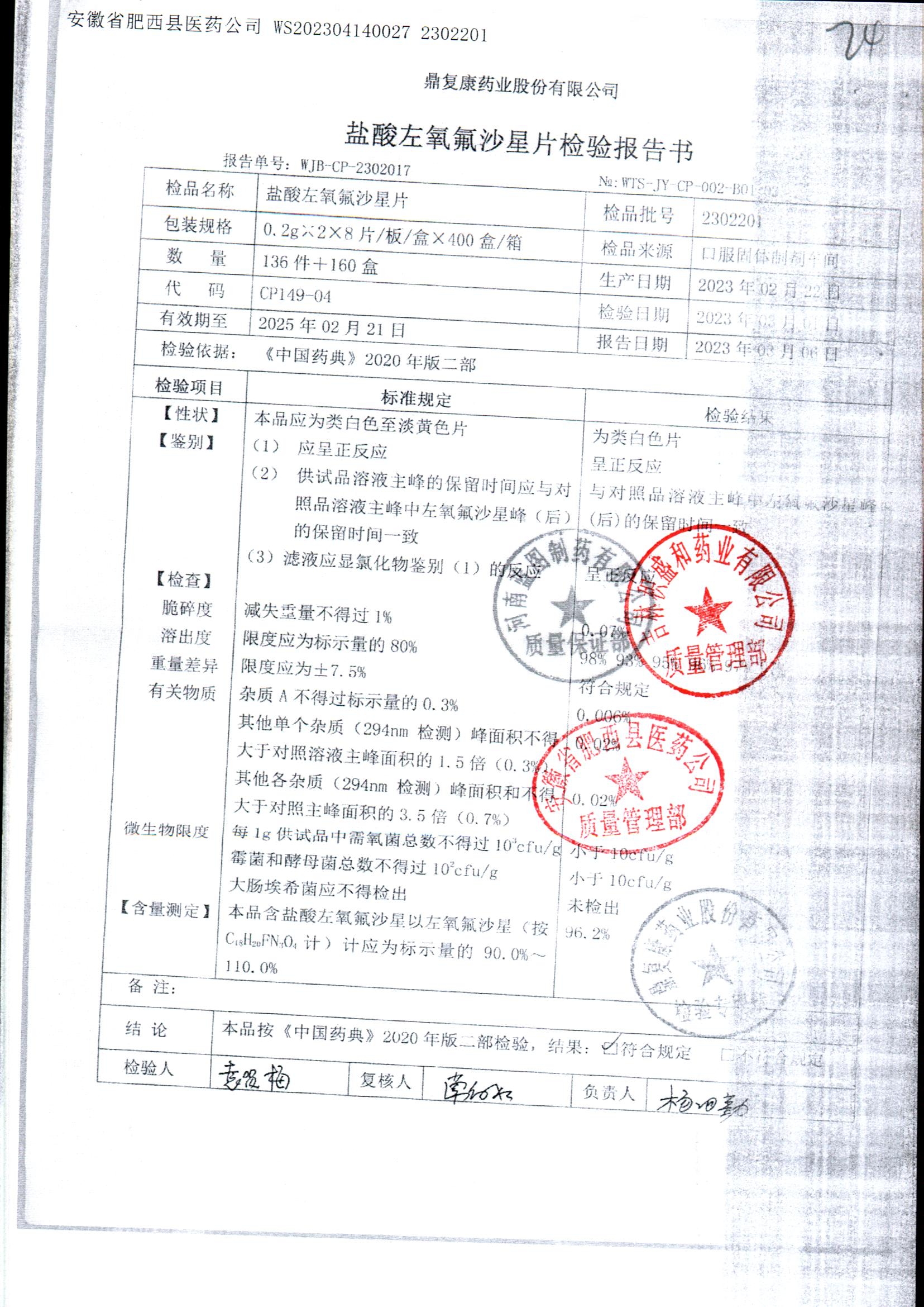 | 盐酸左氧氟沙星片 | 0.2g | 2302201 | 查看详情 |