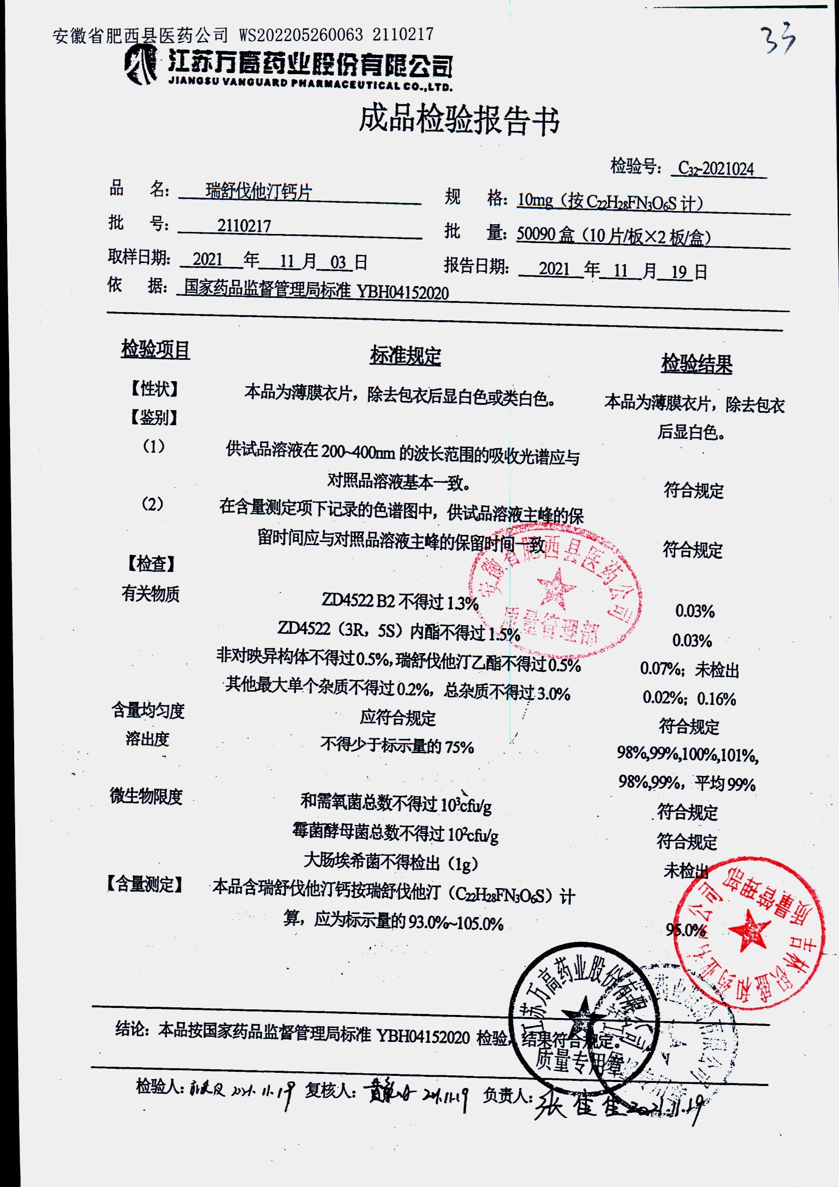 | 瑞舒伐他汀钙片 | 10mg*10片/板*2板 | 2110217 | 查看详情 |