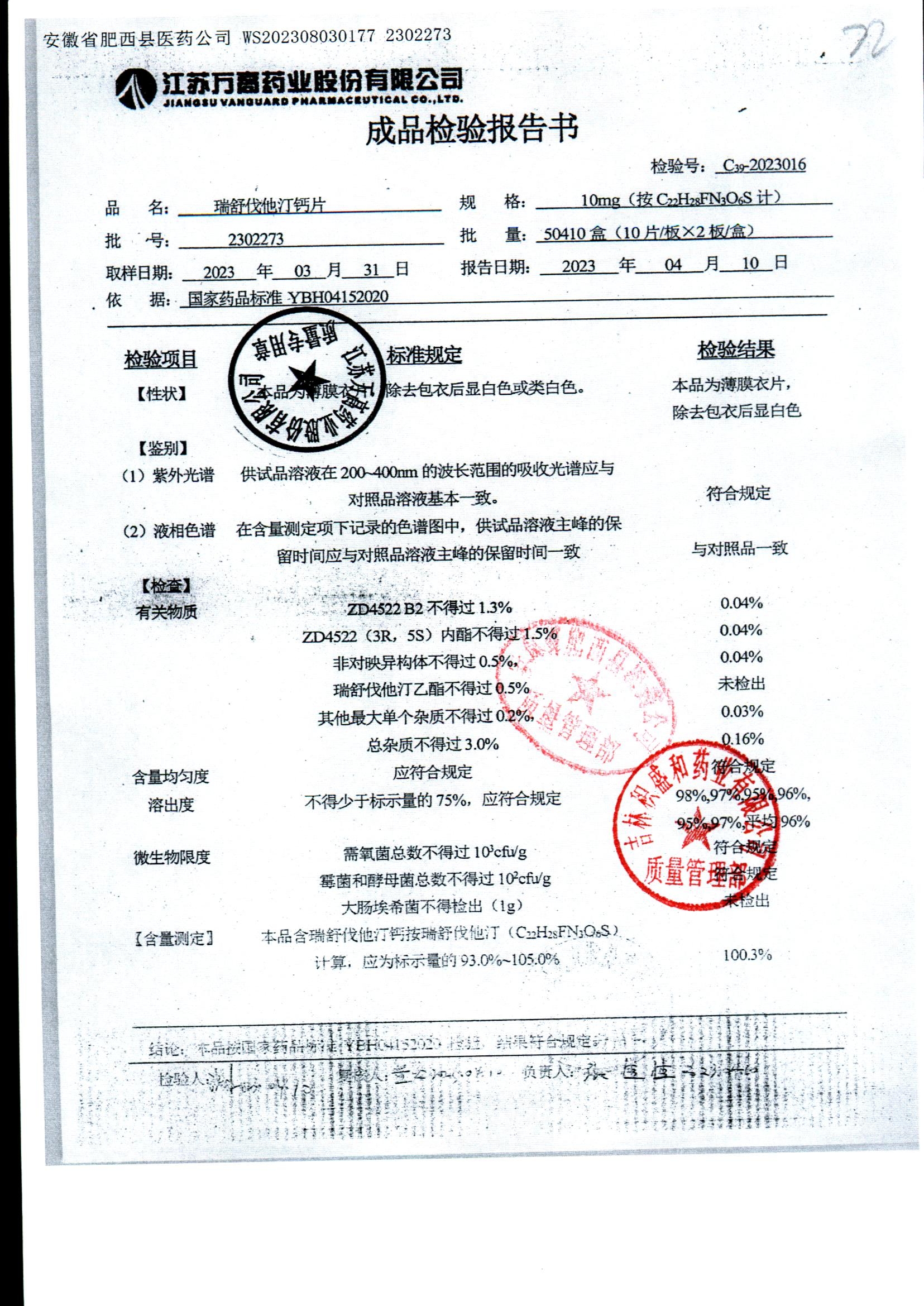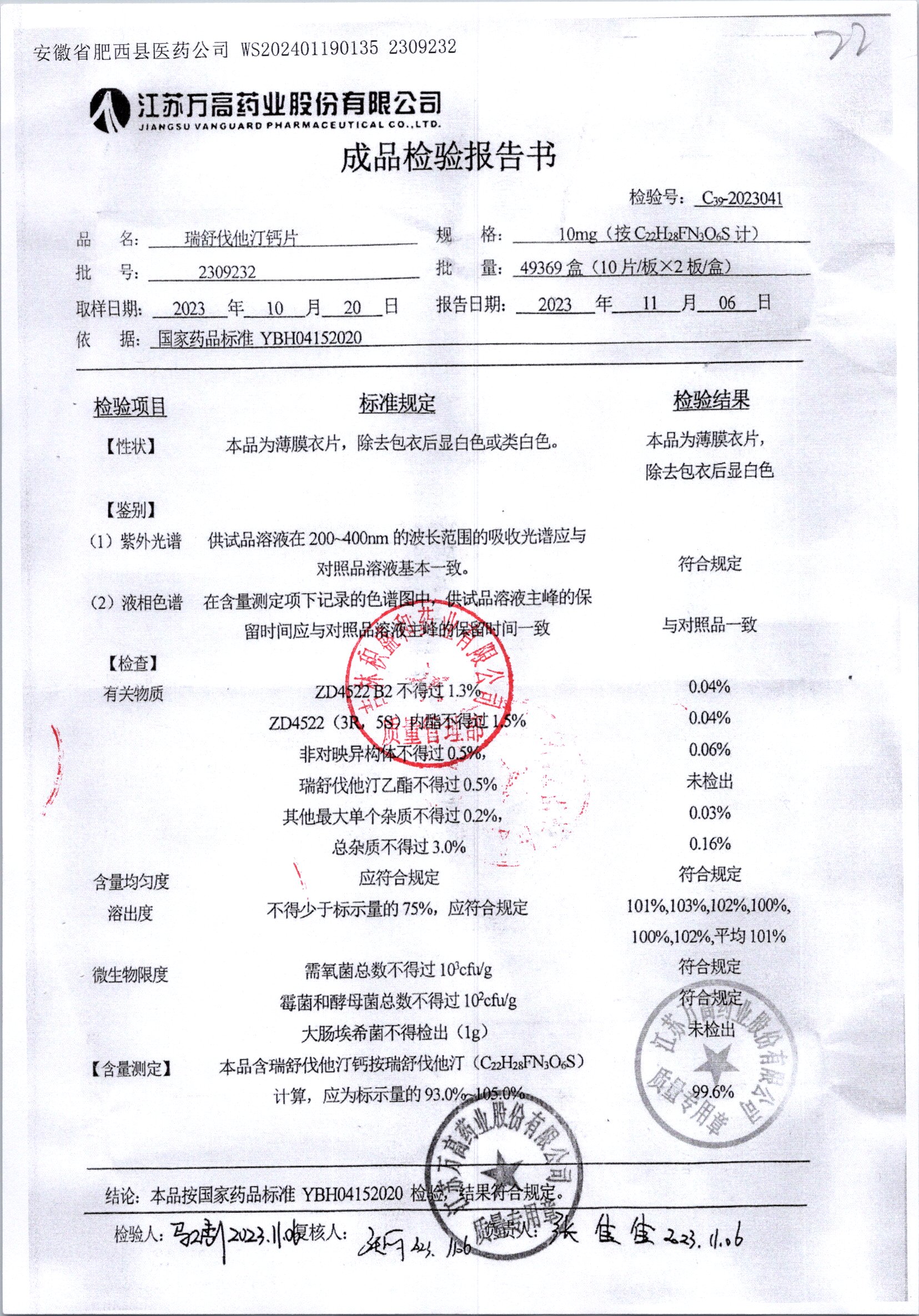 | 瑞舒伐他汀钙片 | 10mg*10片/板*2板 | 2309232 | 查看详情 |