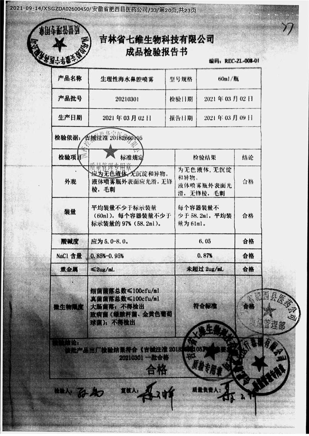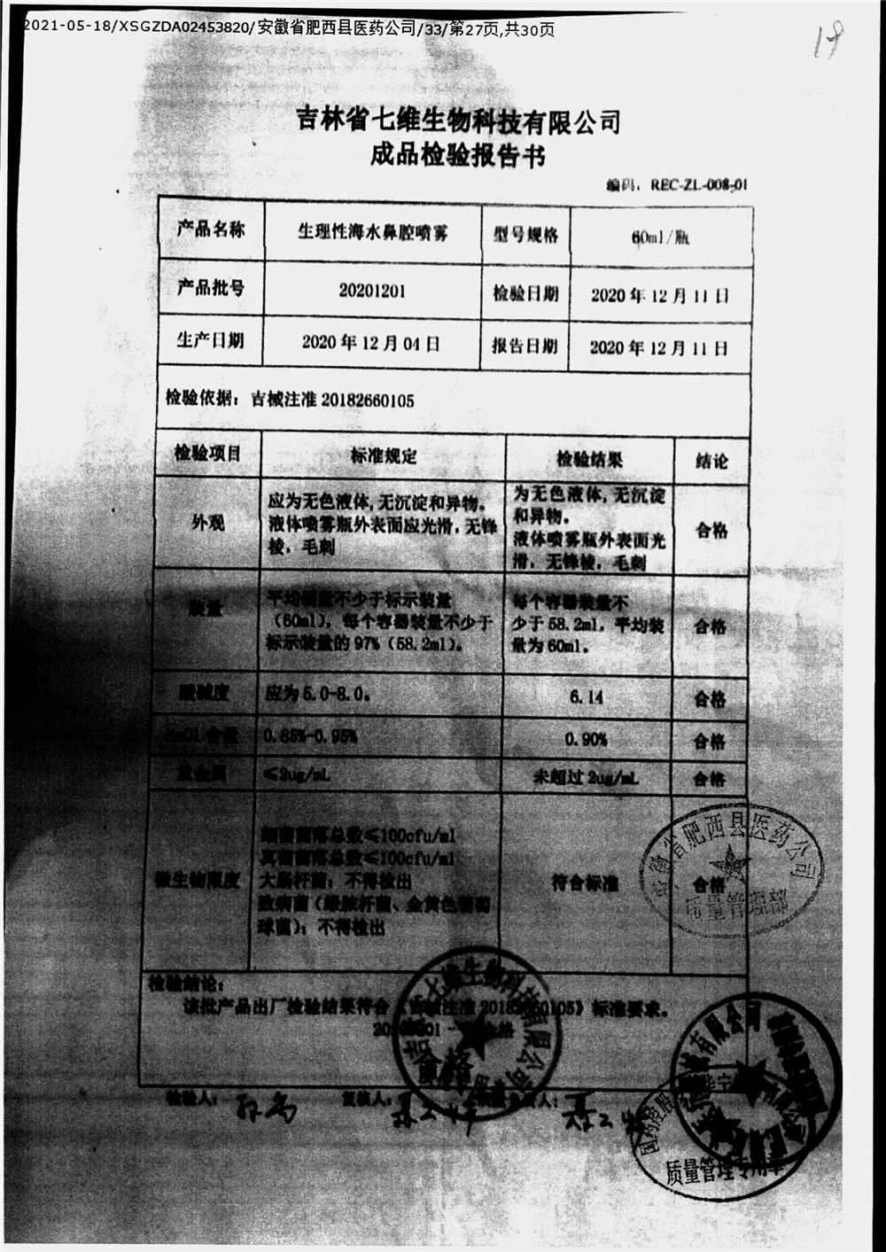 药检报告
