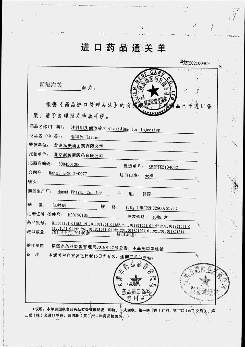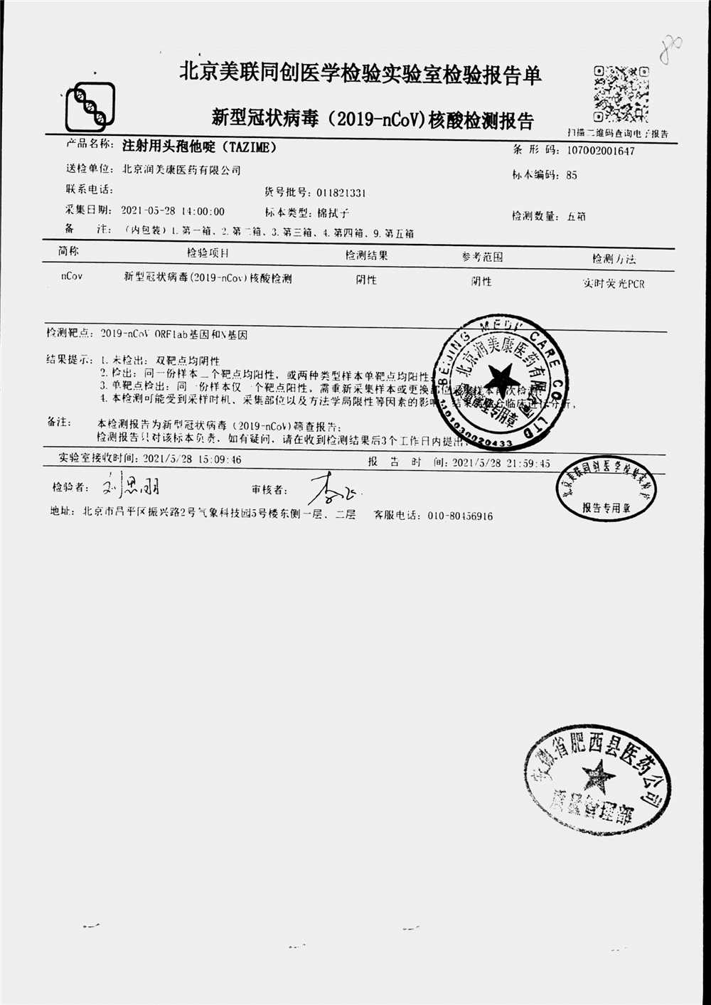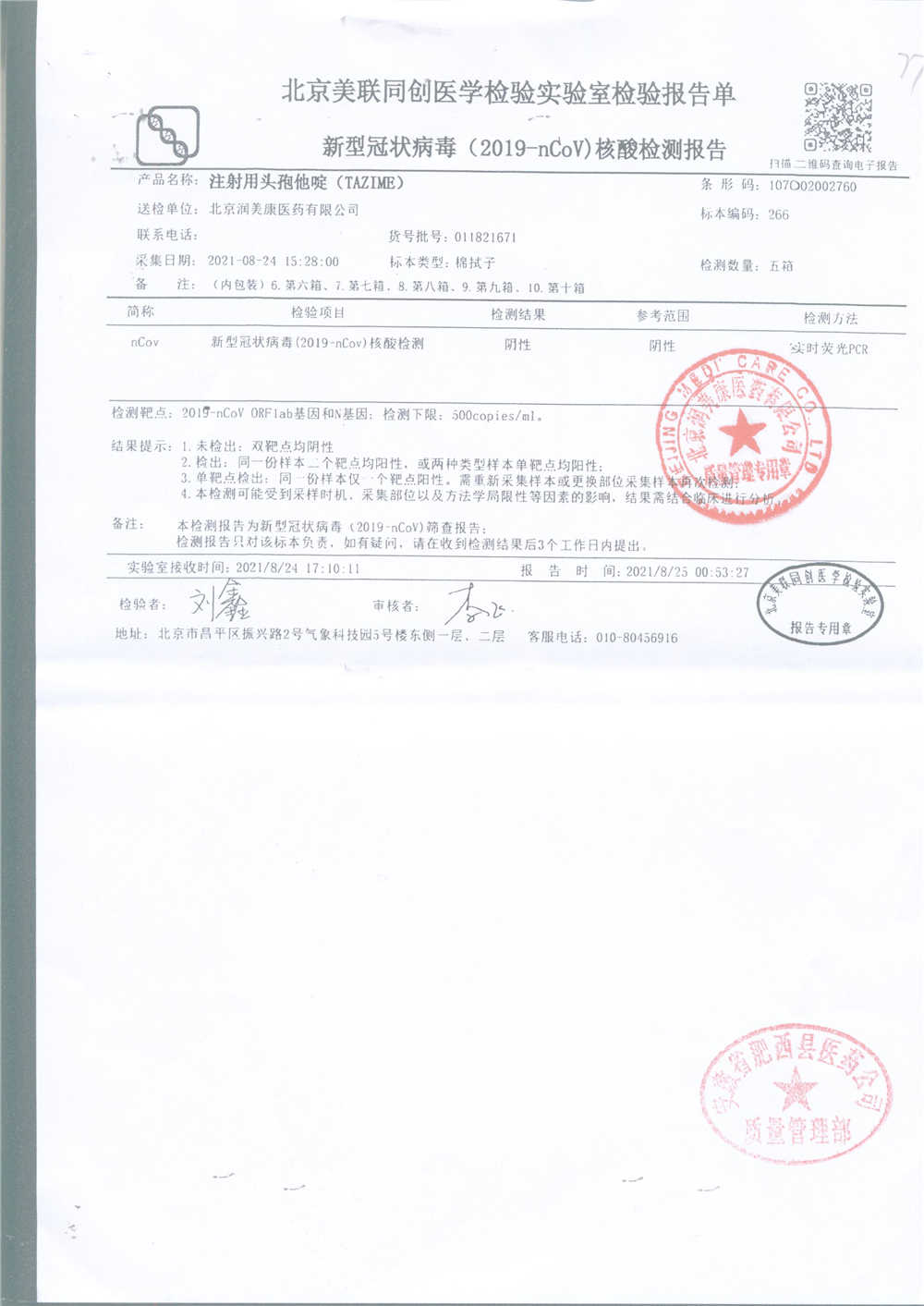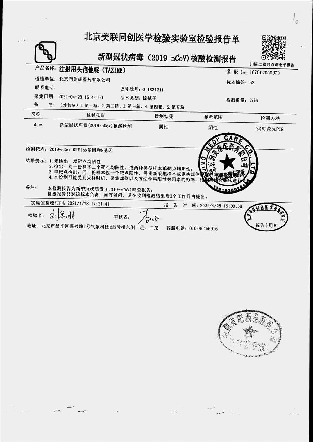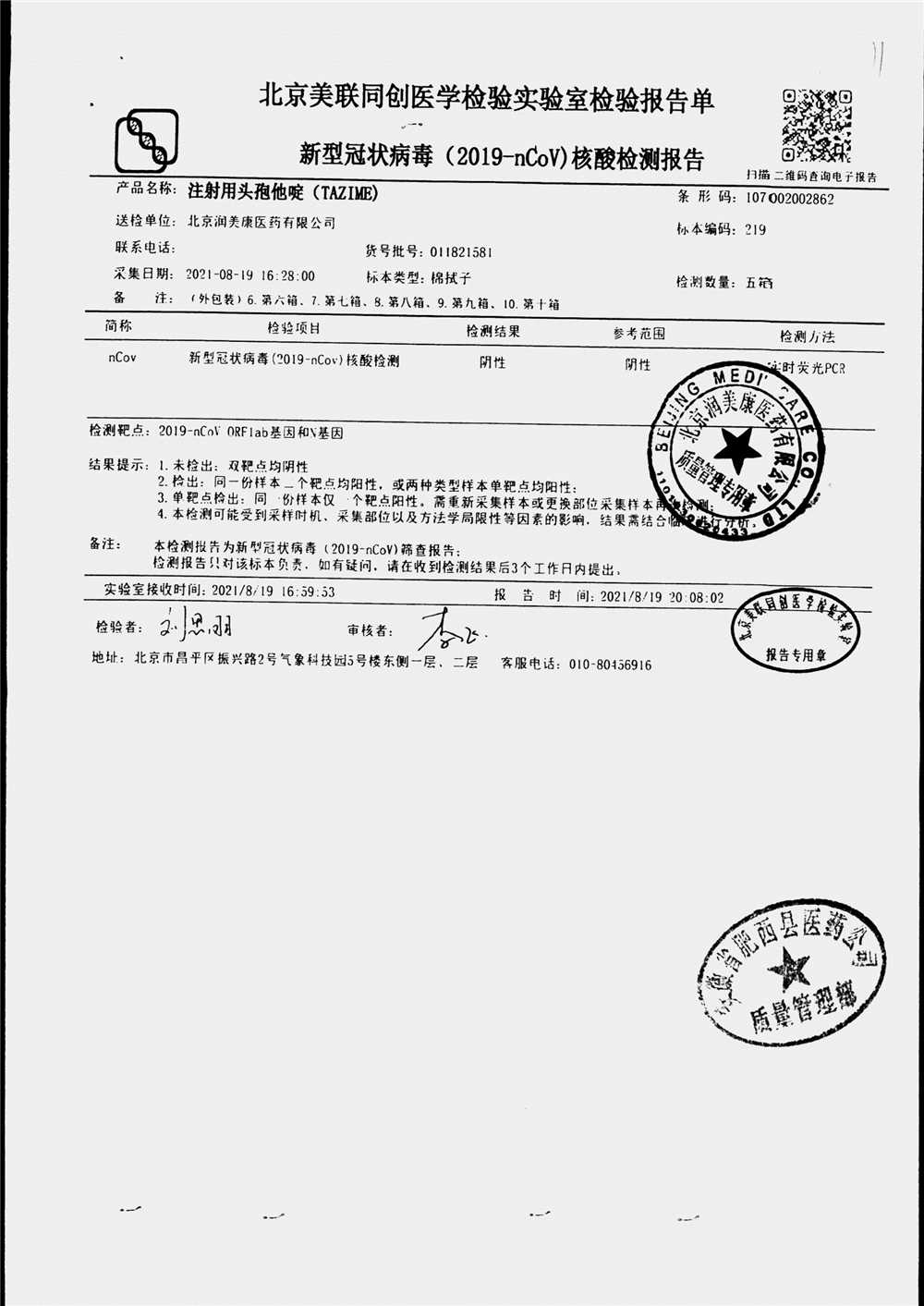 | 注射用头孢他啶 | 1.0g*10瓶 | 011821211(4/5) | 查看详情 |