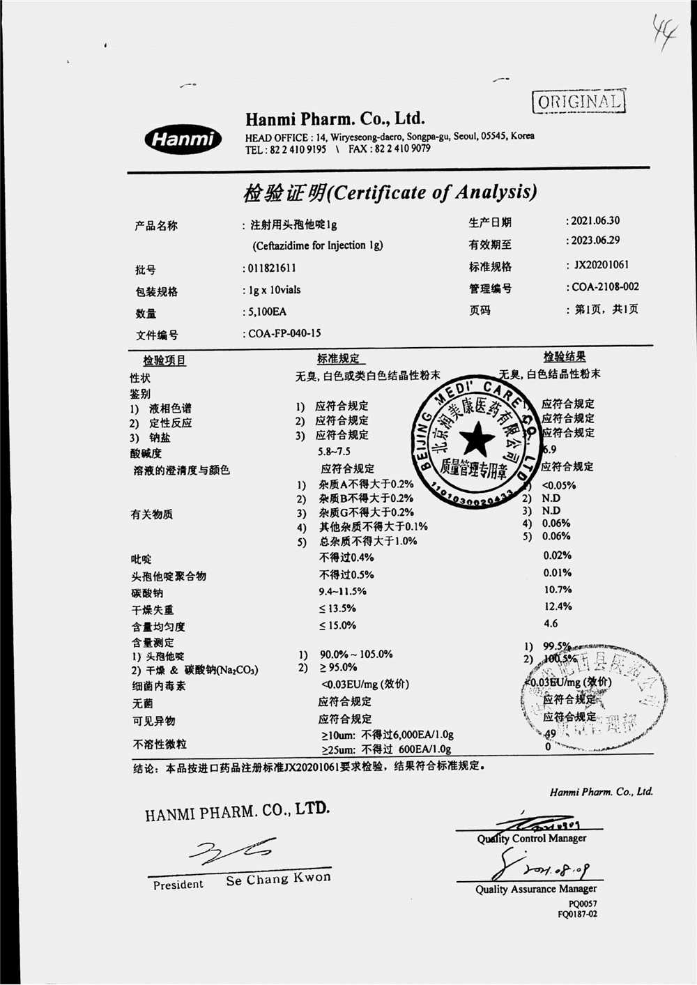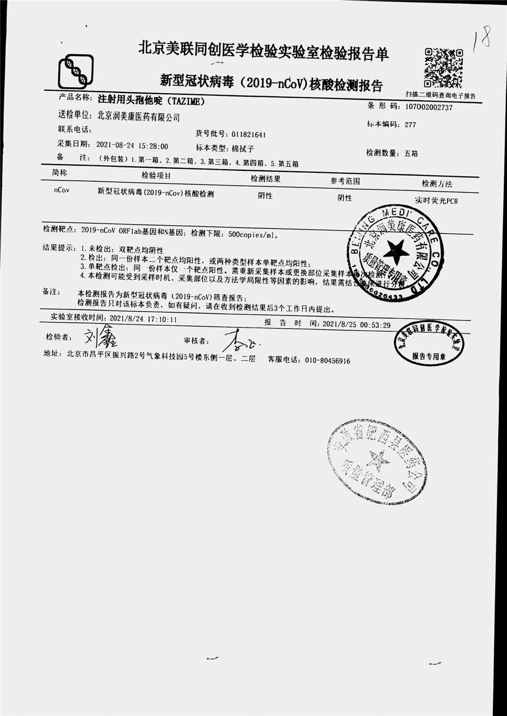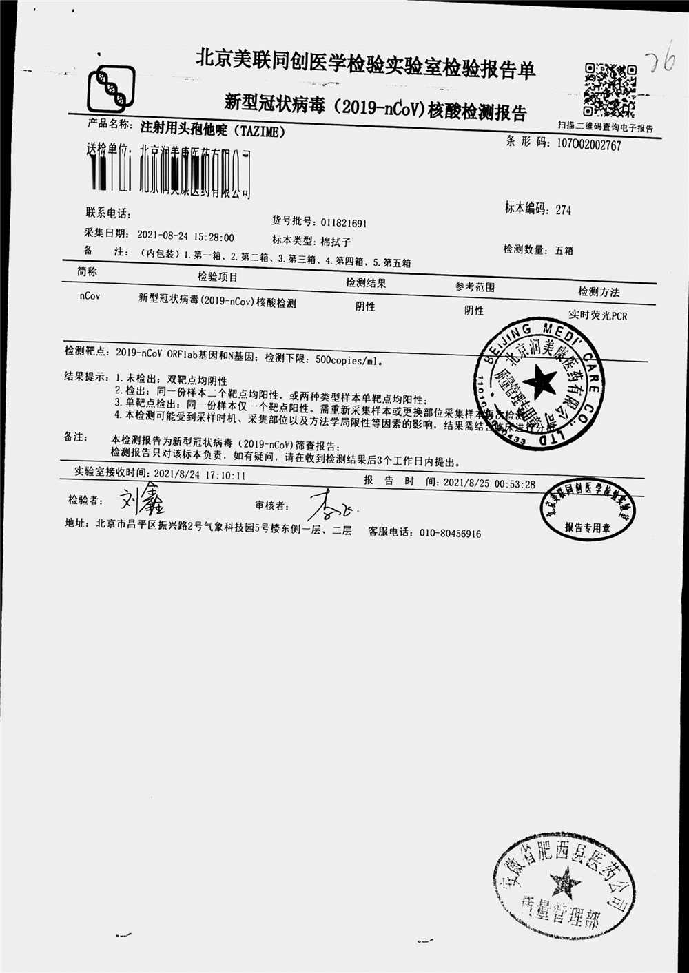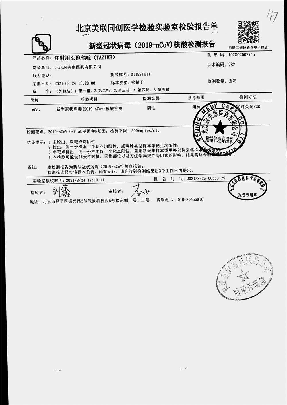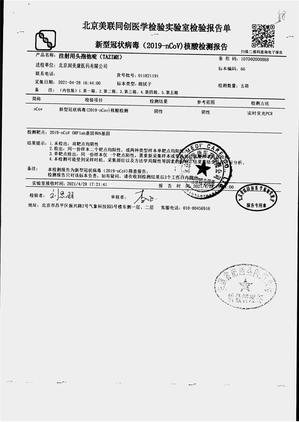 | 注射用头孢他啶 | 1.0g*10瓶 | 011821211(4/5) | 查看详情 |