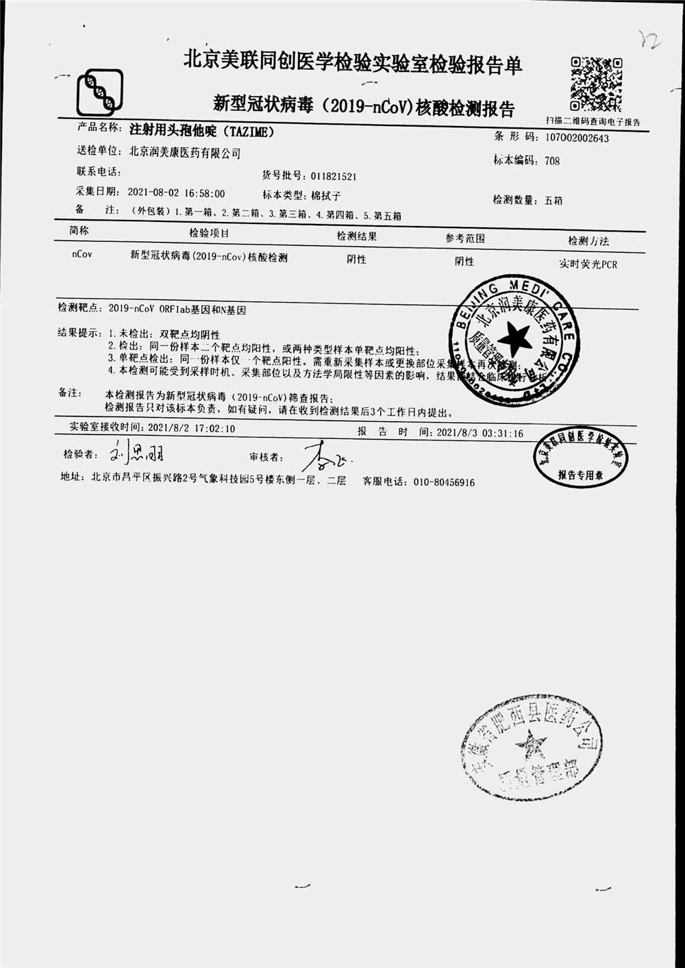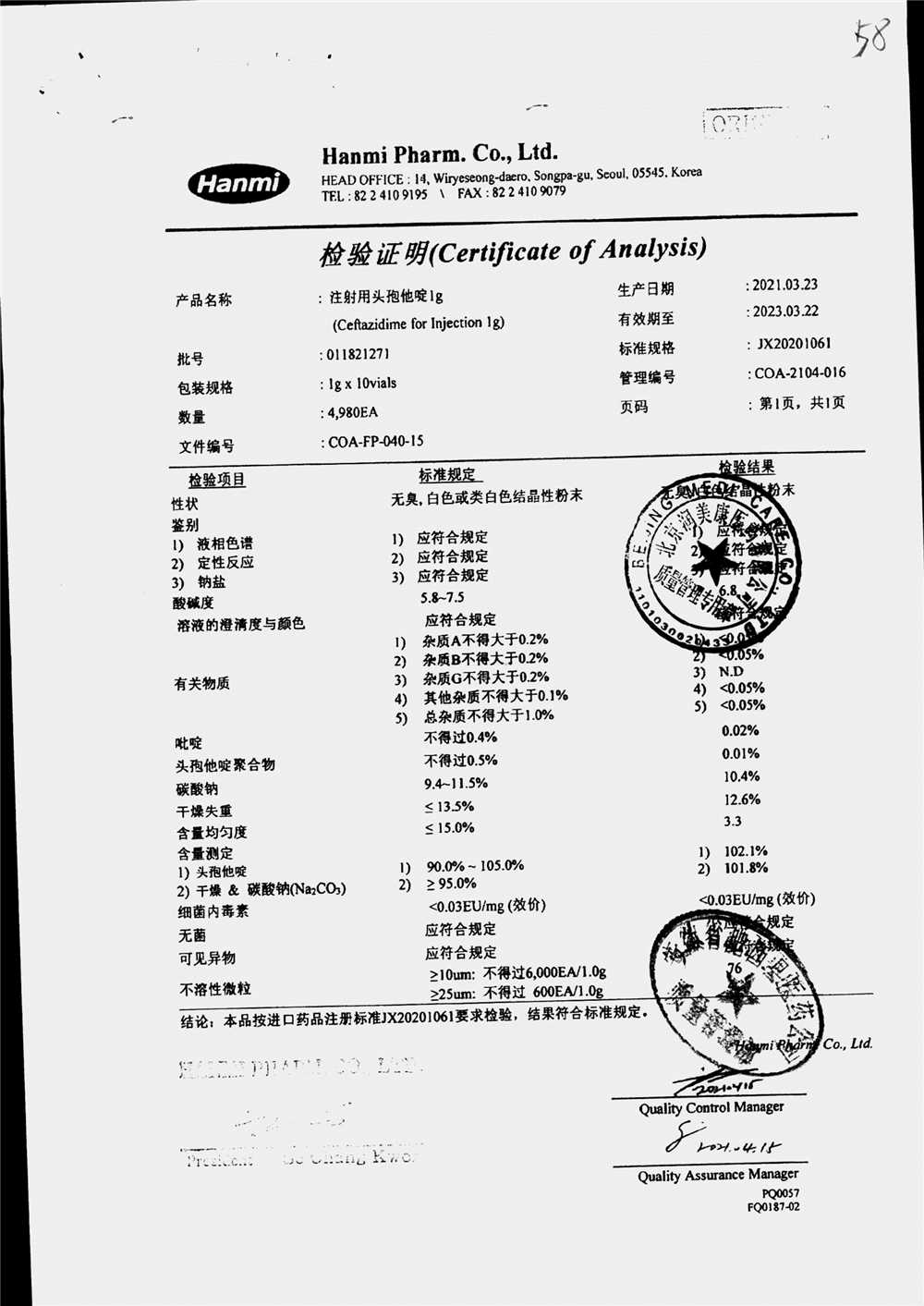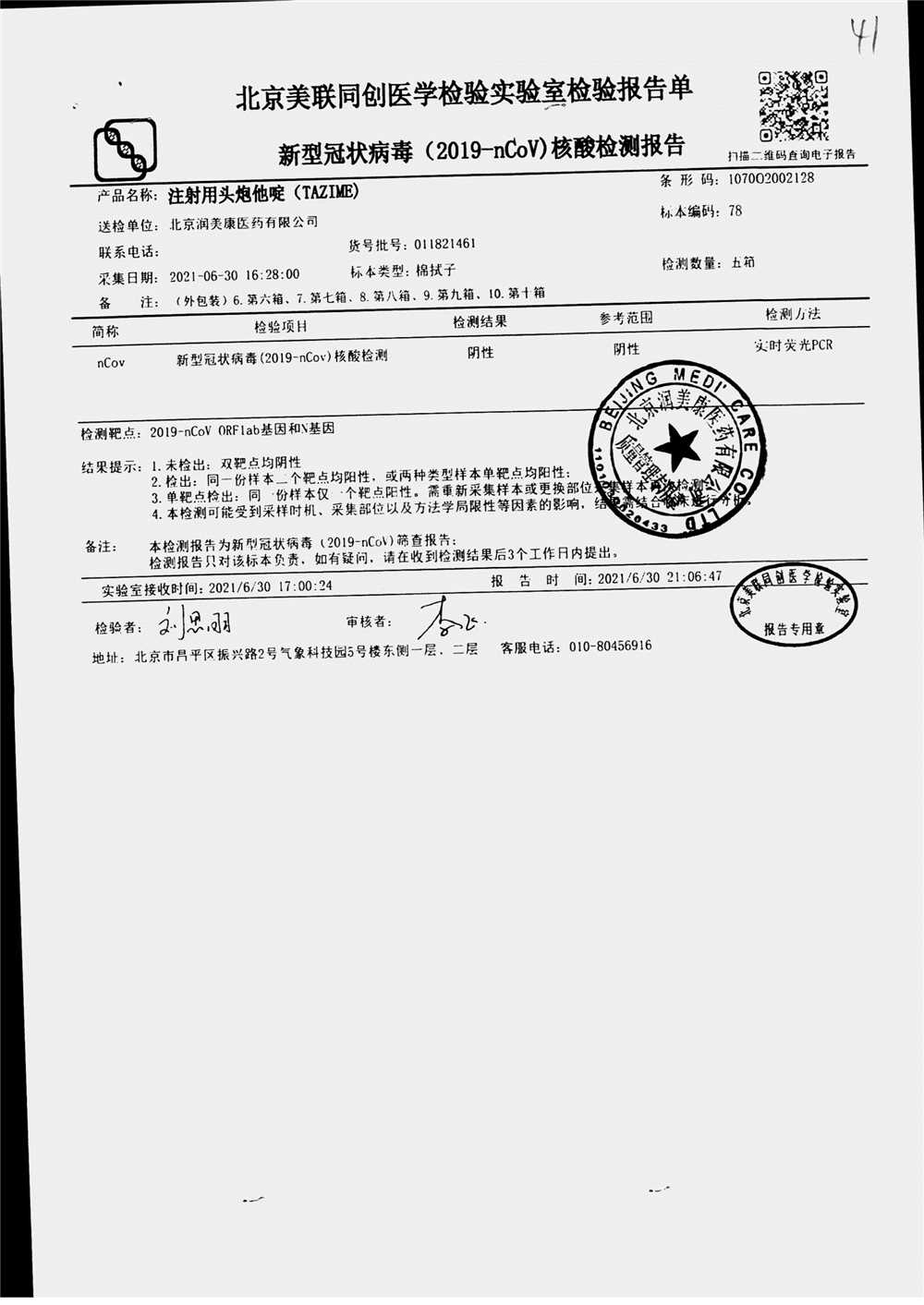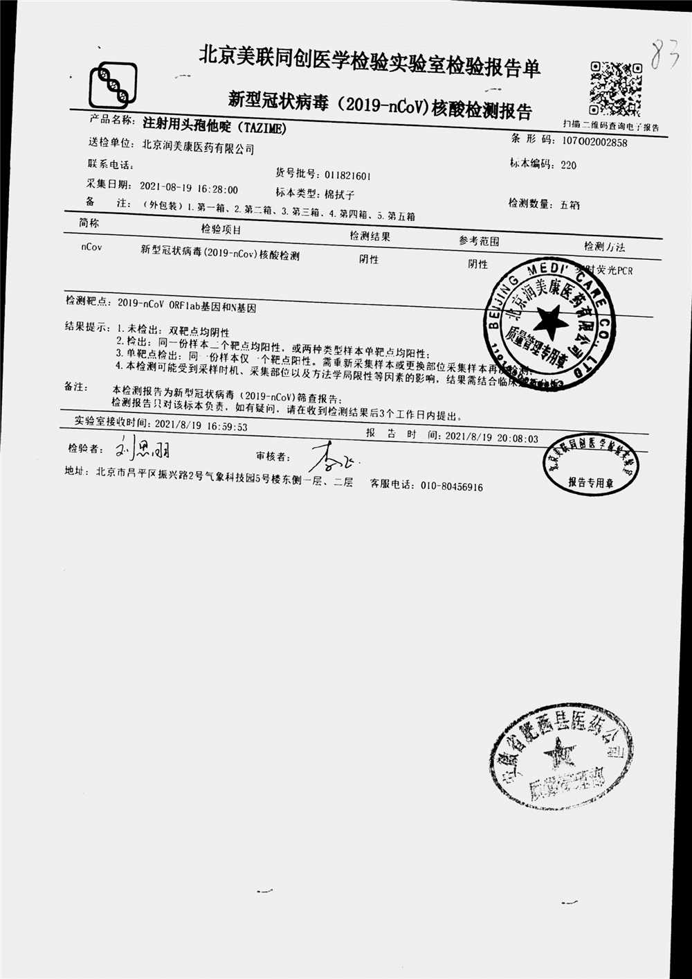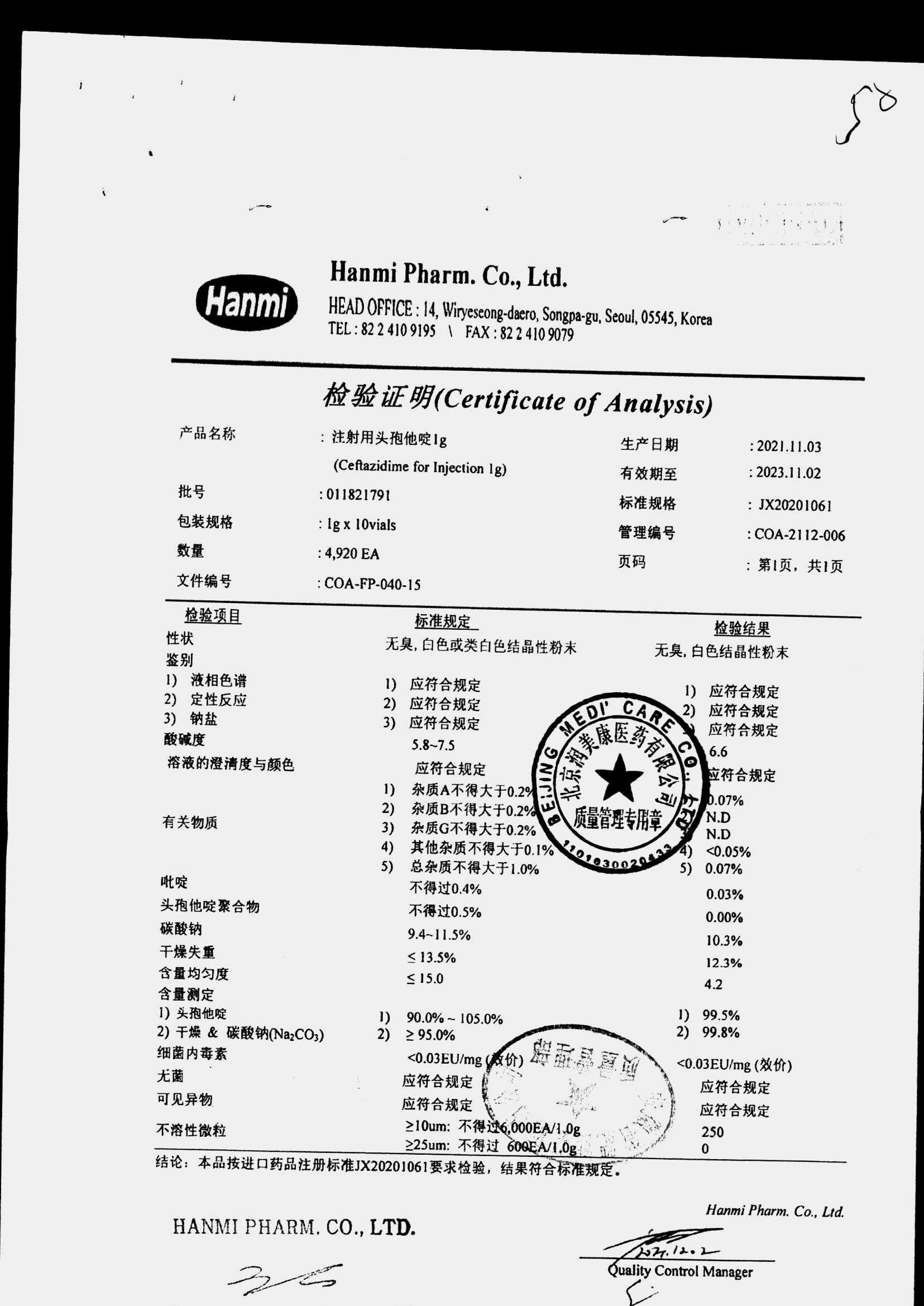 | 注射用头孢他啶 | 1.0g*10瓶 | 011821211(4/5) | 查看详情 |