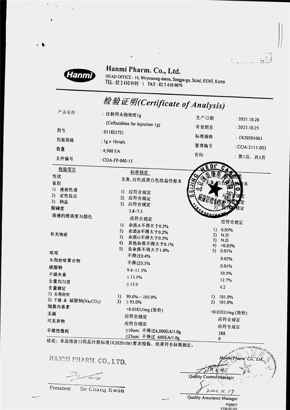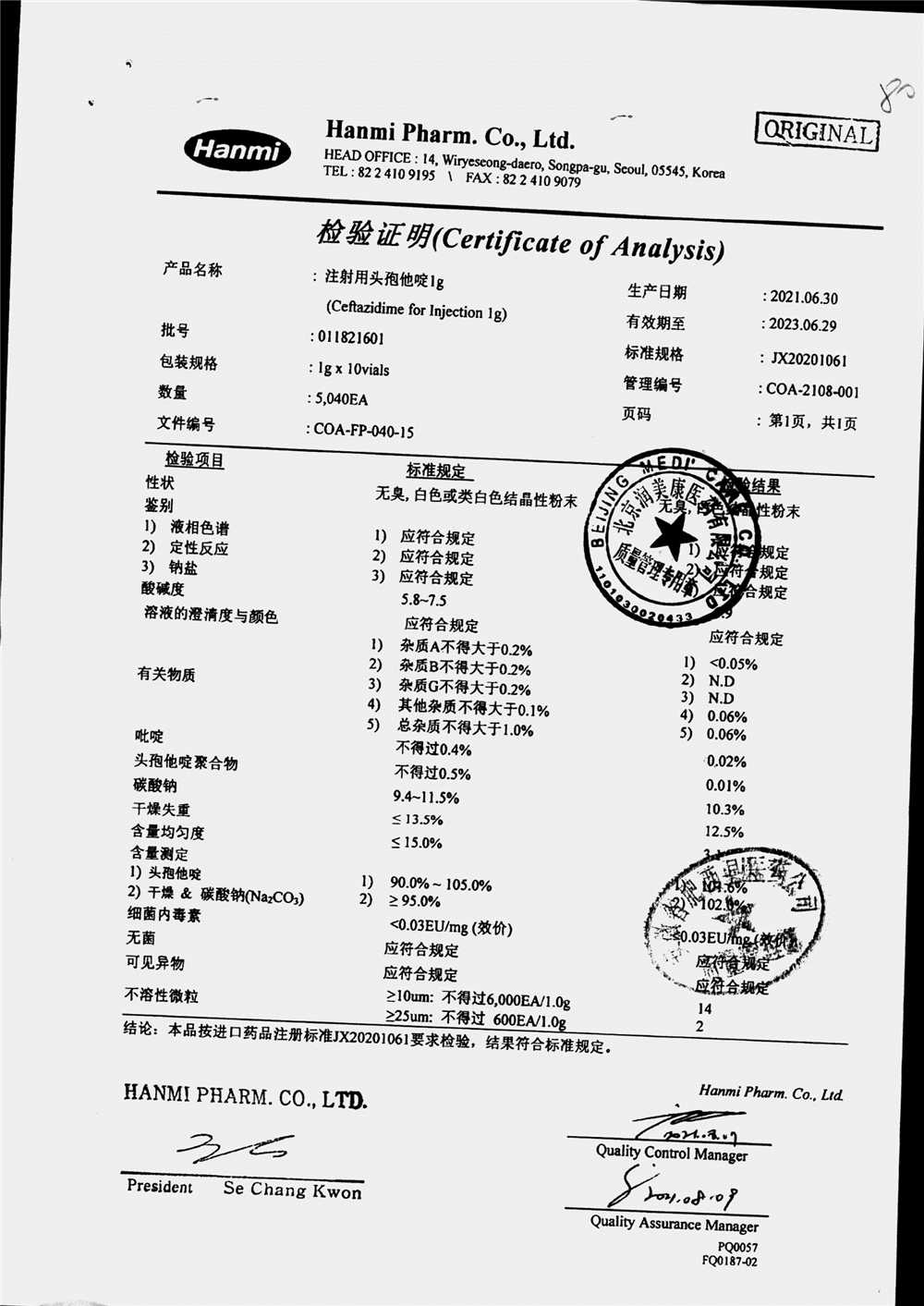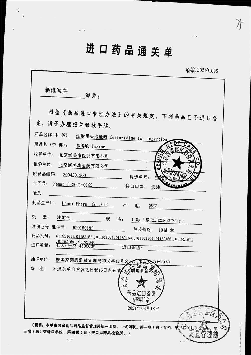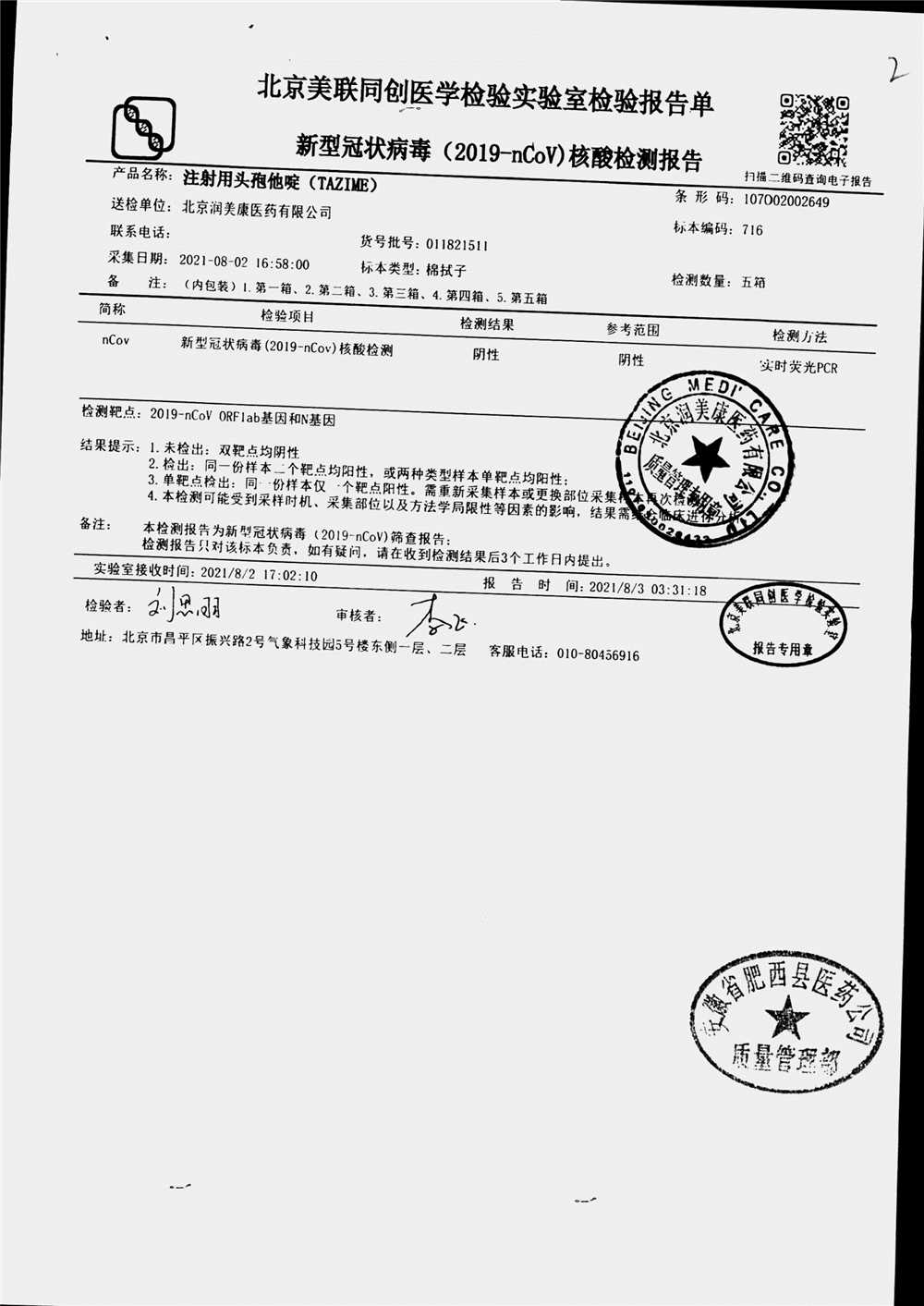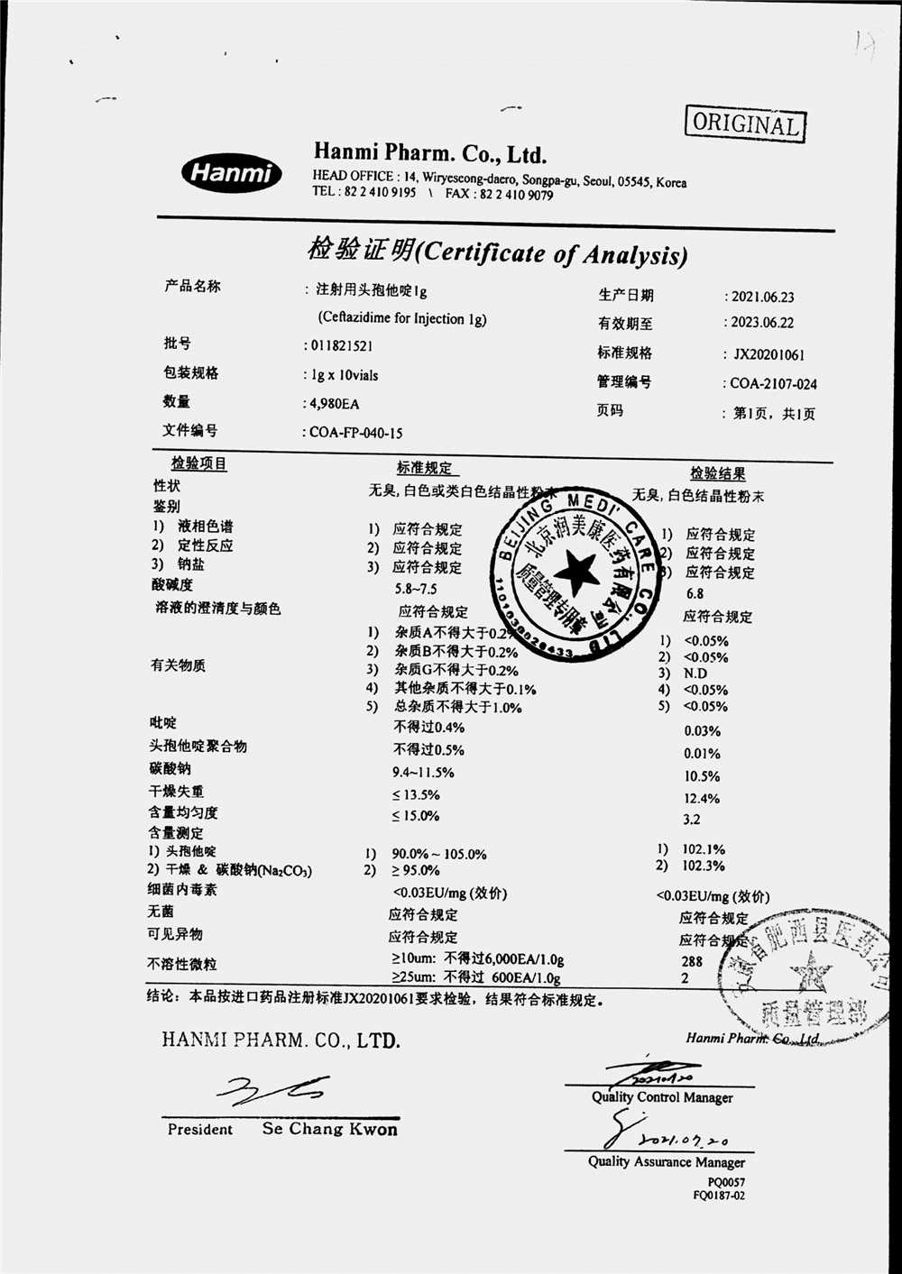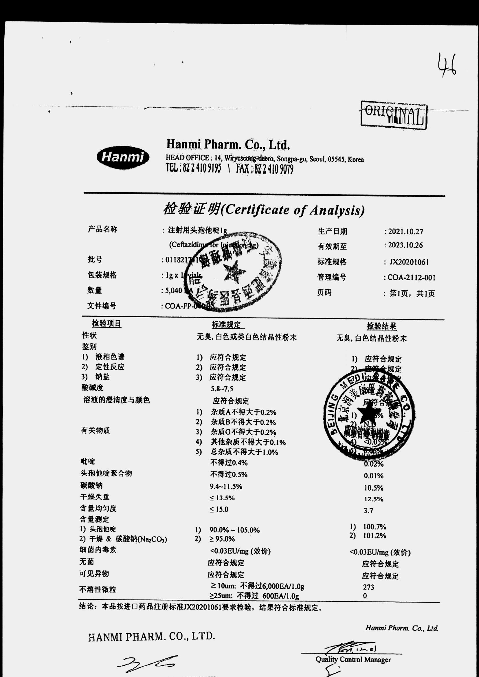 | 注射用头孢他啶 | 1.0g*10瓶 | 011821211(4/5) | 查看详情 |