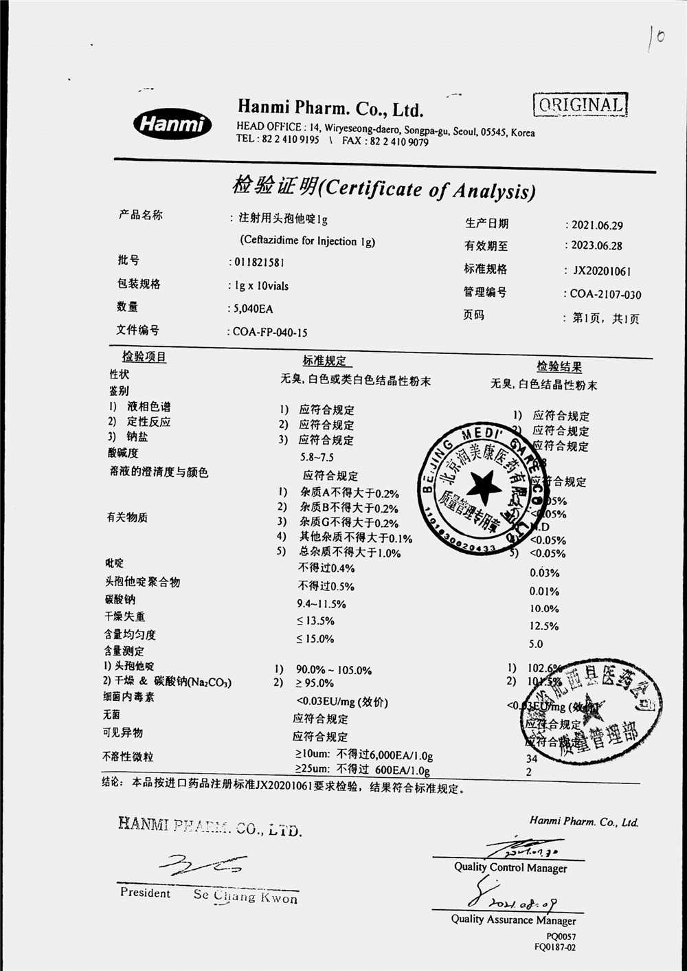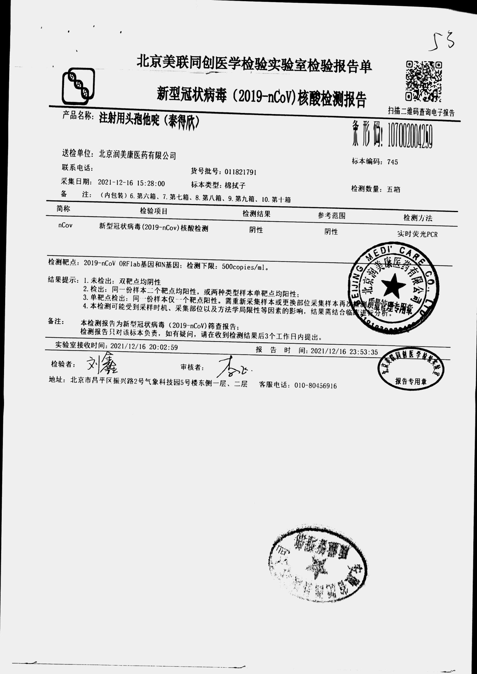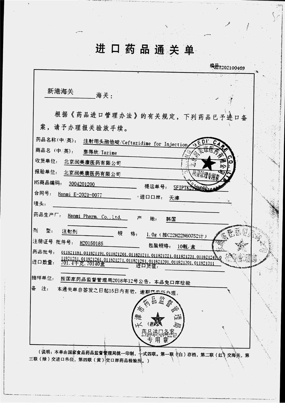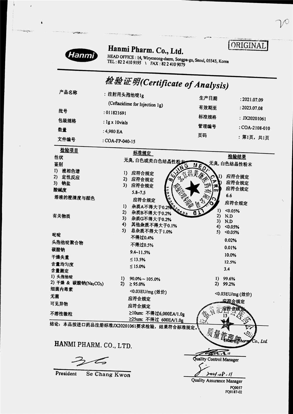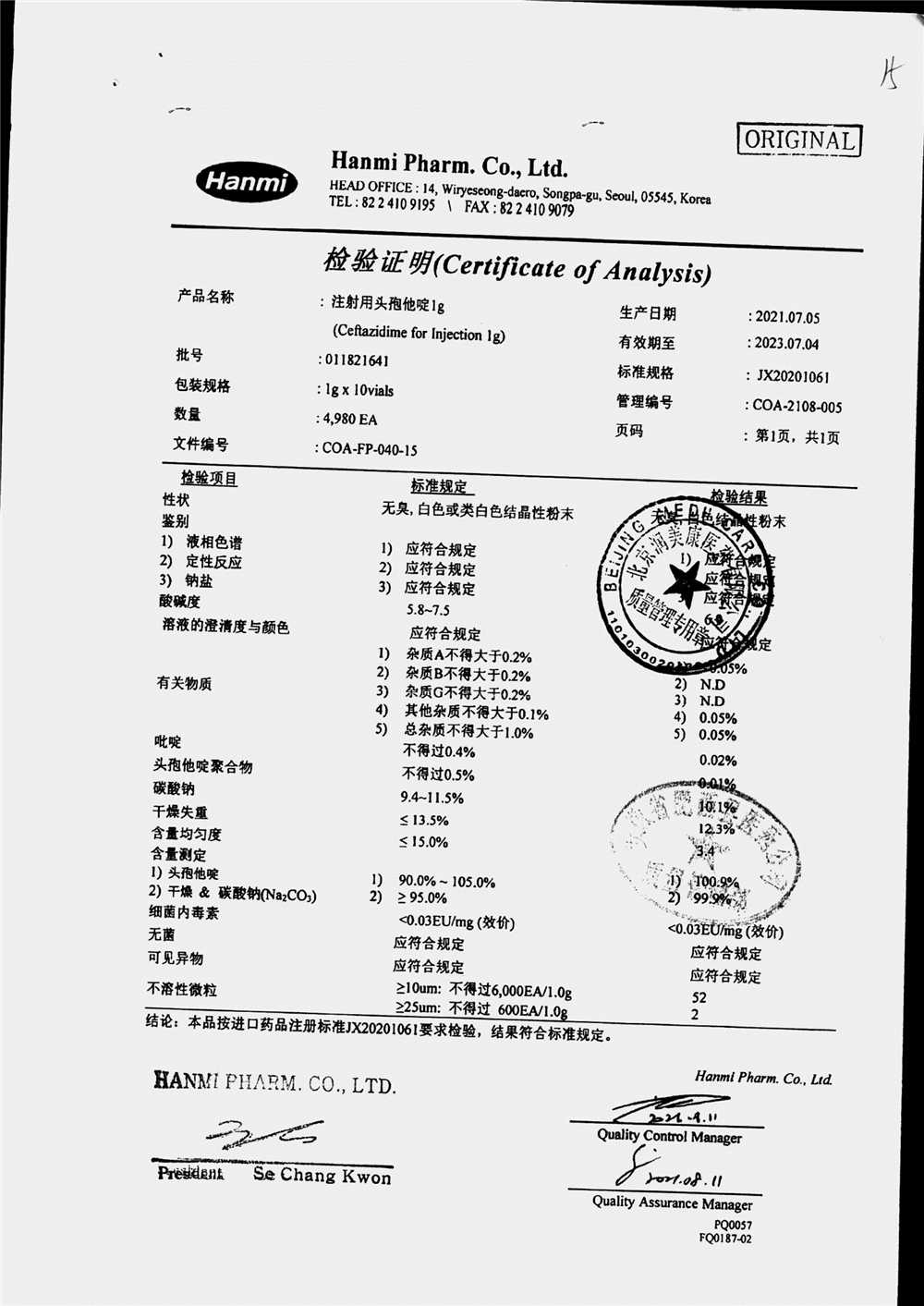 | 注射用头孢他啶 | 1.0g*10瓶 | 011821211(4/5) | 查看详情 |