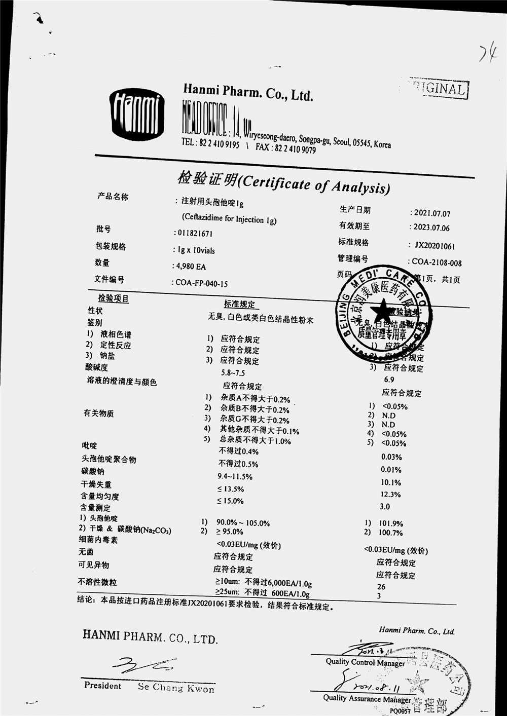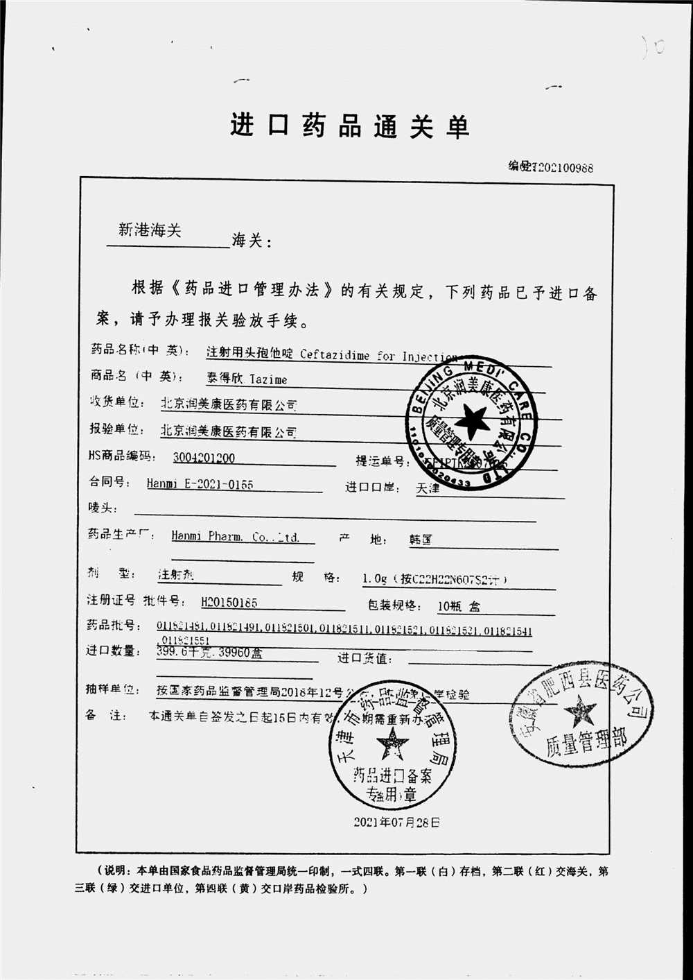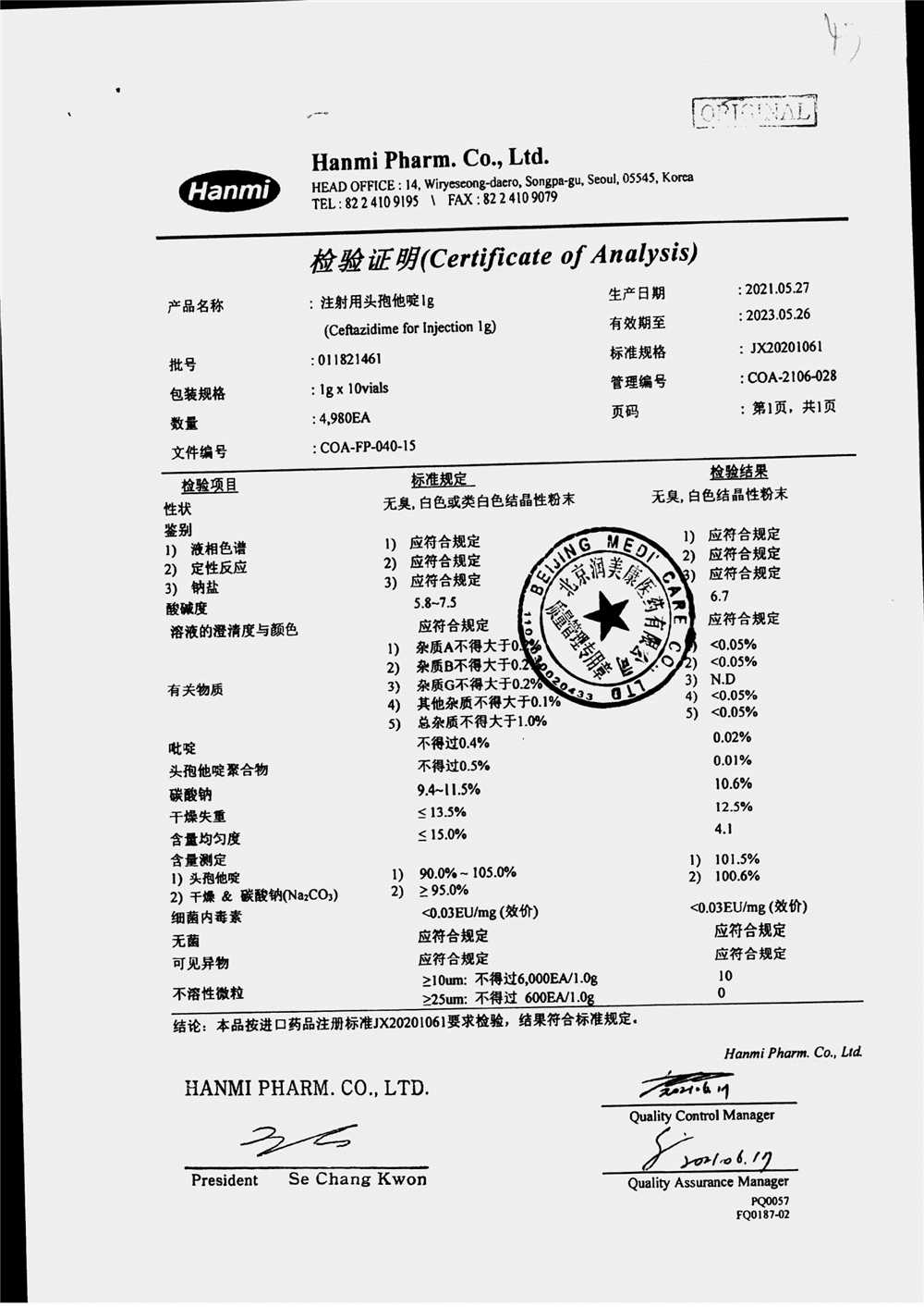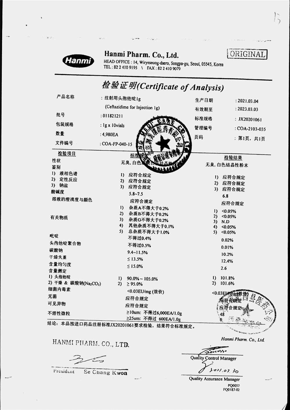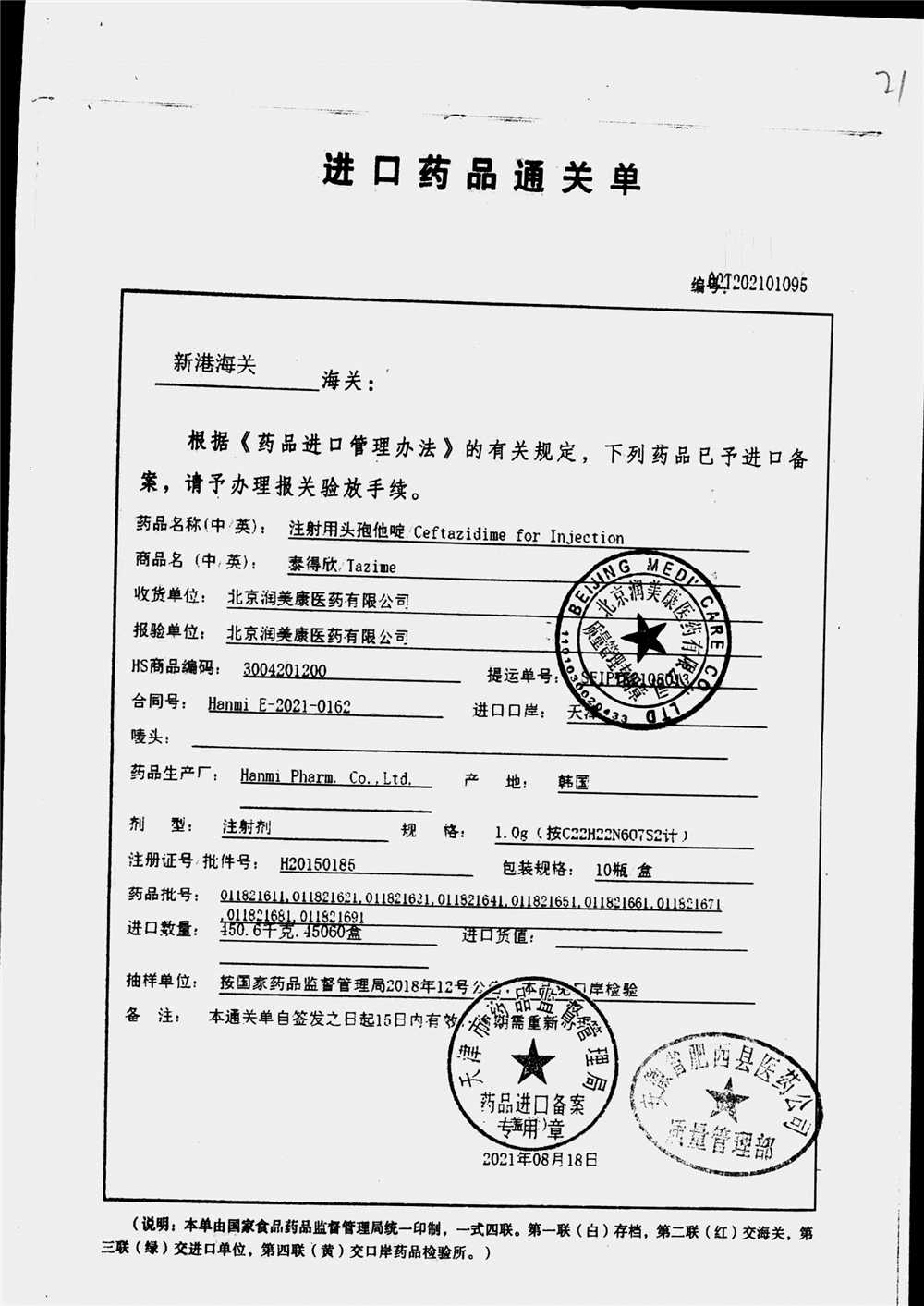 | 注射用头孢他啶 | 1.0g*10瓶 | 011821211(4/5) | 查看详情 |