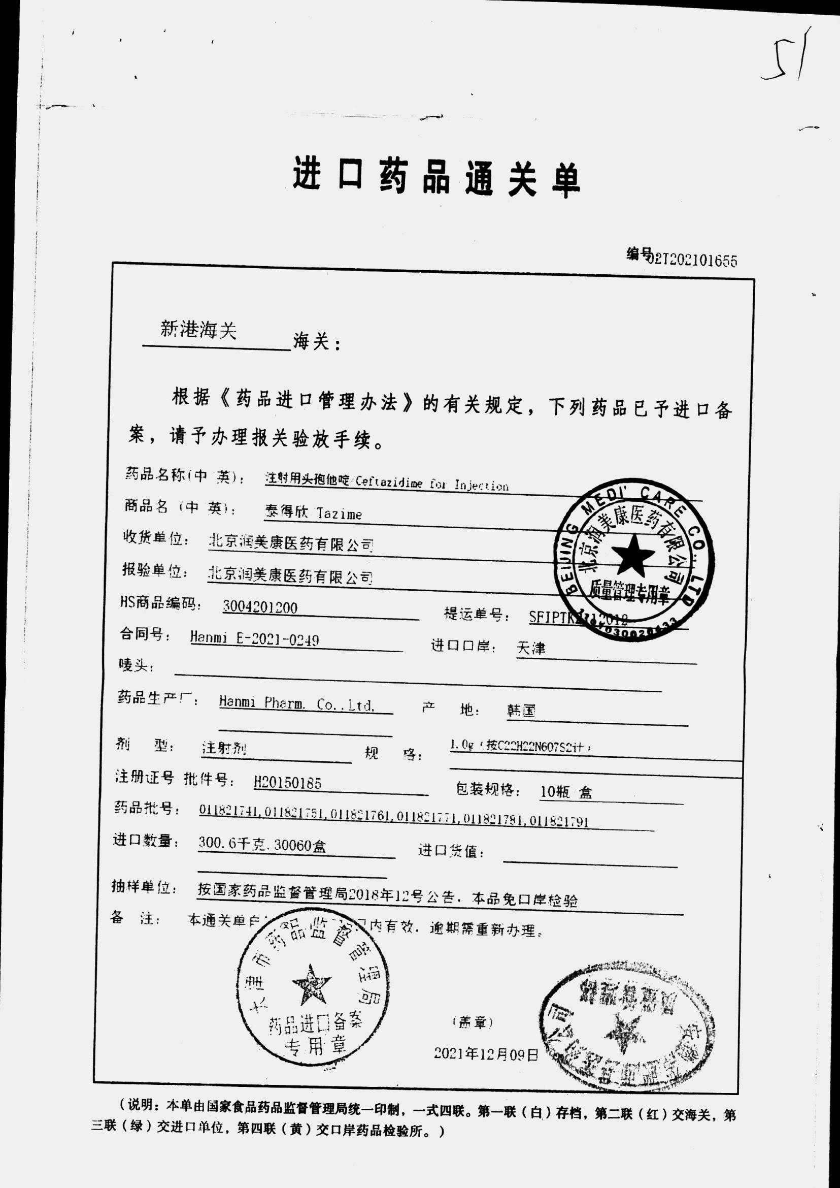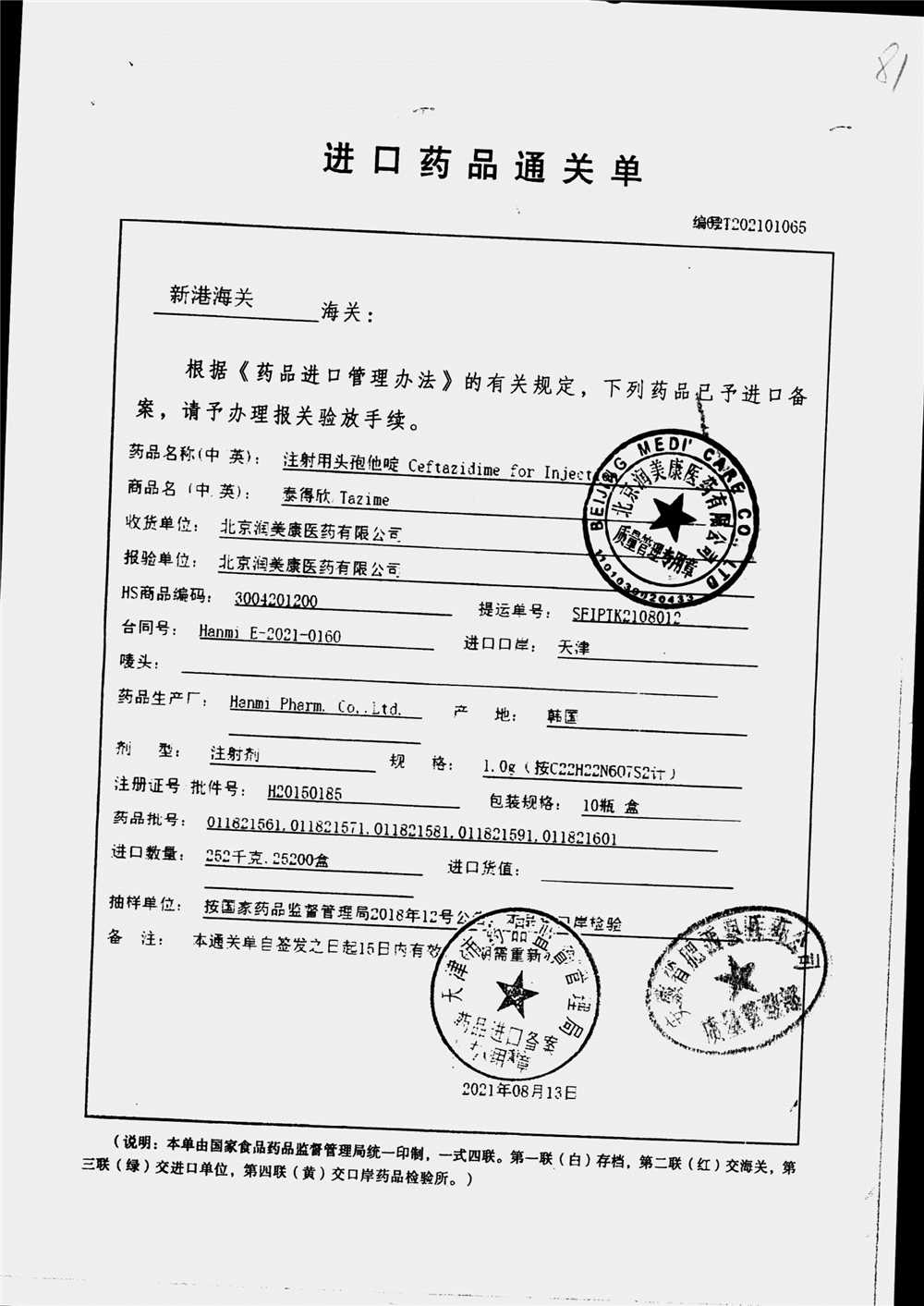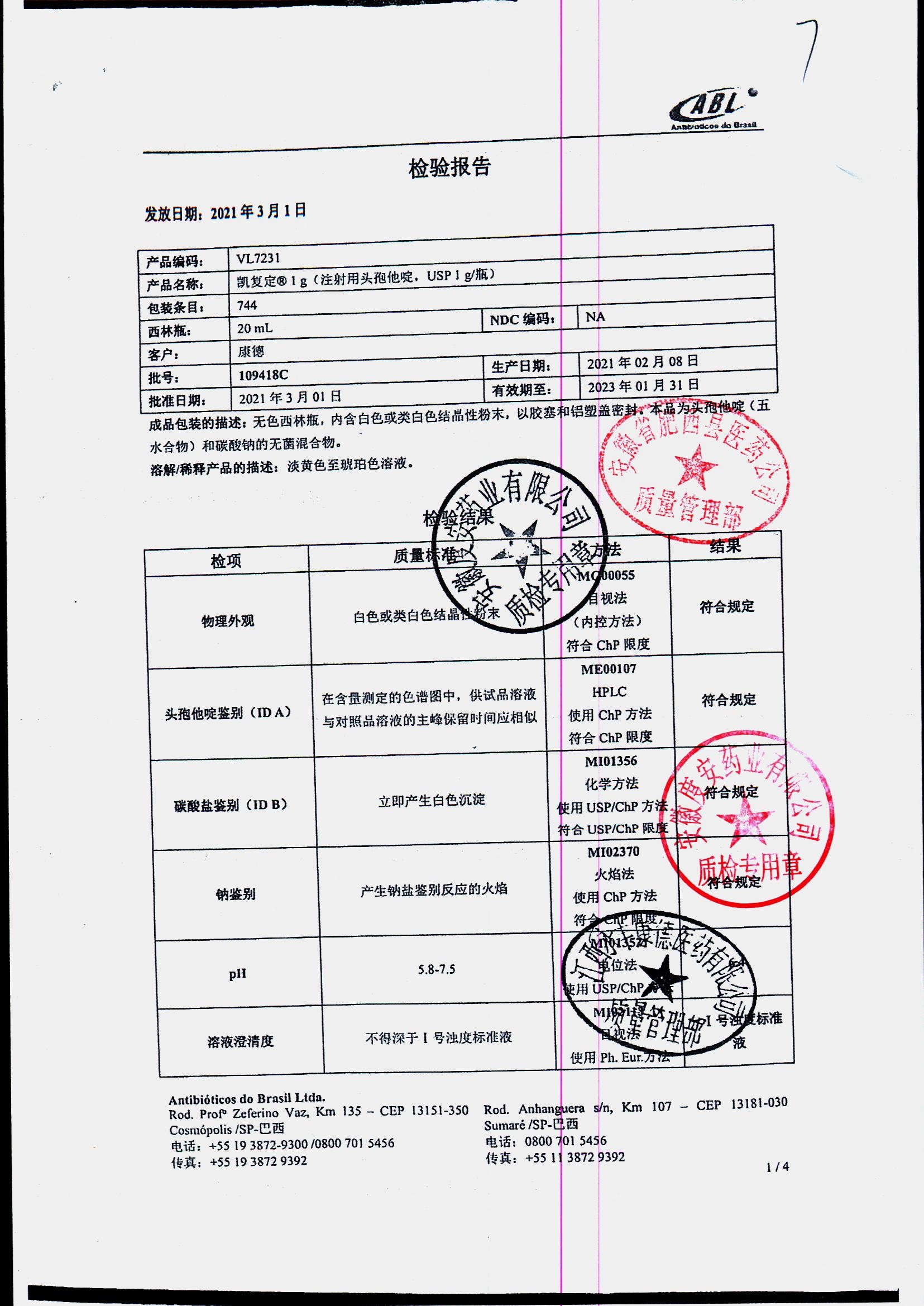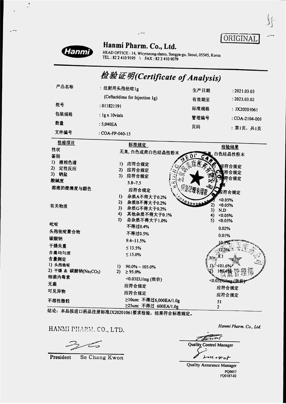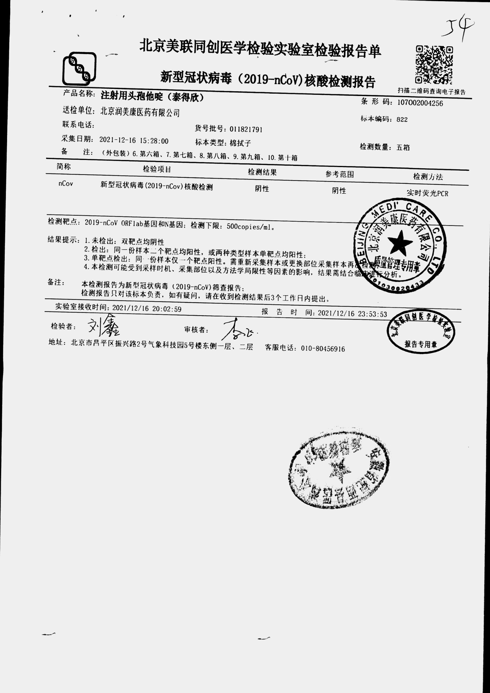 | 注射用头孢他啶 | 1.0g*10瓶 | 011821211(4/5) | 查看详情 |