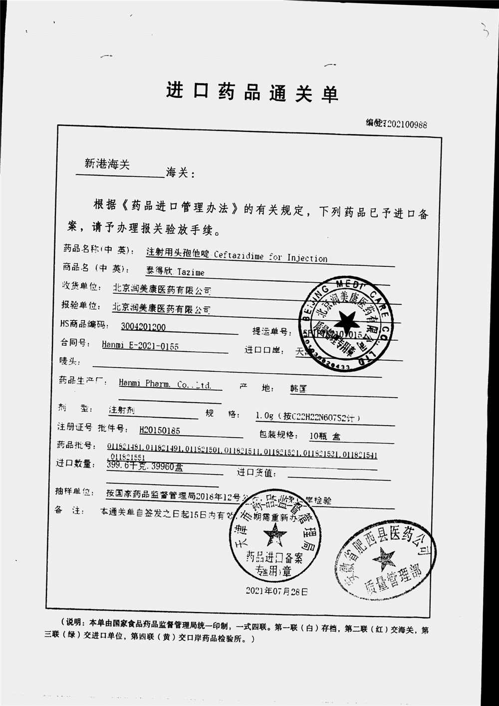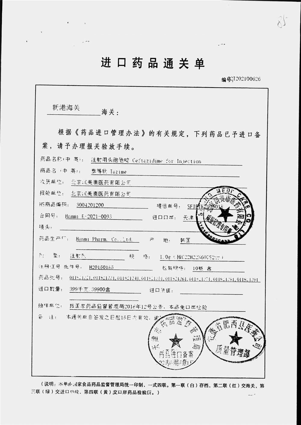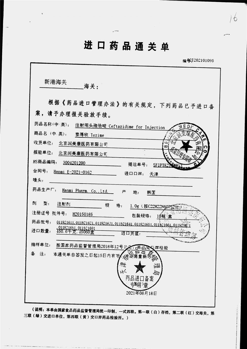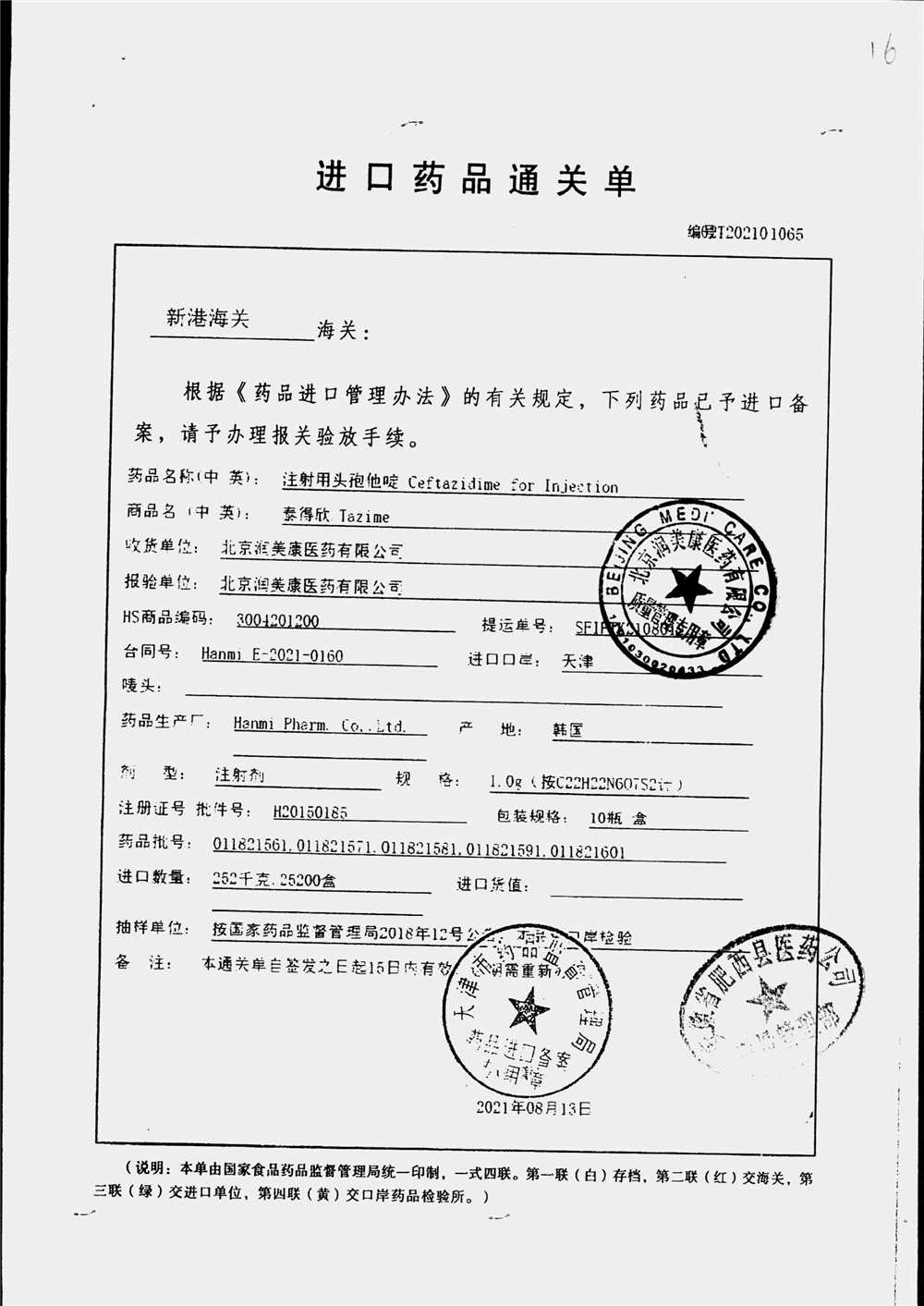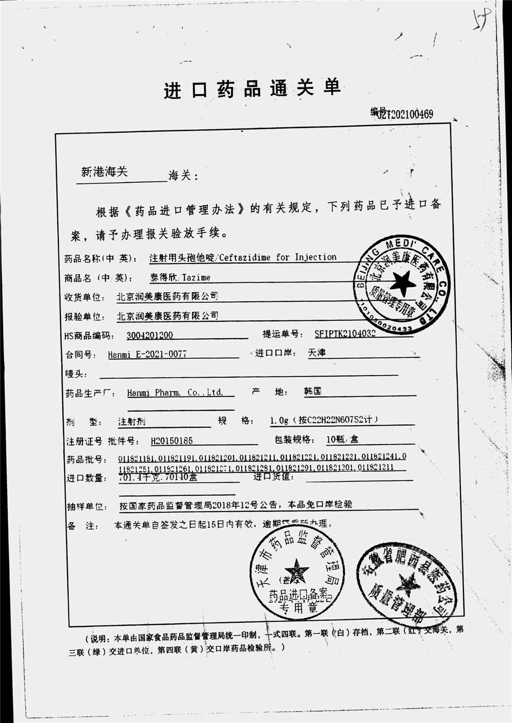 | 注射用头孢他啶 | 1.0g*10瓶 | 011821601(2/5) | 查看详情 |