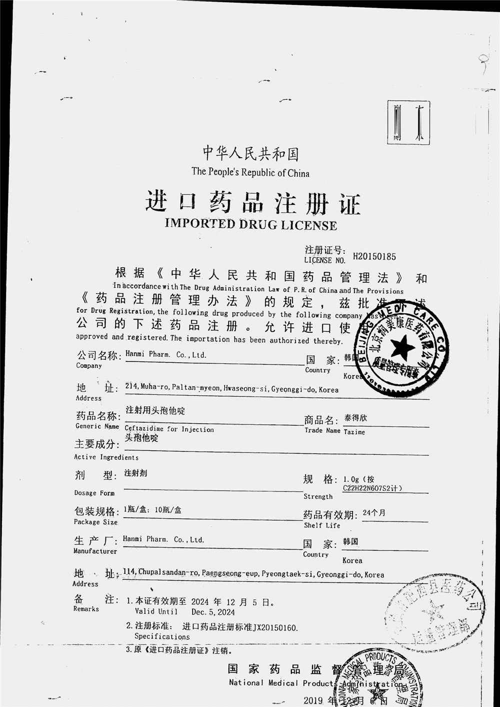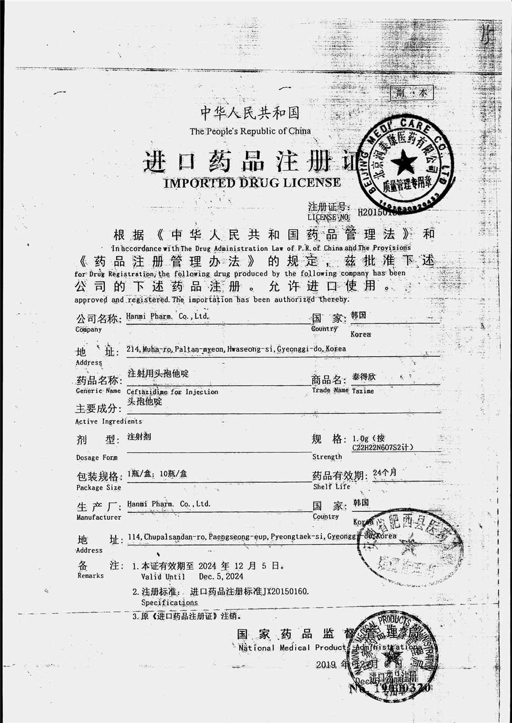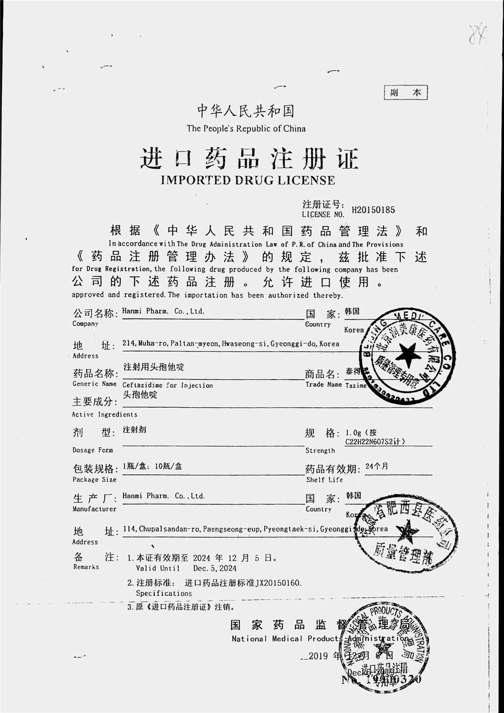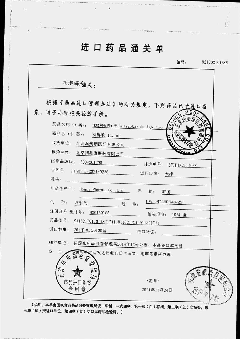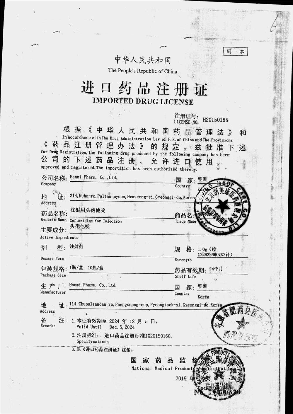 | 注射用头孢他啶 | 1.0g*10瓶 | 011821441(2/5) | 查看详情 |