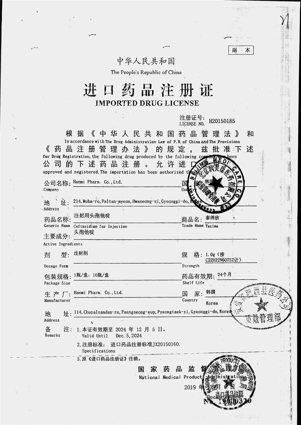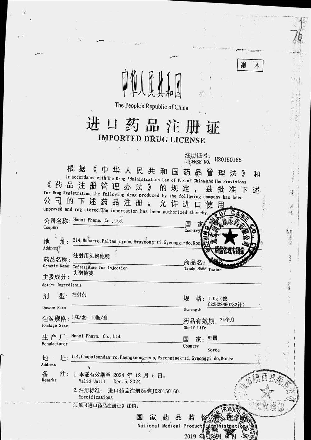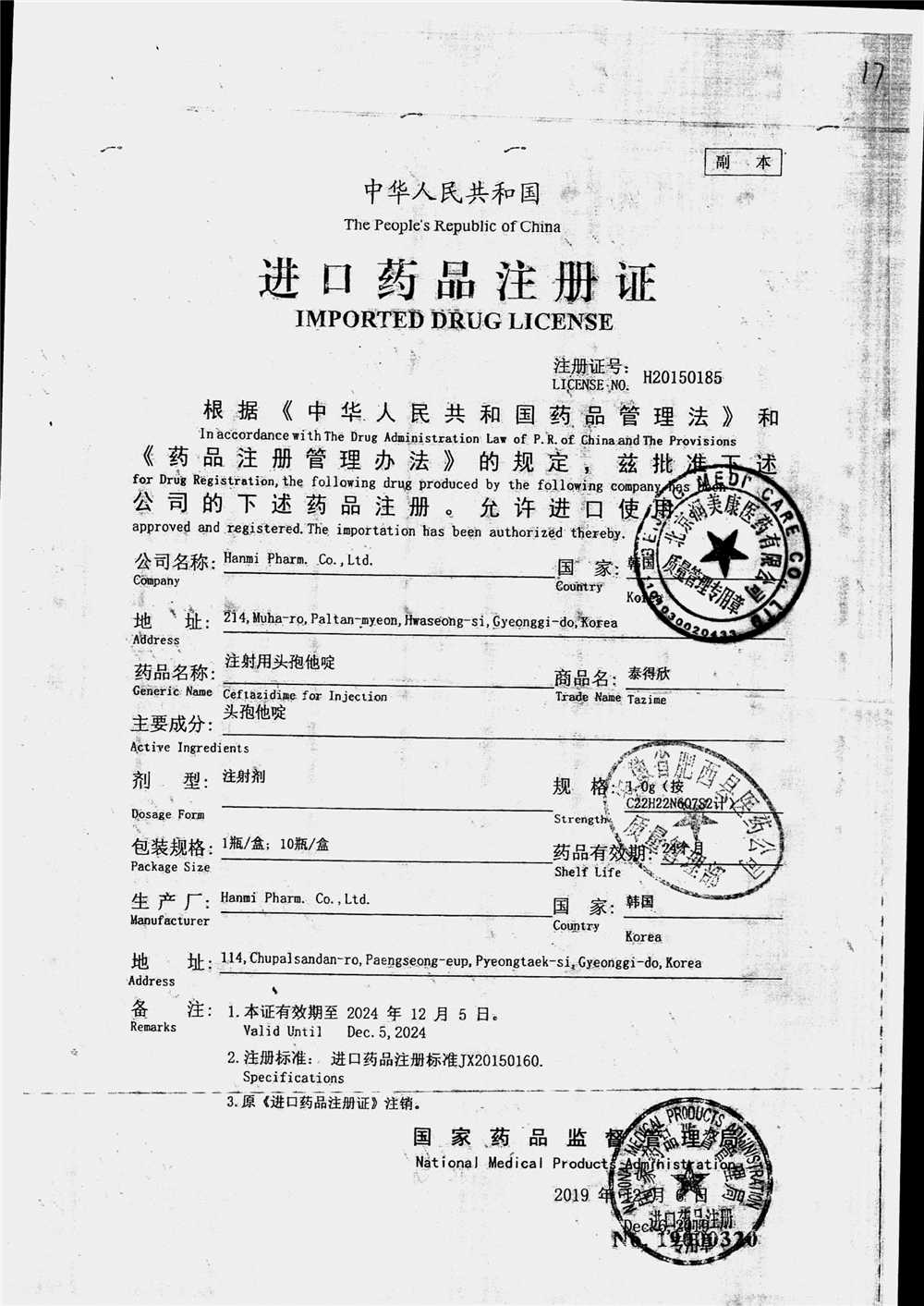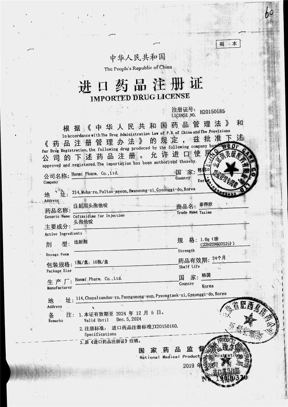 | 注射用头孢他啶 | 1.0g*10瓶 | 011821441(2/5) | 查看详情 |
