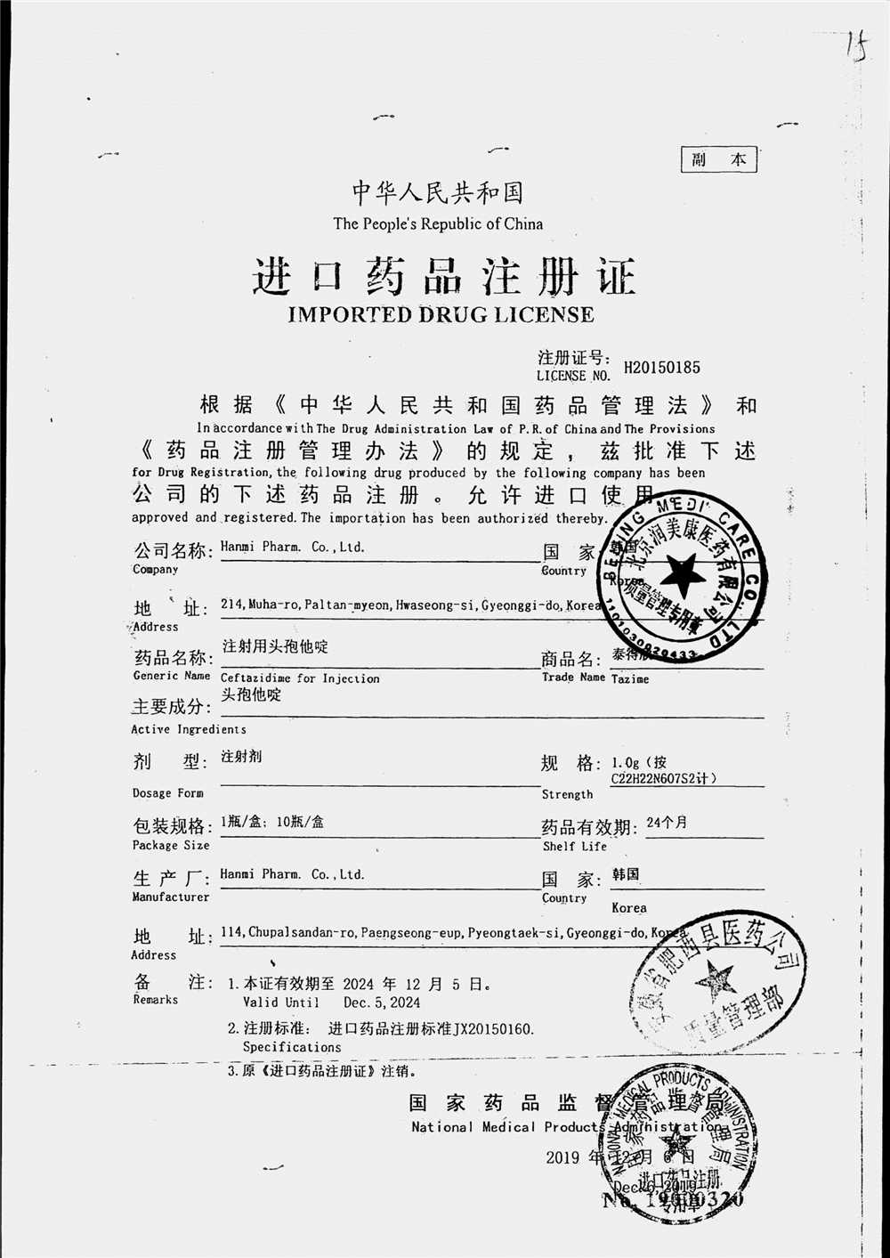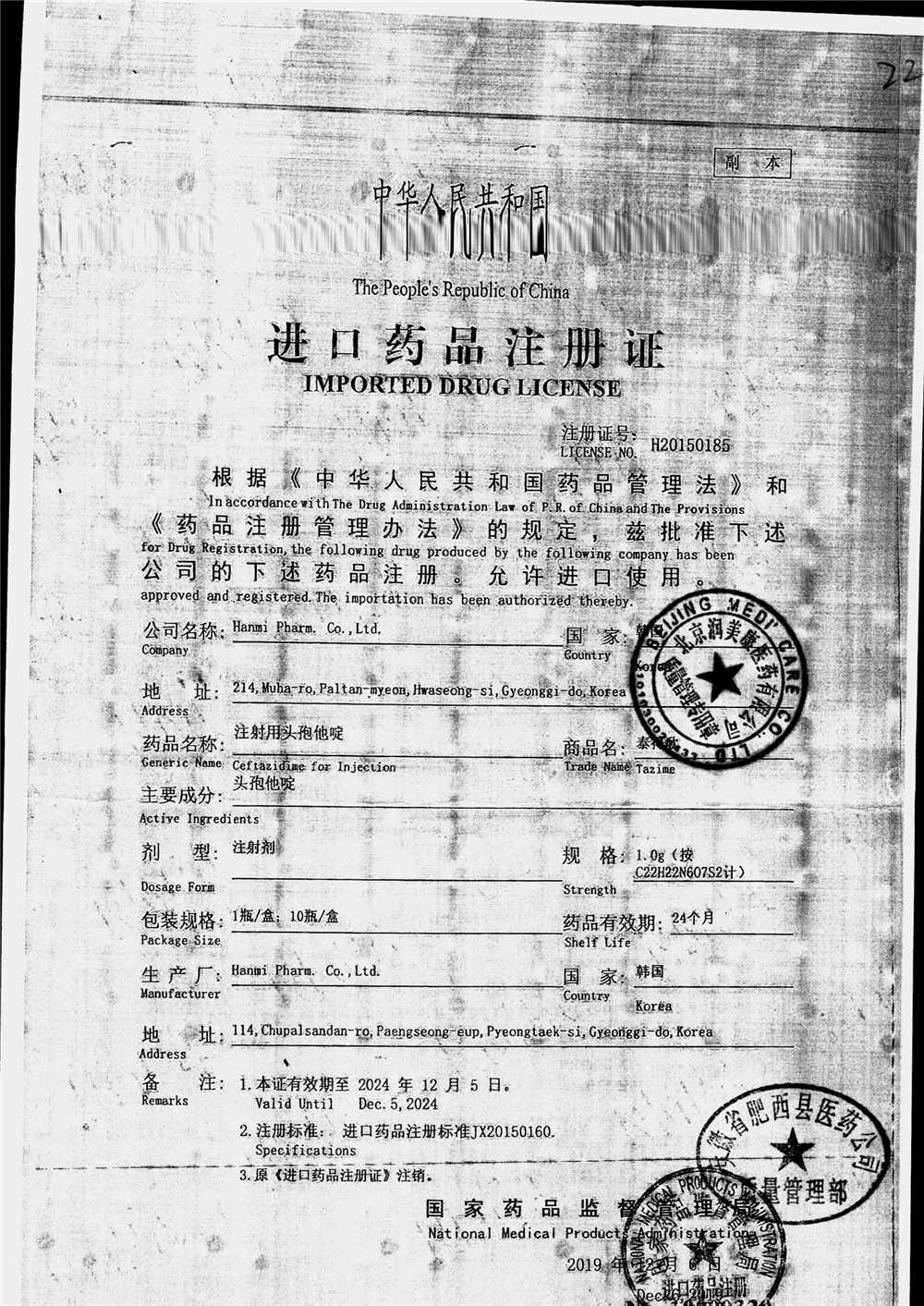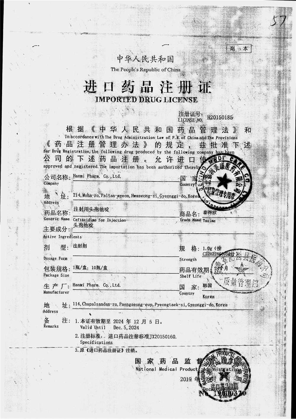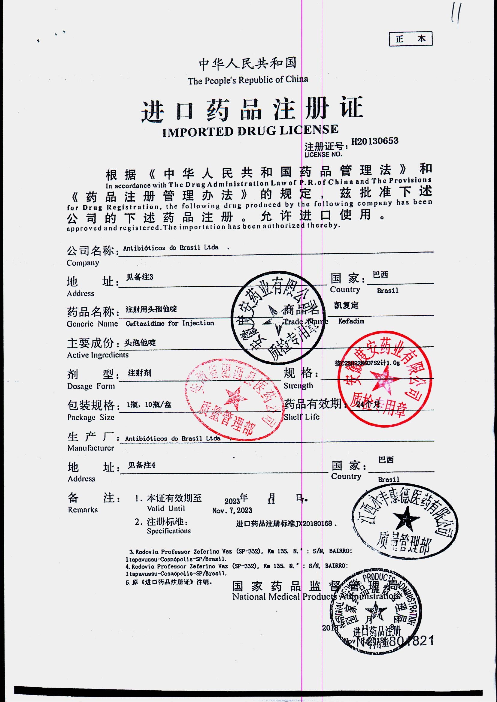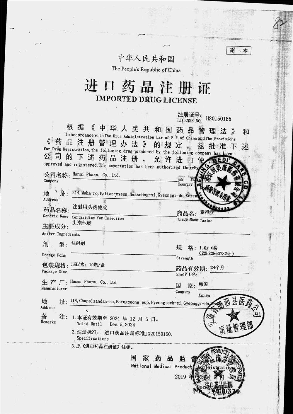 | 注射用头孢他啶 | 1.0g*10瓶 | 011821441(2/5) | 查看详情 |