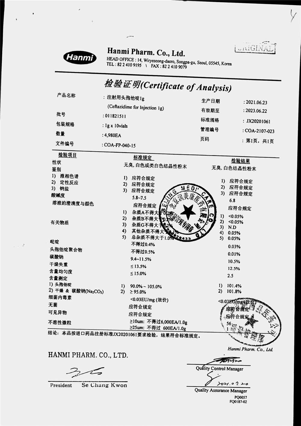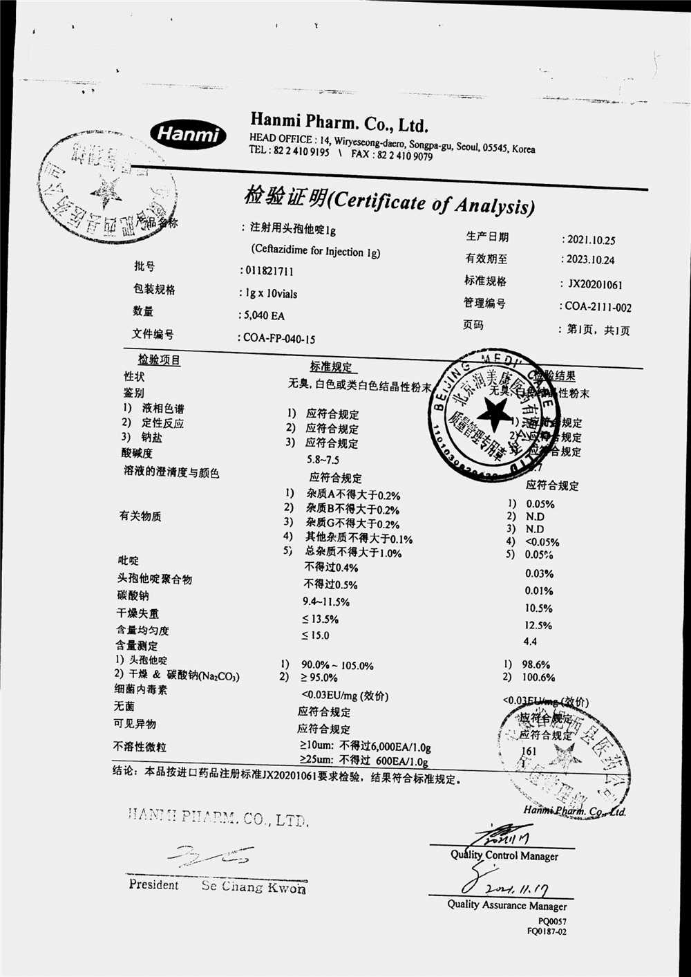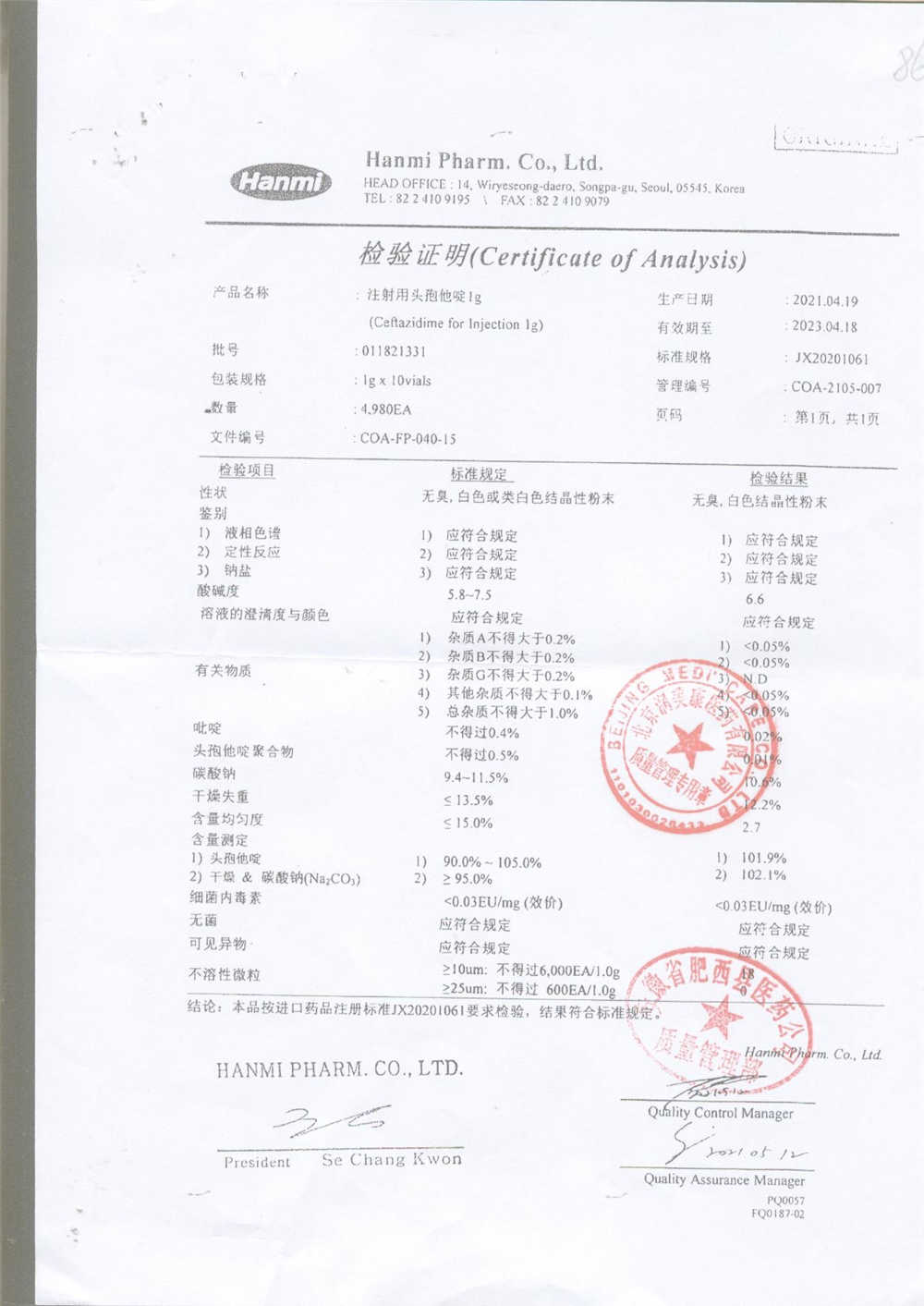 | 注射用头孢他啶 | 1.0g*10瓶 | 011821611(4/5) | 查看详情 |