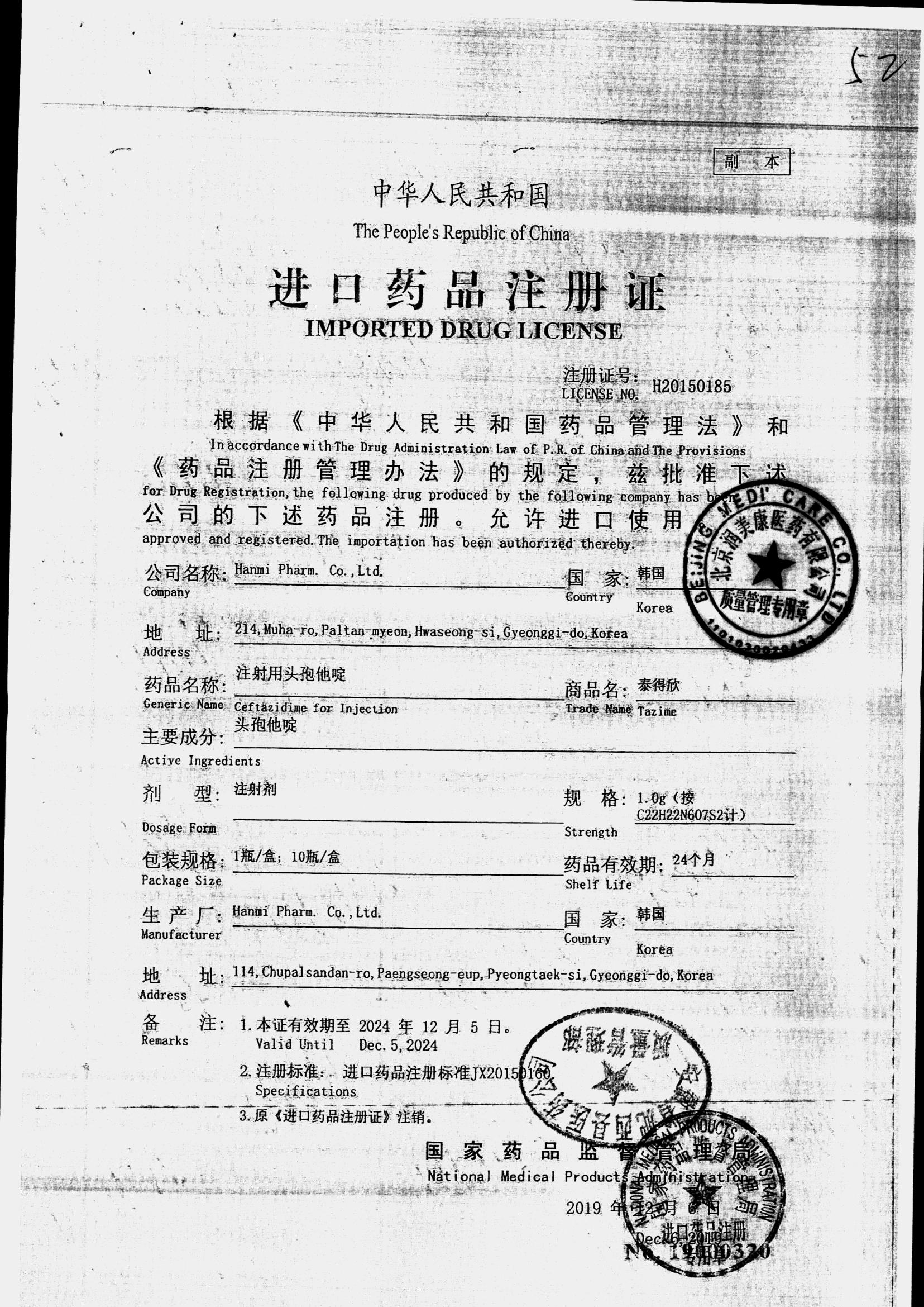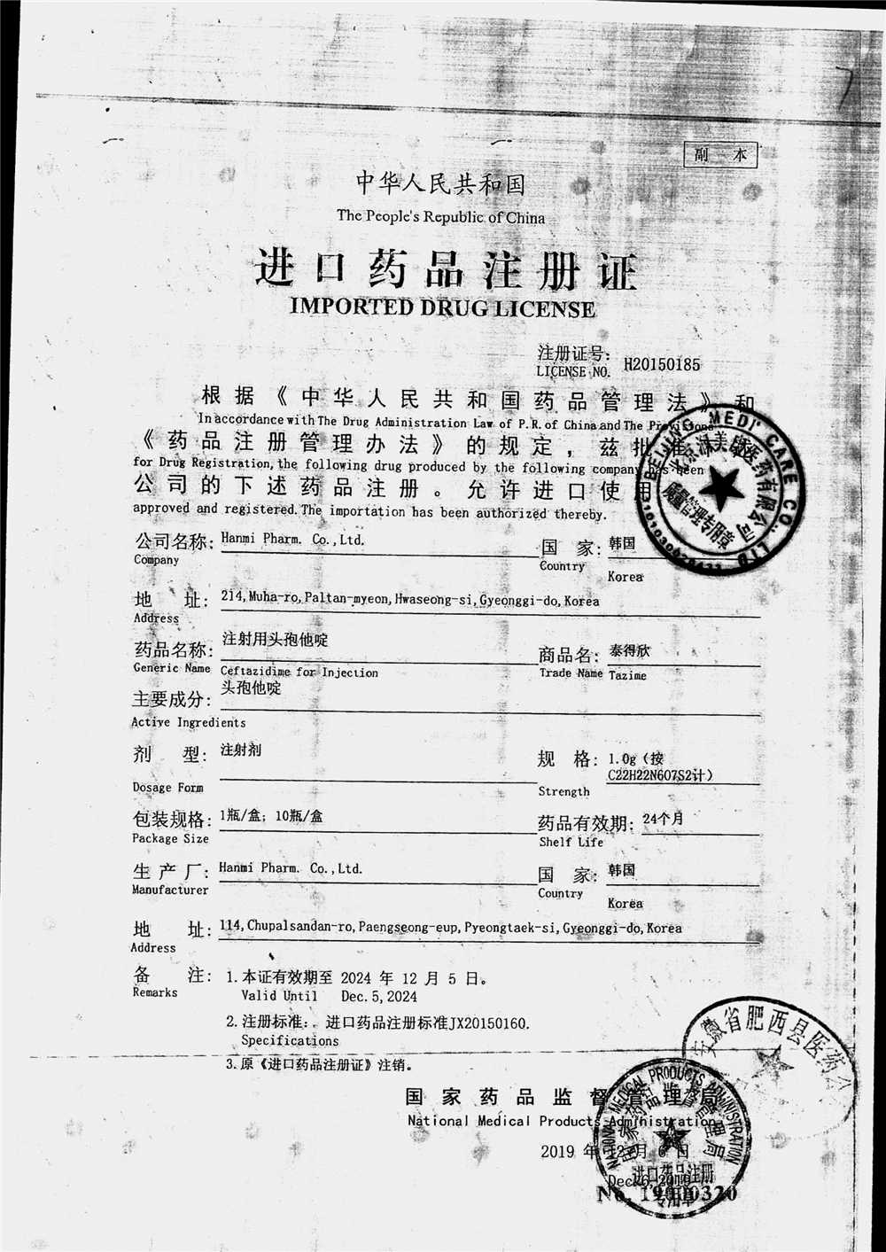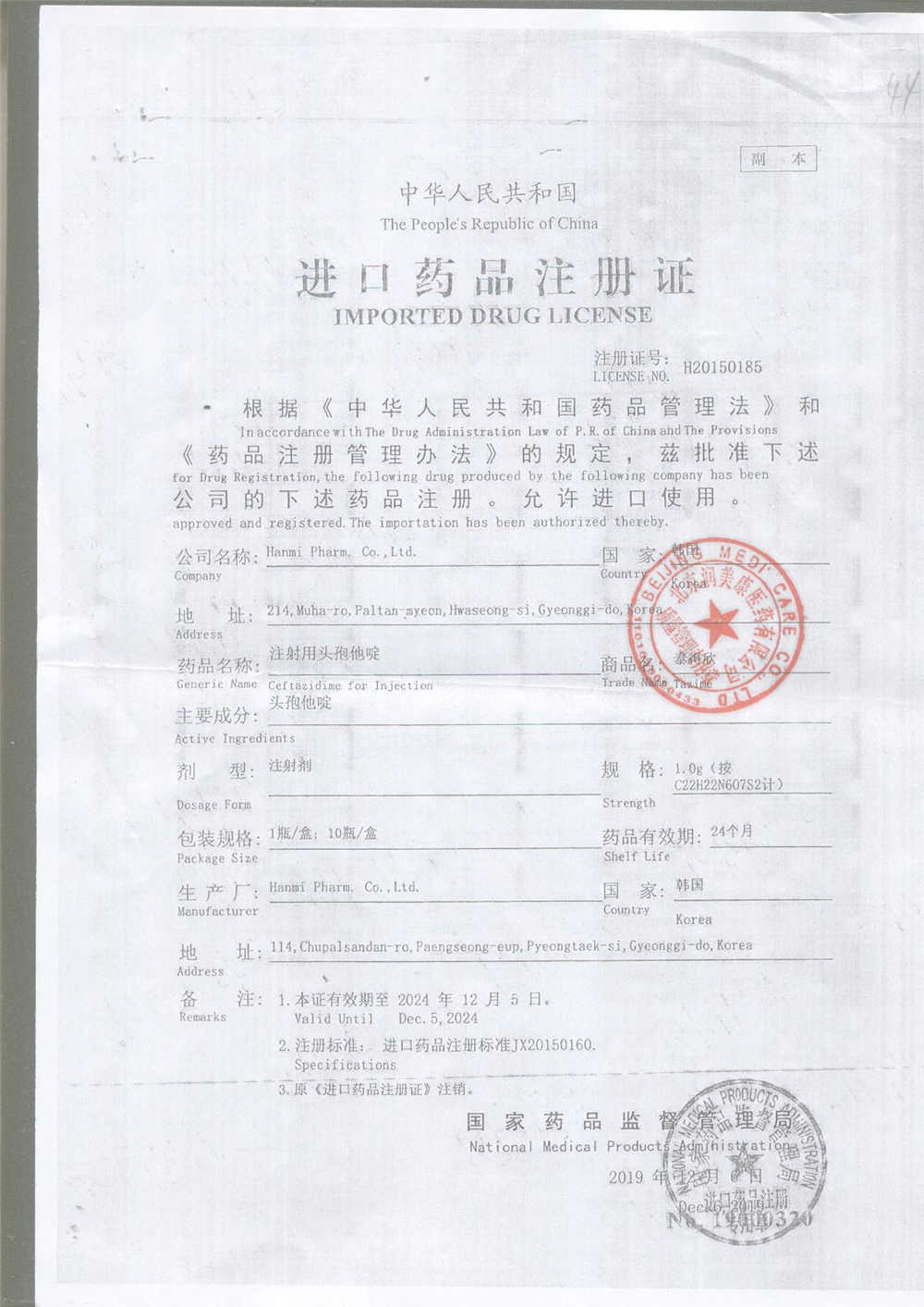 | 注射用头孢他啶 | 1.0g*10瓶 | 011821511(4/5) | 查看详情 |