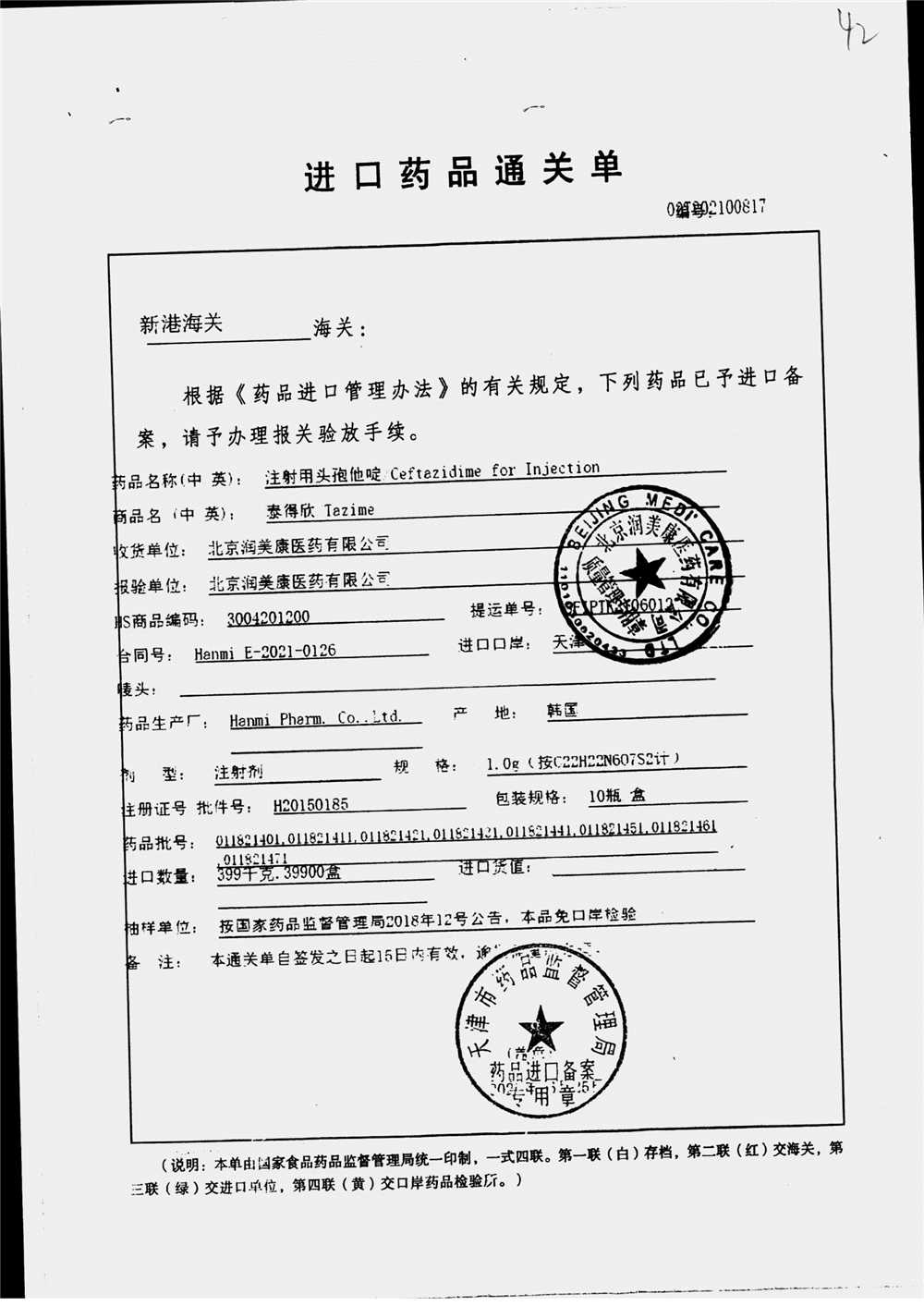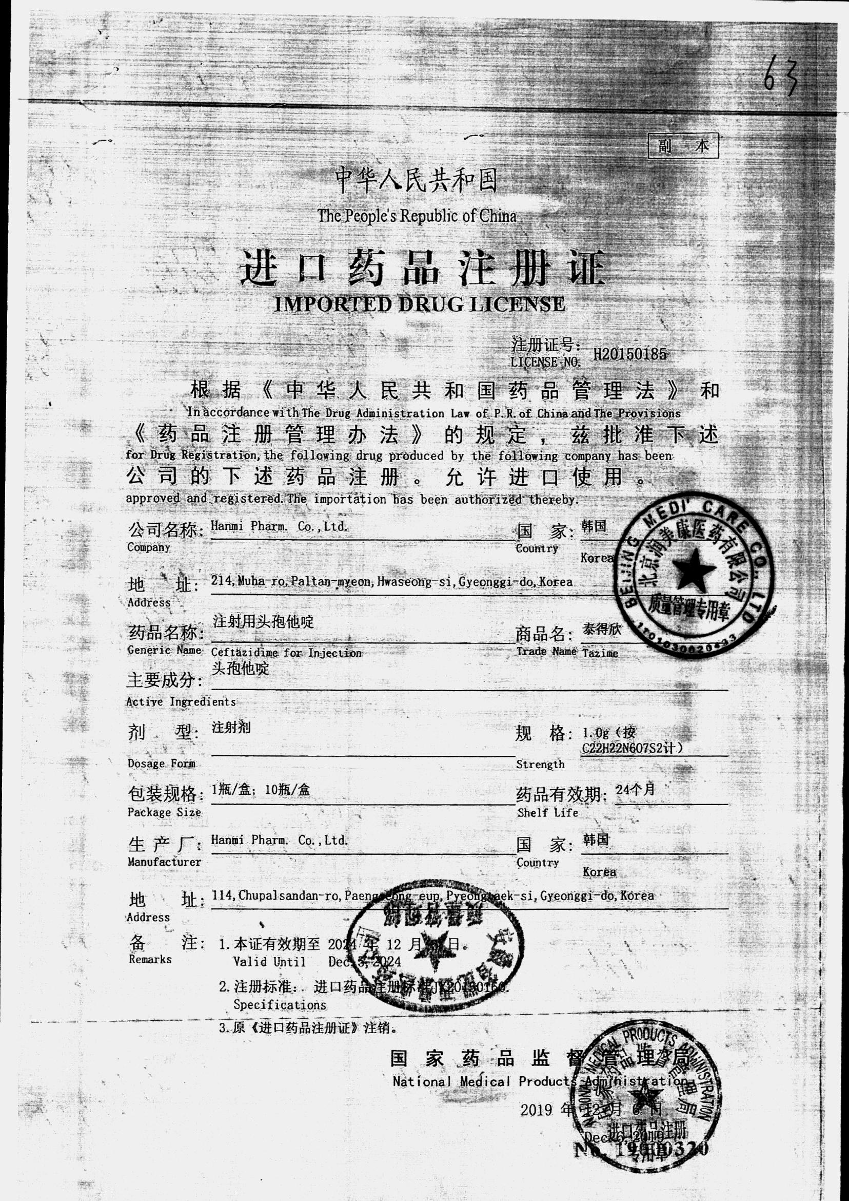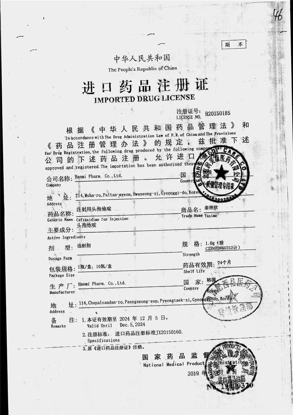 | 注射用头孢他啶 | 1.0g*10瓶 | 011821511(4/5) | 查看详情 |