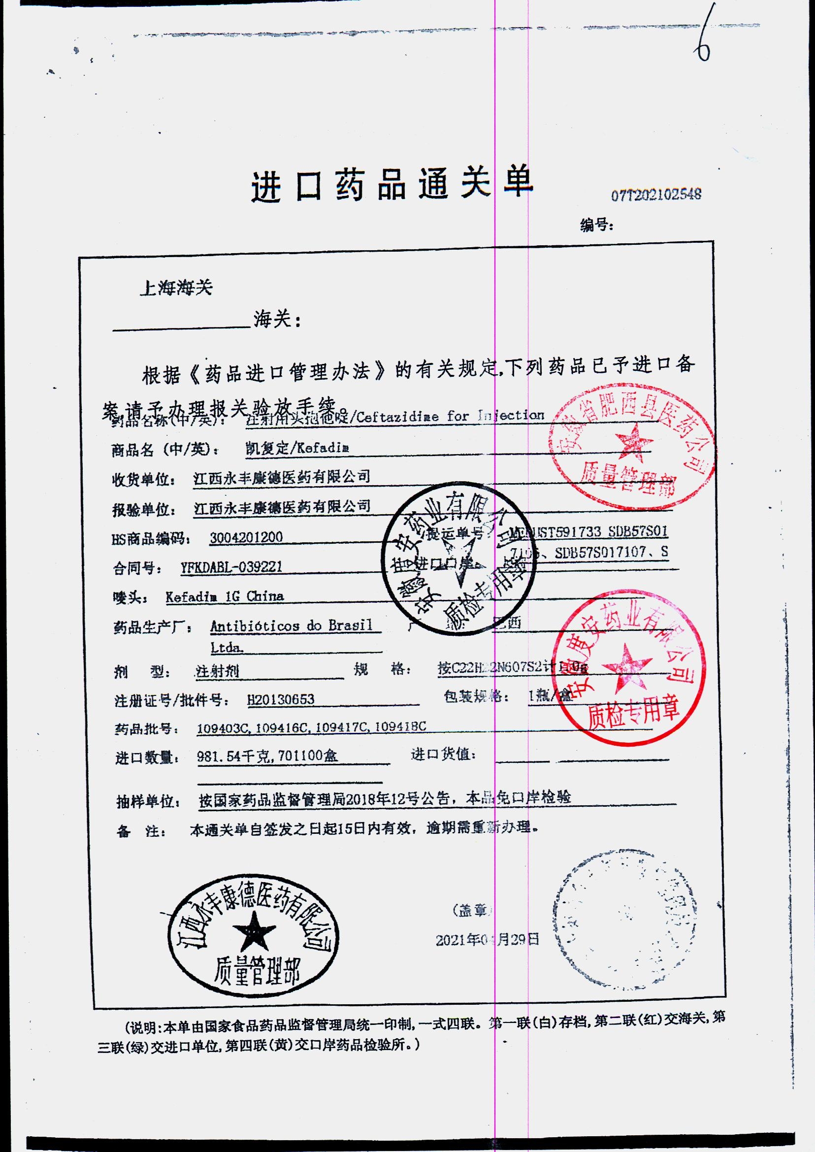| 注射用头孢他啶 | 1.0g*10瓶 | 011821671(4/5) | 查看详情 |