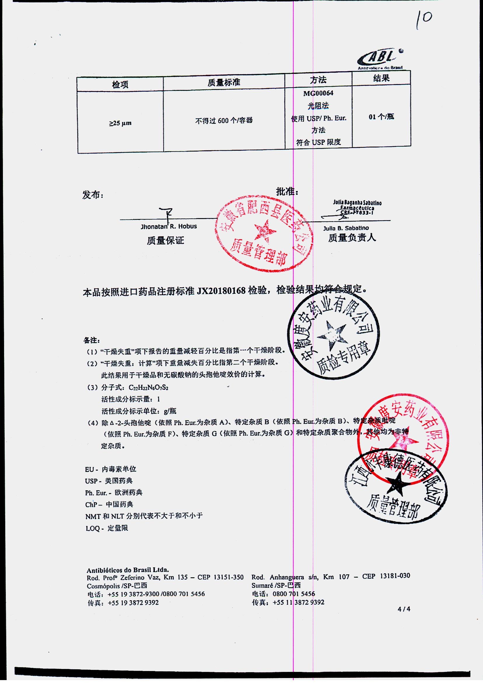 | 注射用头孢他啶 | 1.0g*10瓶 | 109418C/4 | 查看详情 |