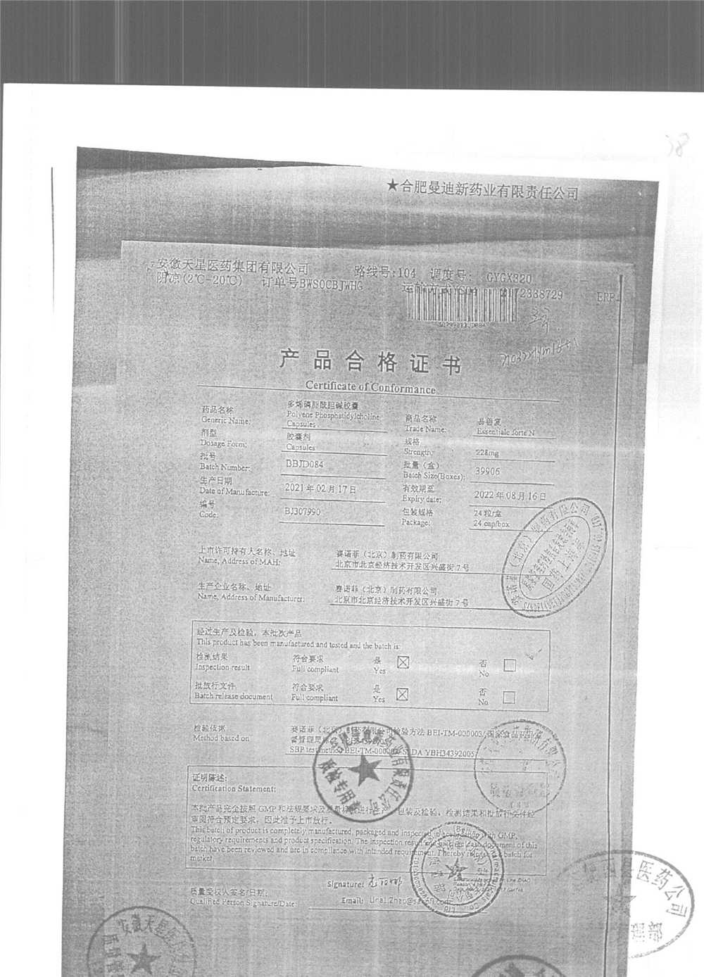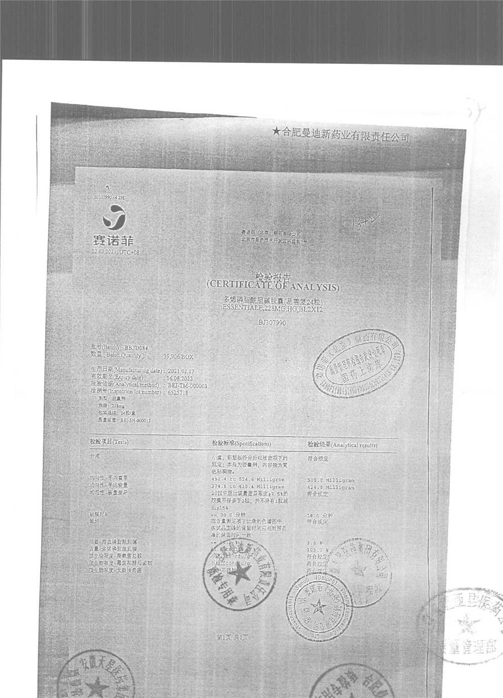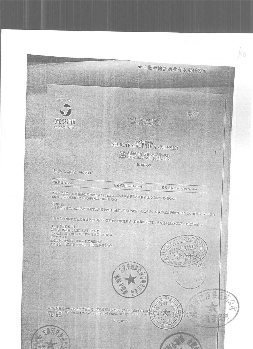 药检报告