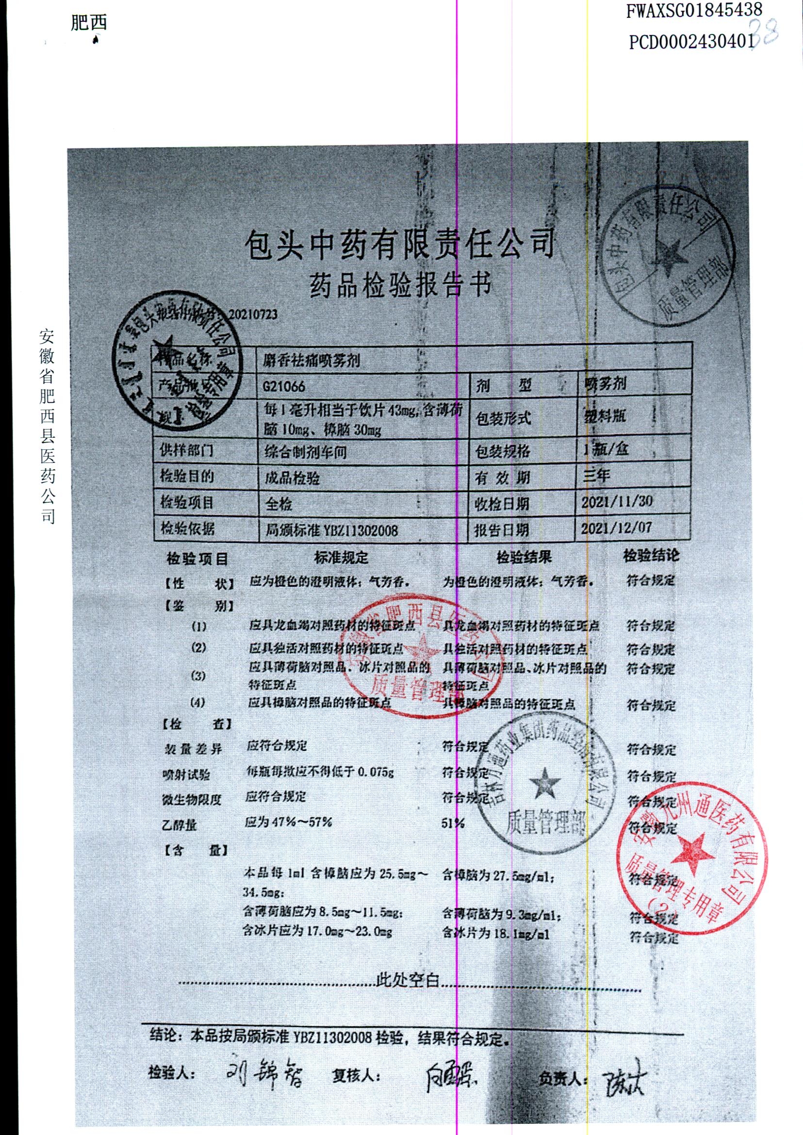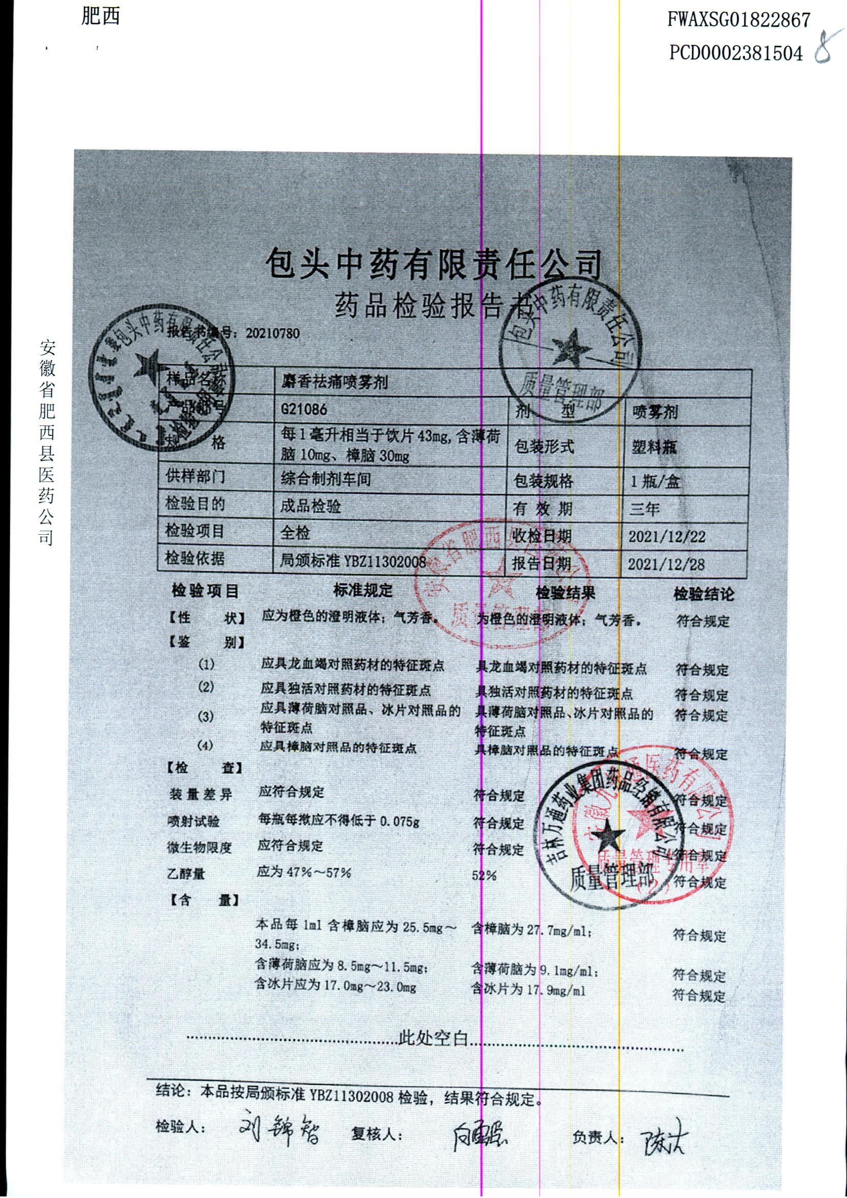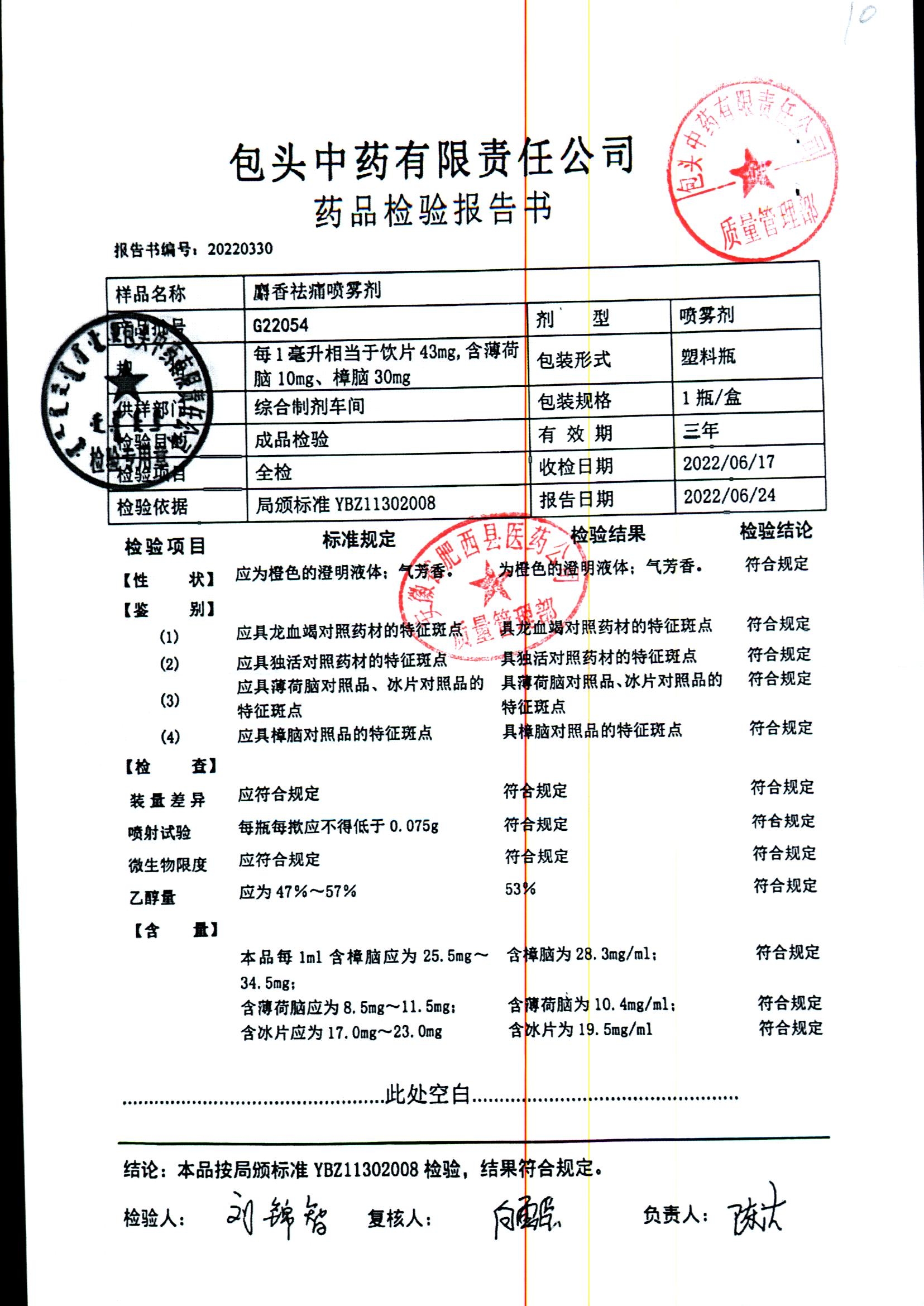 | 名称 | 规格 | 批号 | 药检报告 |
