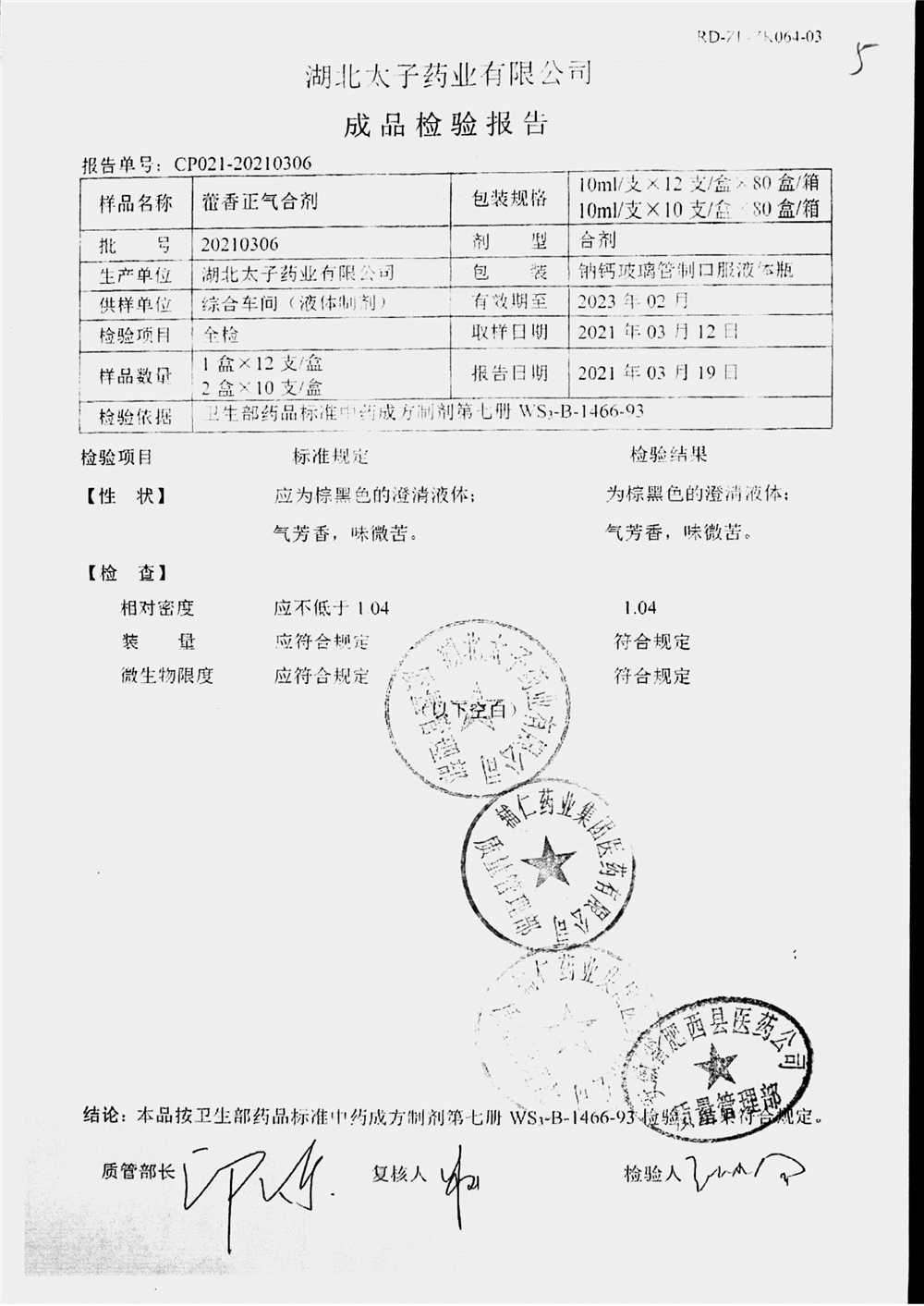 药检报告
