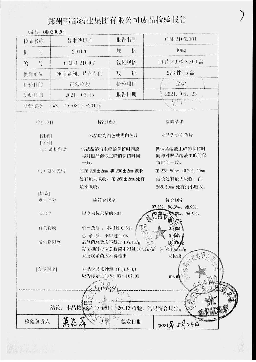 药检报告